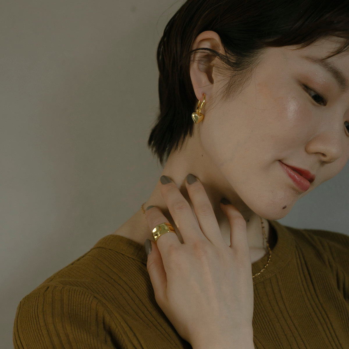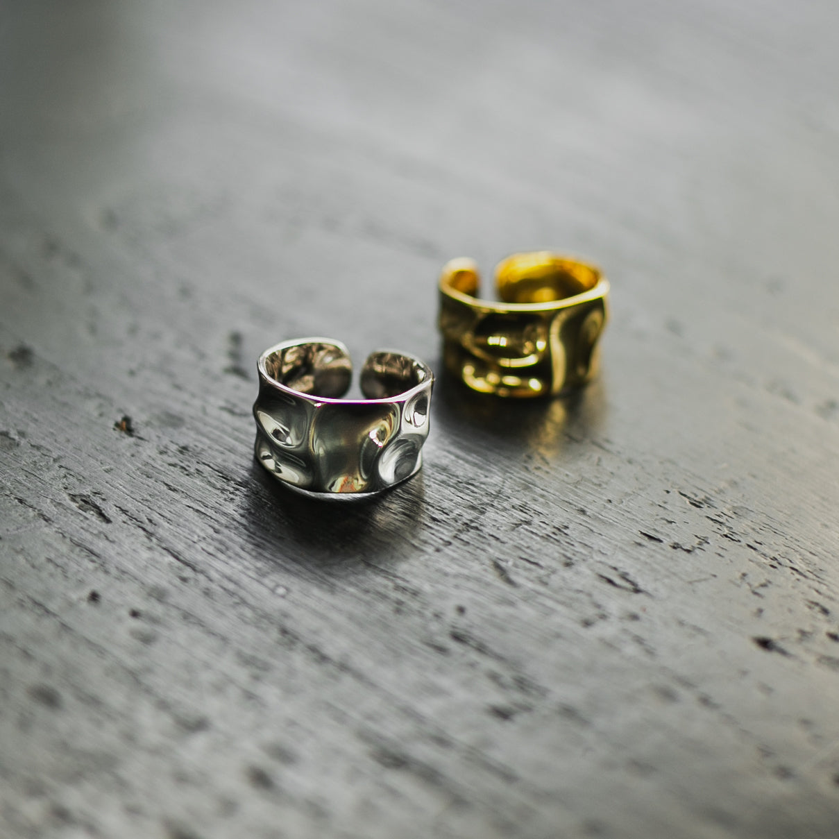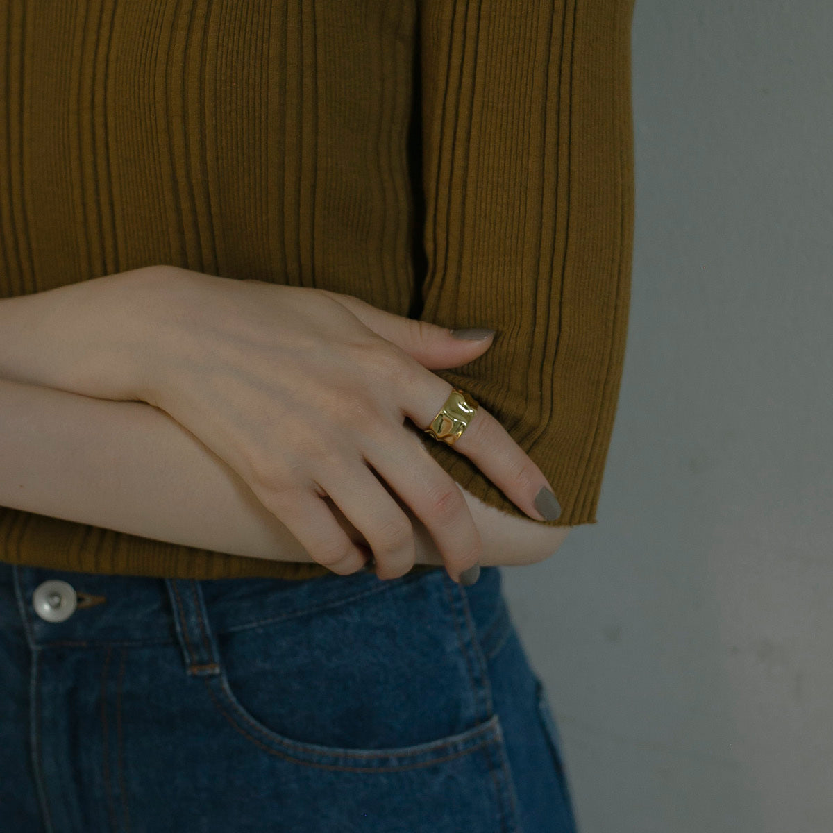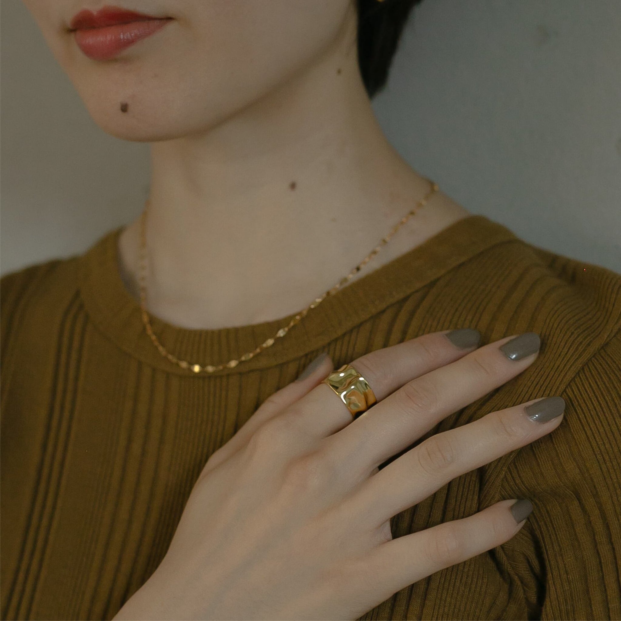 指に馴染むなめらかな凸凹がとても可愛く、広めのリング幅が指をほっそり見せてくれます!