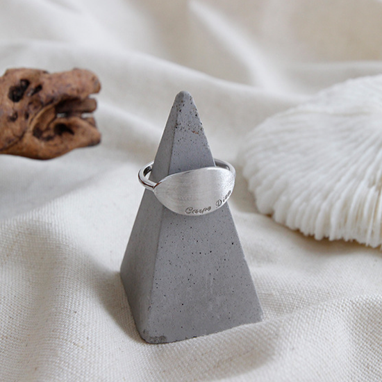 ザラついた質感のオーバル型のプレートが手元のアクセントにぴったりのリングです!