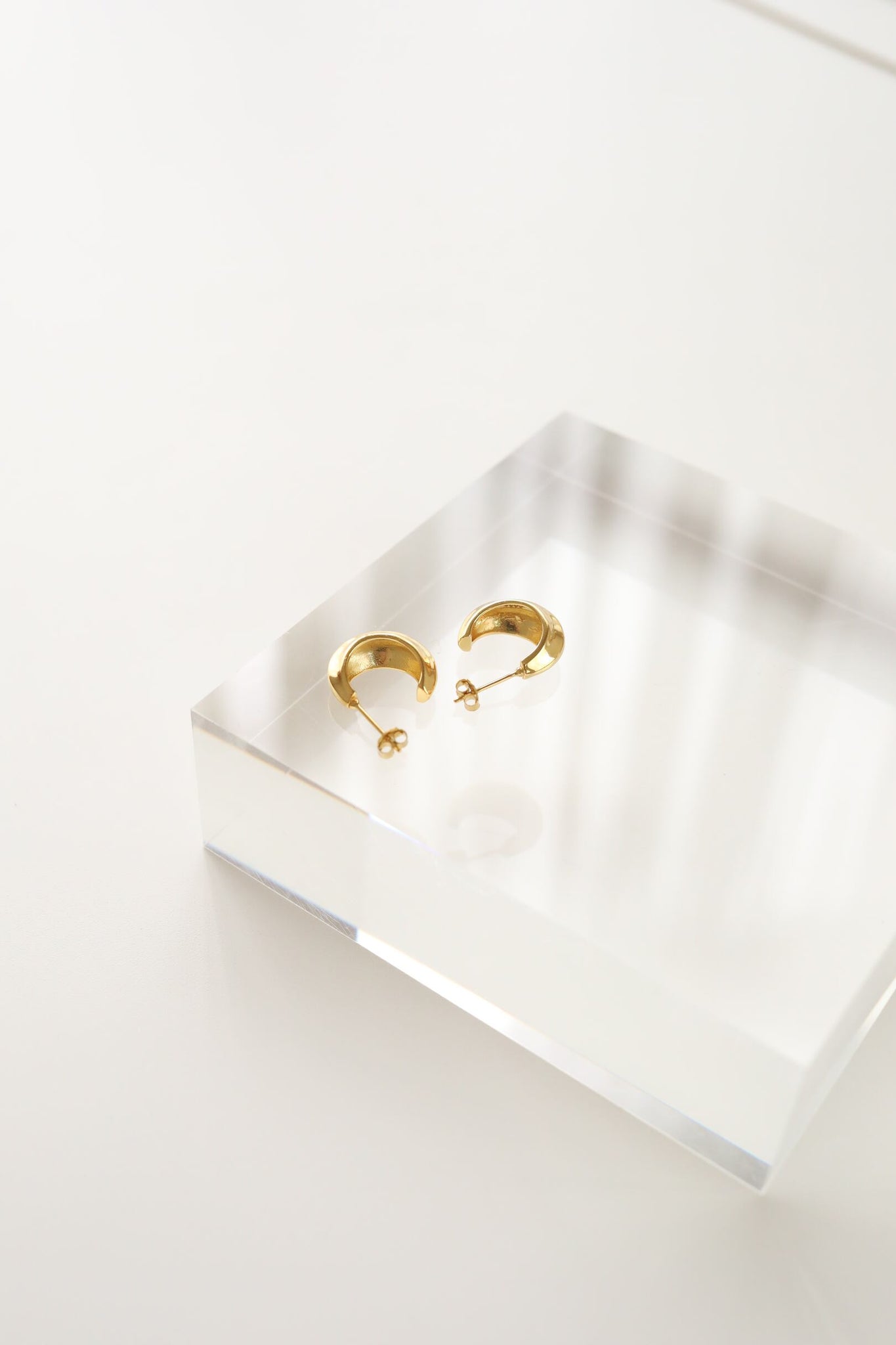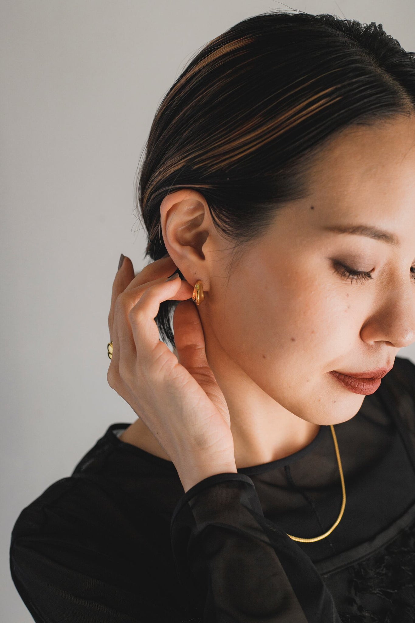 立体的で丸みのあるデザインが目を惹き、顔周りを明るく見せてくれるピアスです!!