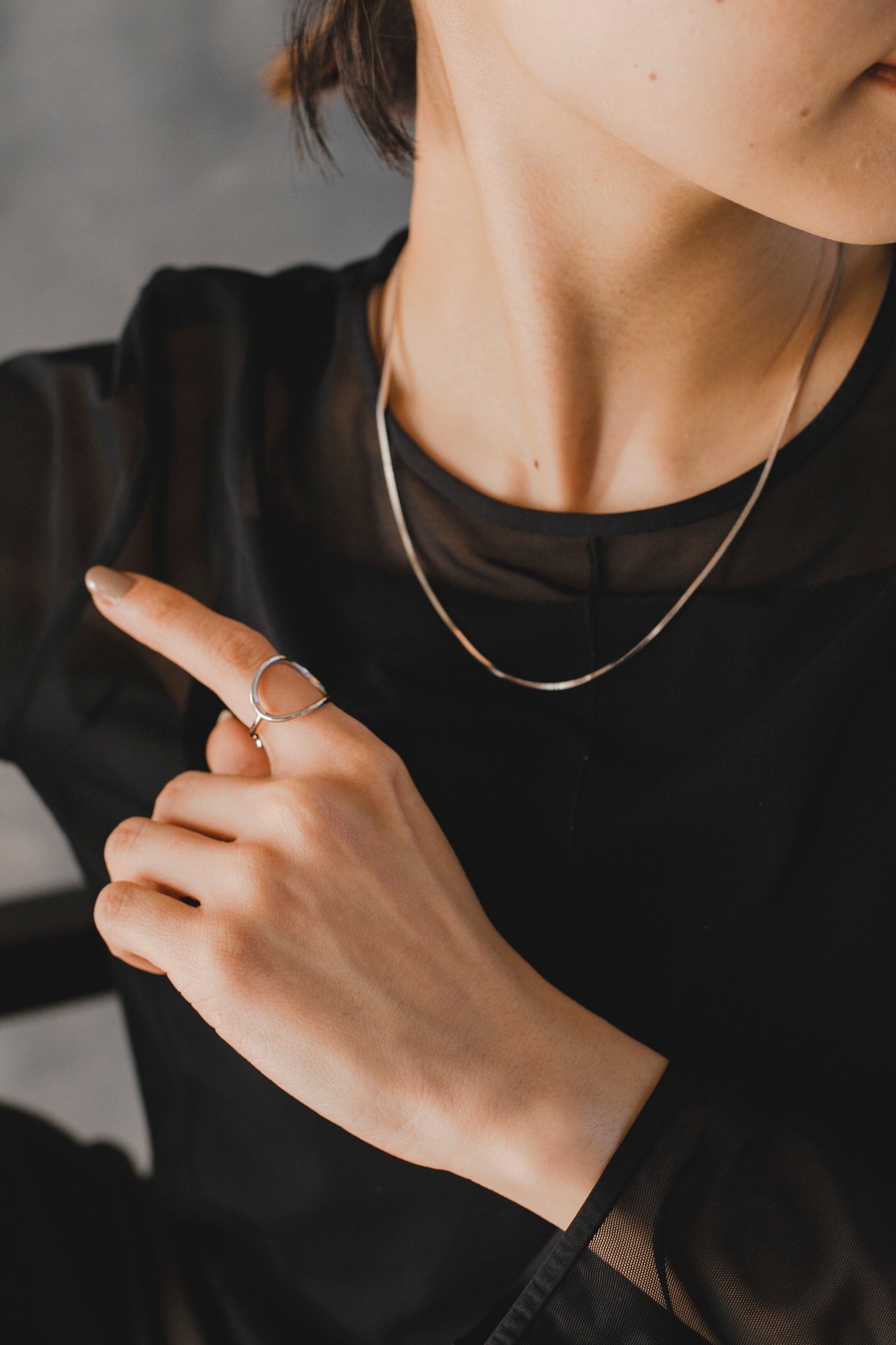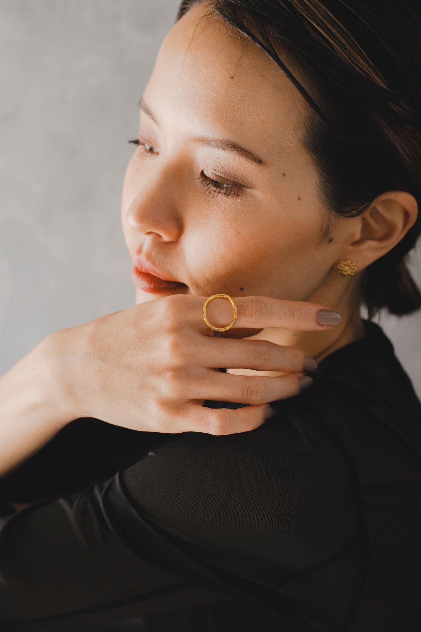 指になじむ横長のフォルムが可愛く、細めのリング幅と抜け感が手元をすっきりキレイに見せてくれます!