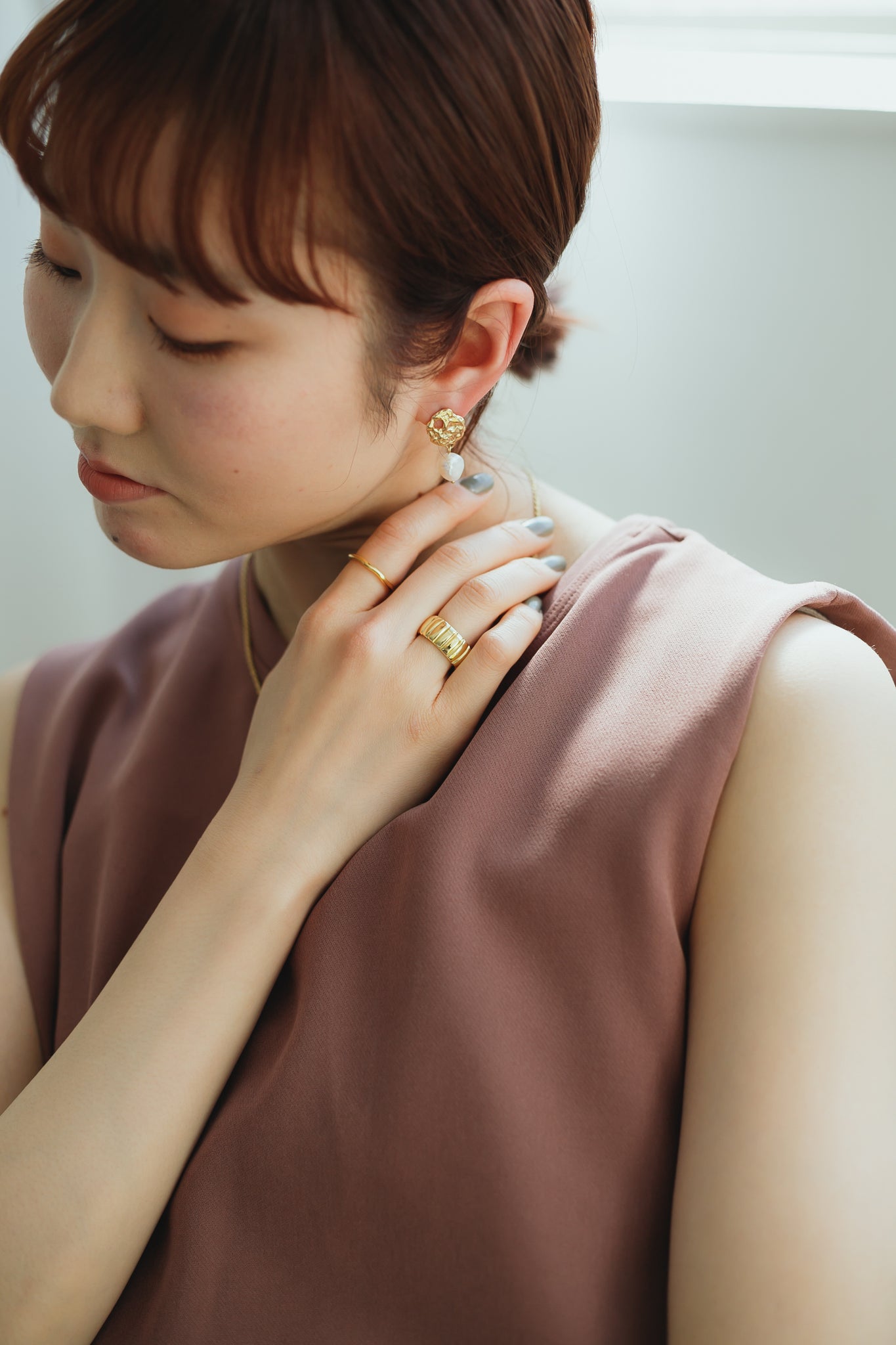 ワイヤーエッジリングなどより少しボリュームがあり、一つあると手元のコーディネートに活躍してくれます◎