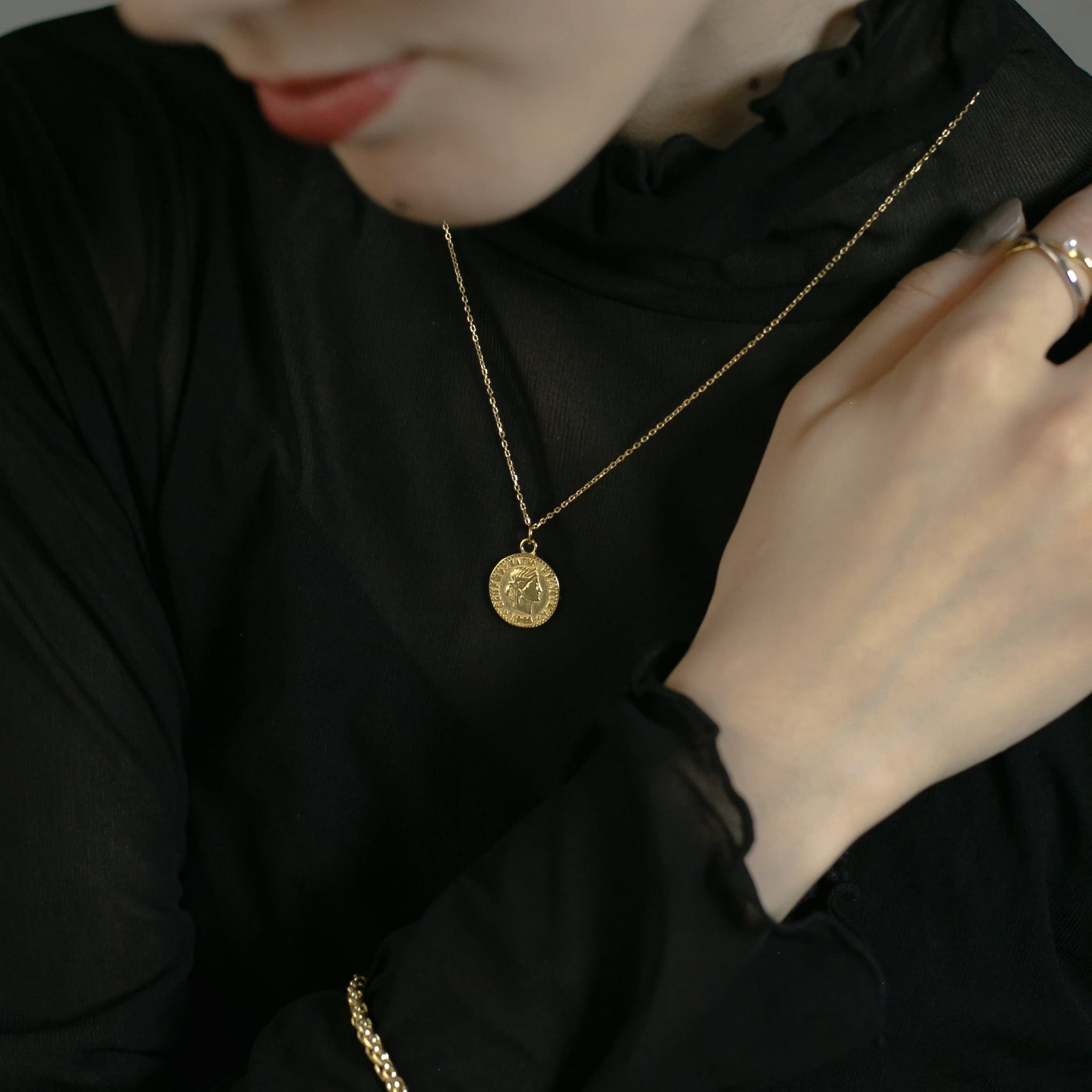 裏表のデザインが異なる実物に似せたコインモチーフがとても可愛く、使いやすいサイズ感のネックレスです!