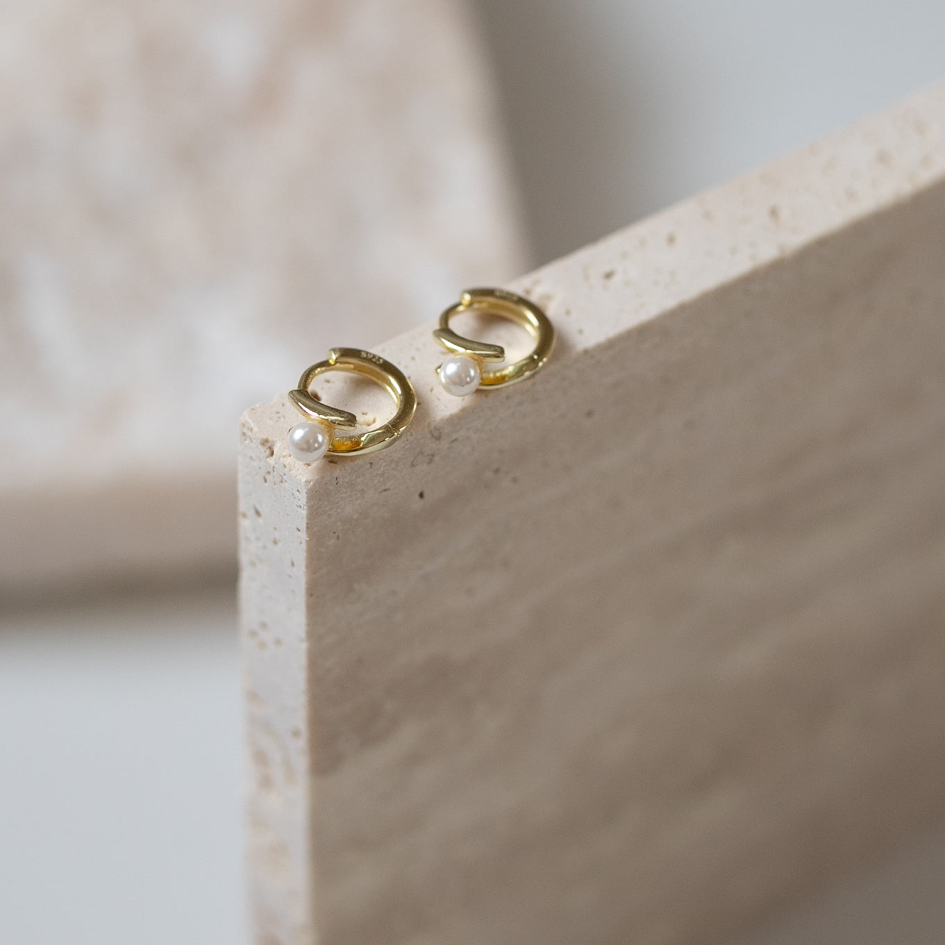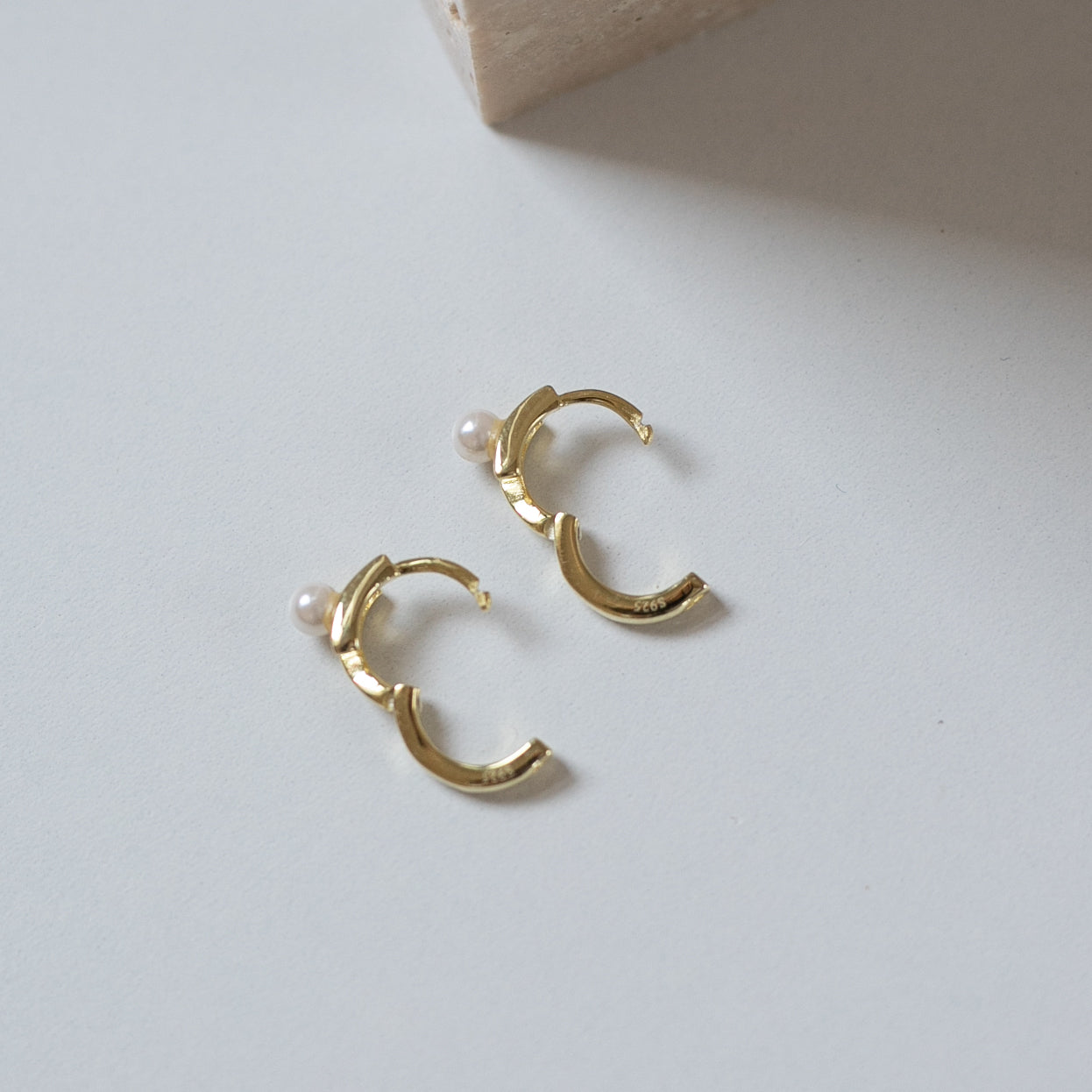 小さめのダブルフープにさり気なくパールをあしらったデザインがとても可愛いピアスです!