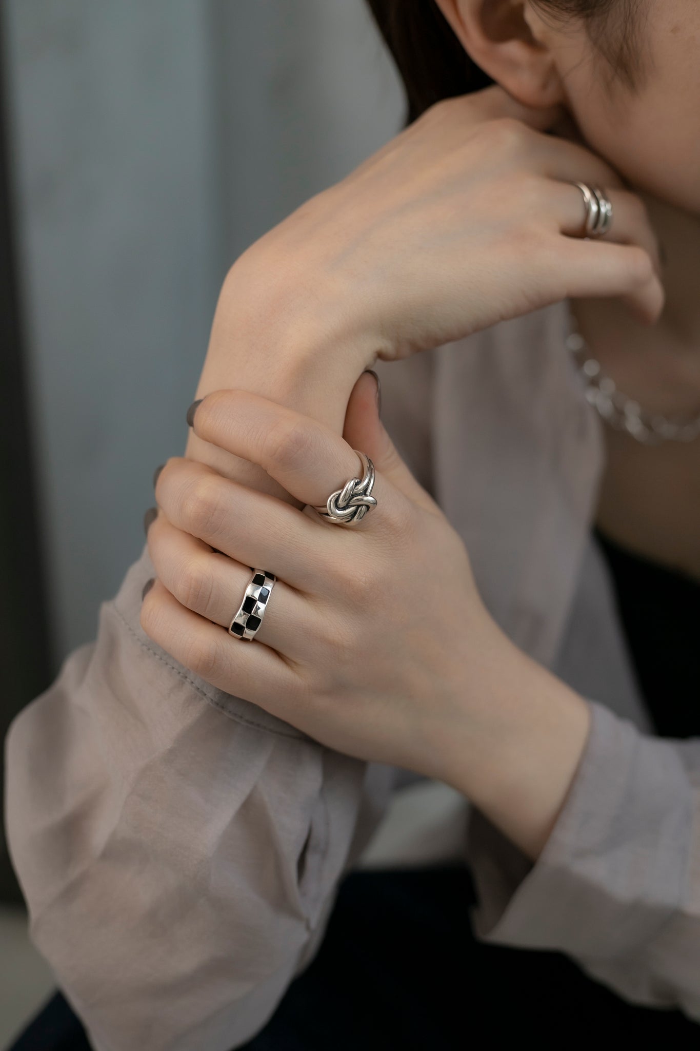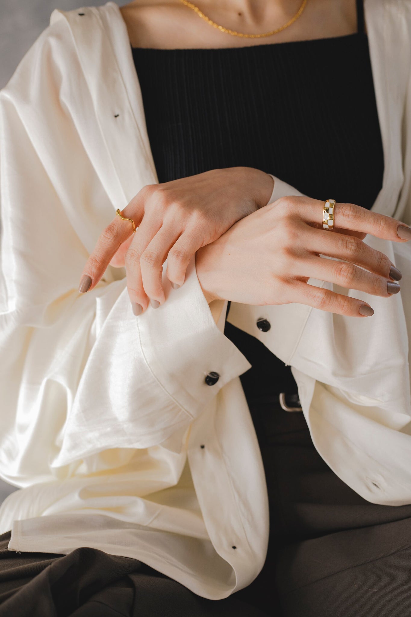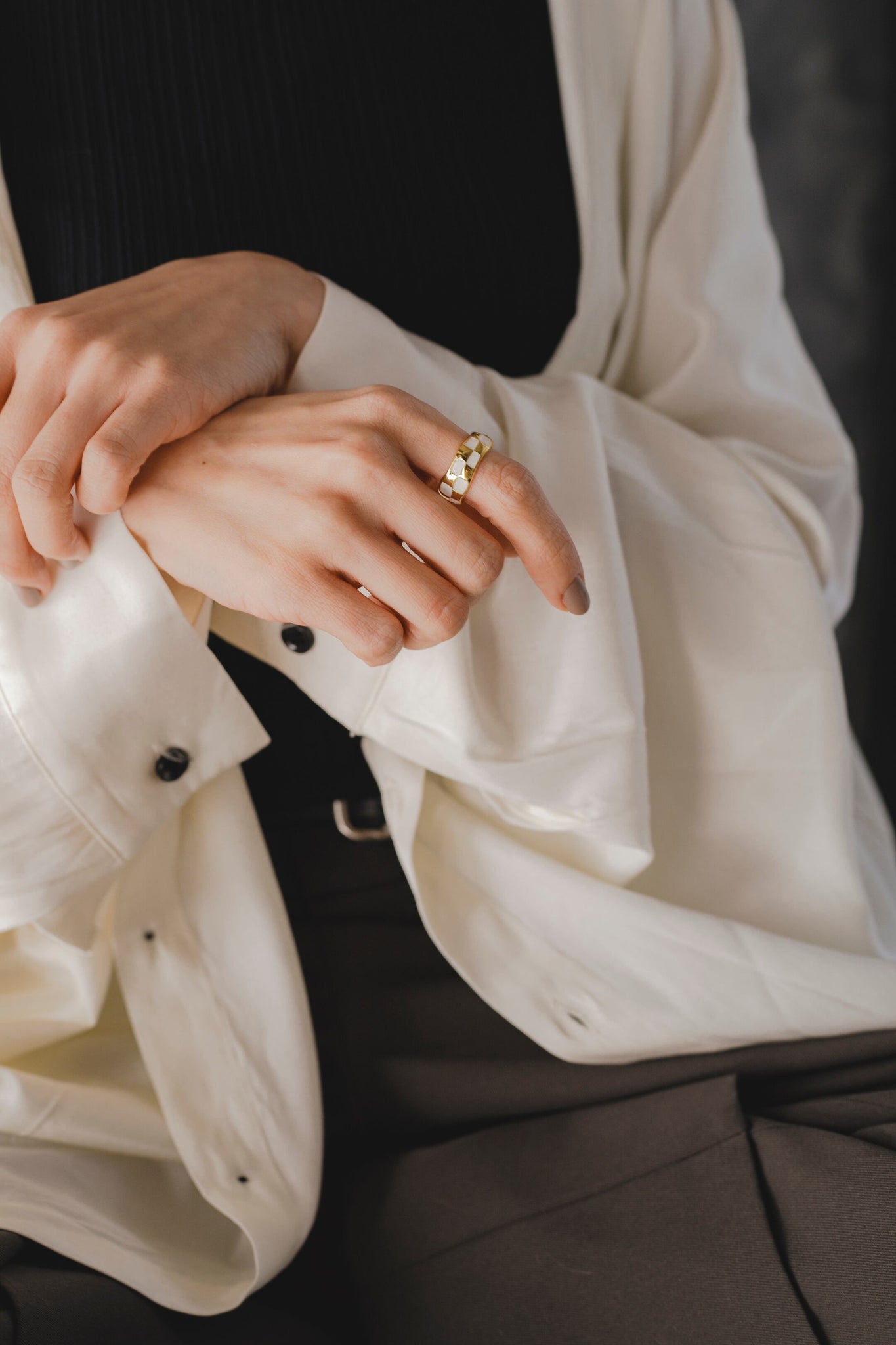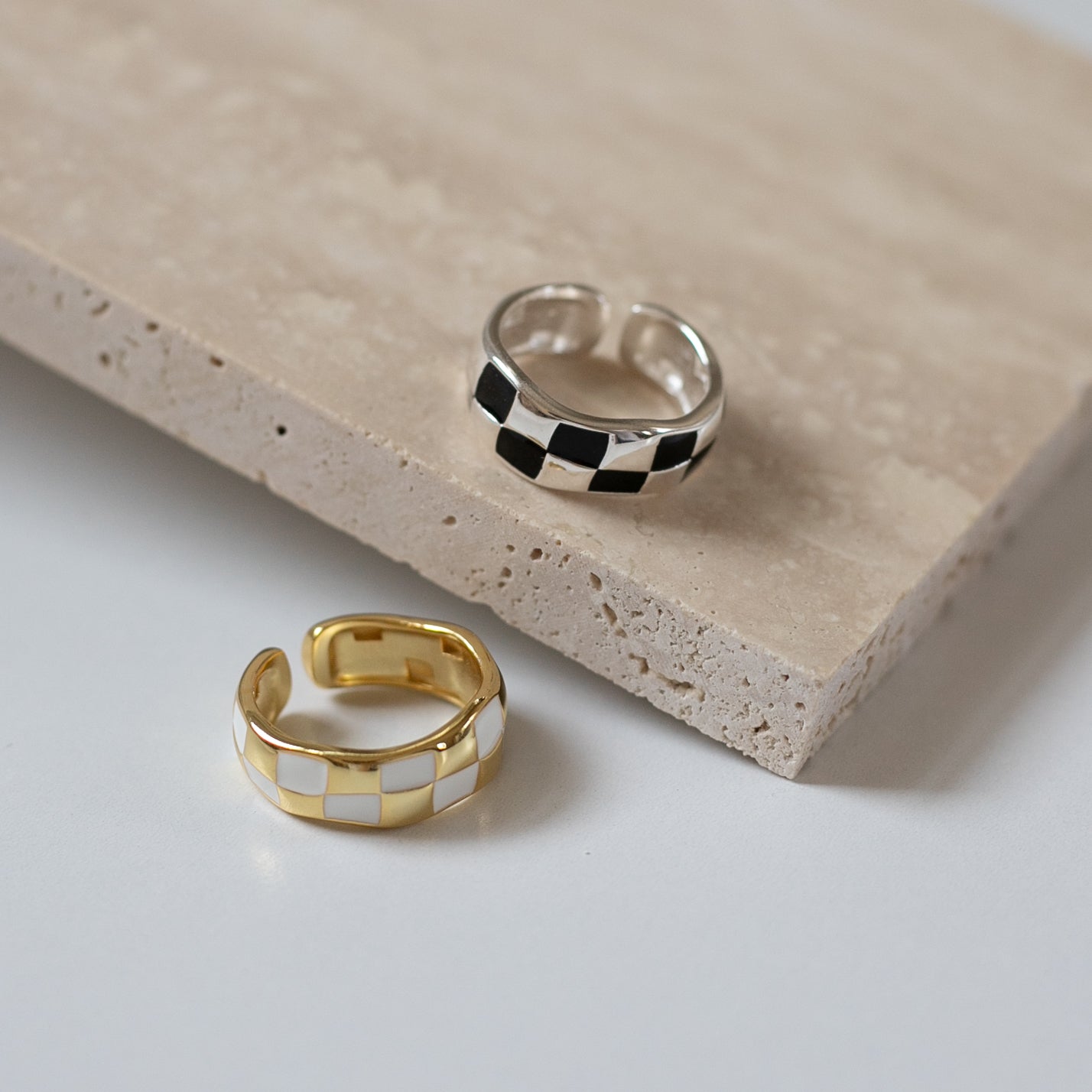 トレンドのチェッカー柄で、指に馴染む緩やかな曲線のフォルムとカラーリングがとても可愛いリングになります!