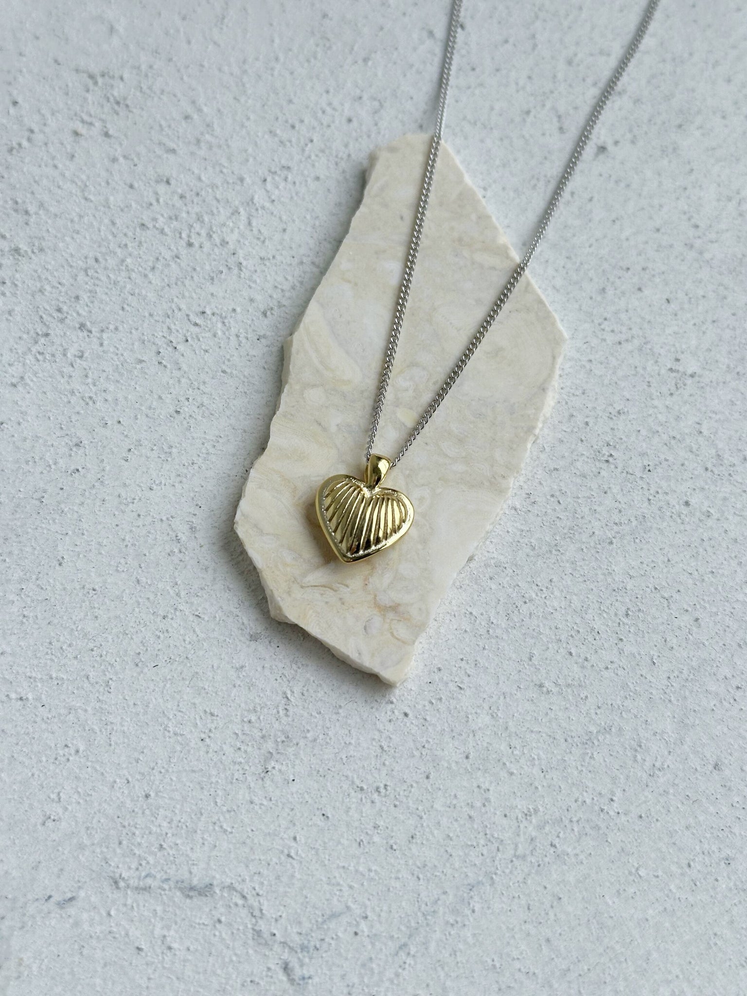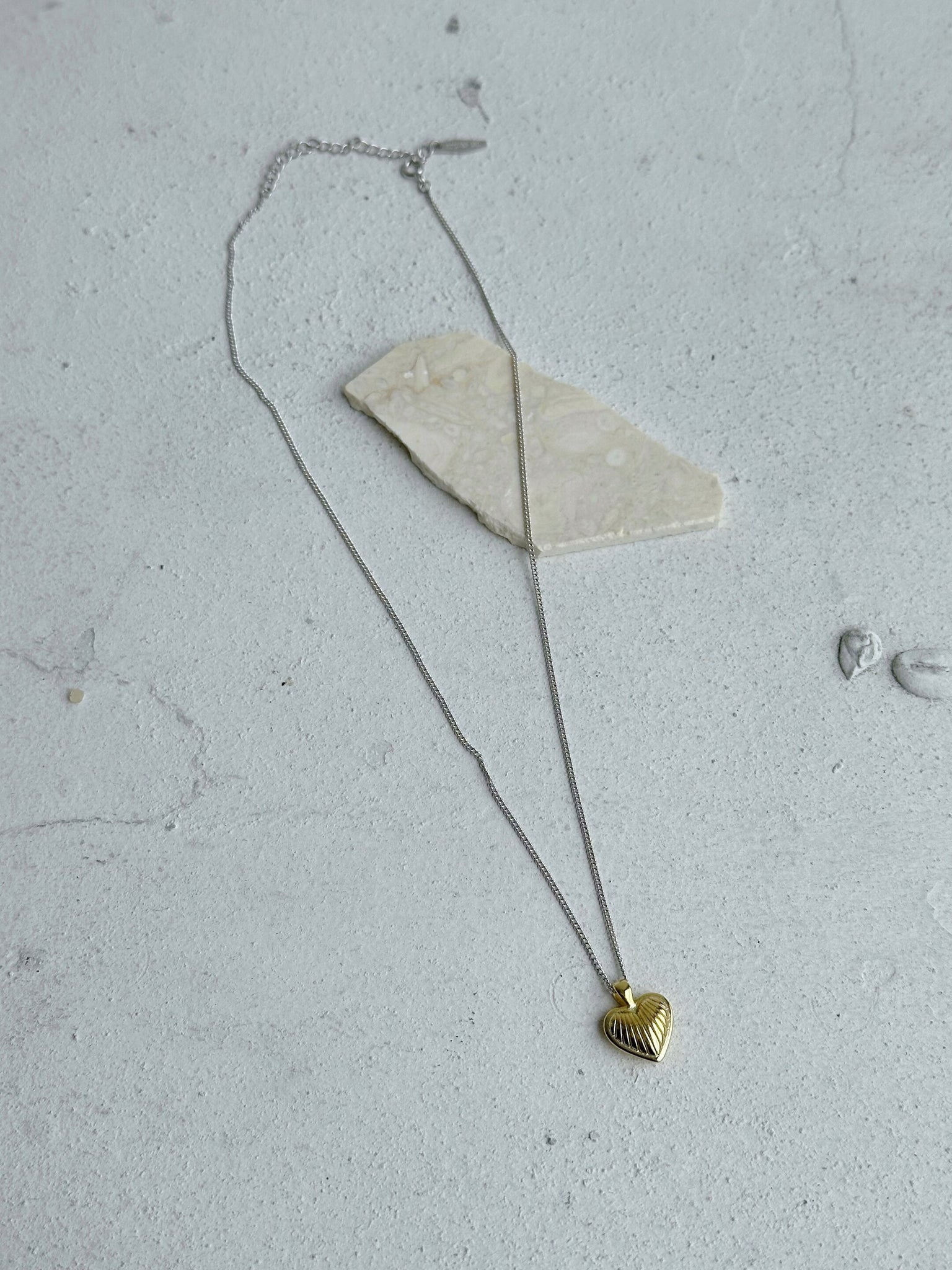 ハートモチーフがゴールド、チェーンがシルバーのカラーリングがとても可愛いネックレスです!