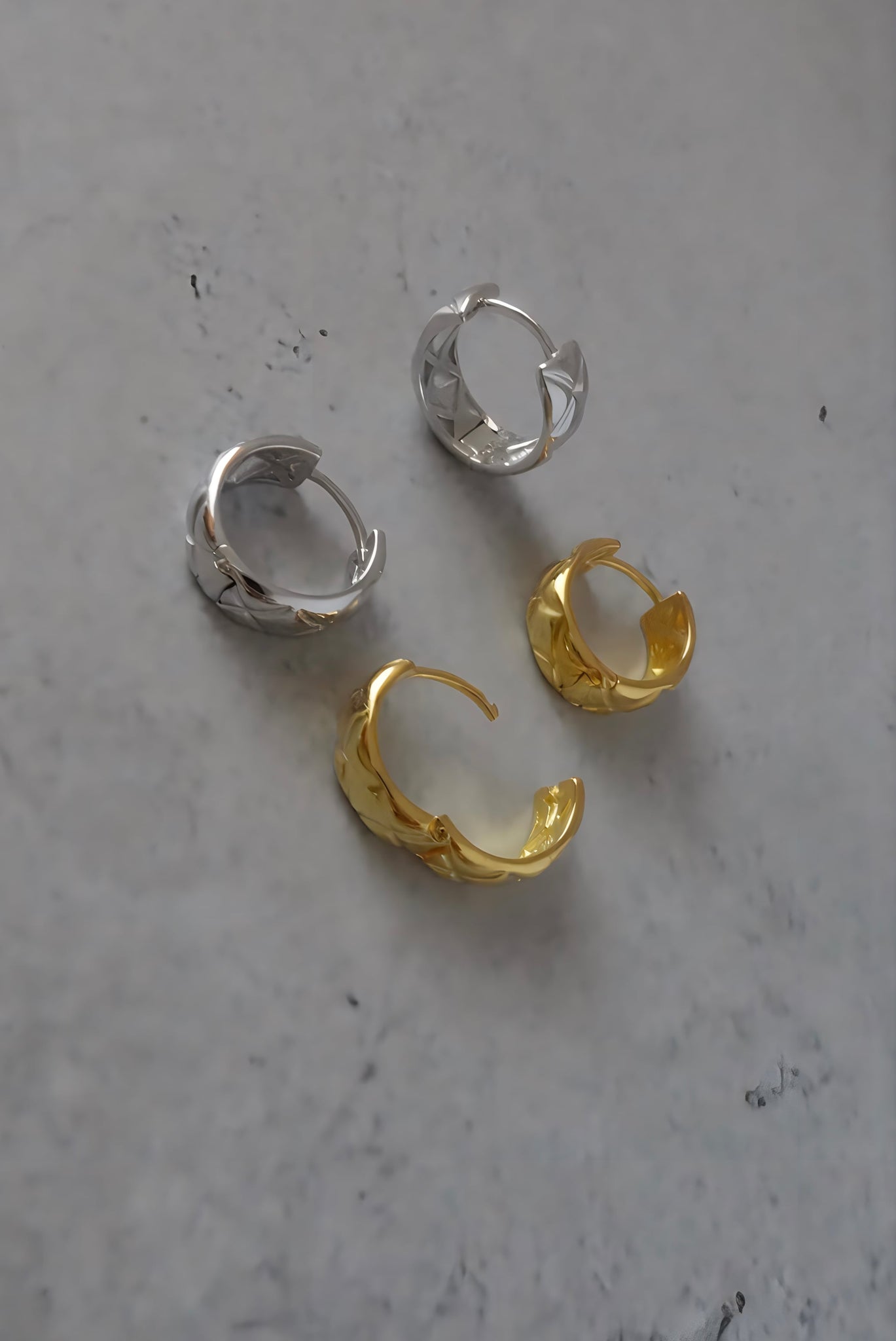 キルティング生地のような模様と艶やかなシルバーの掛け合わせがとても可愛いフープピアスです!