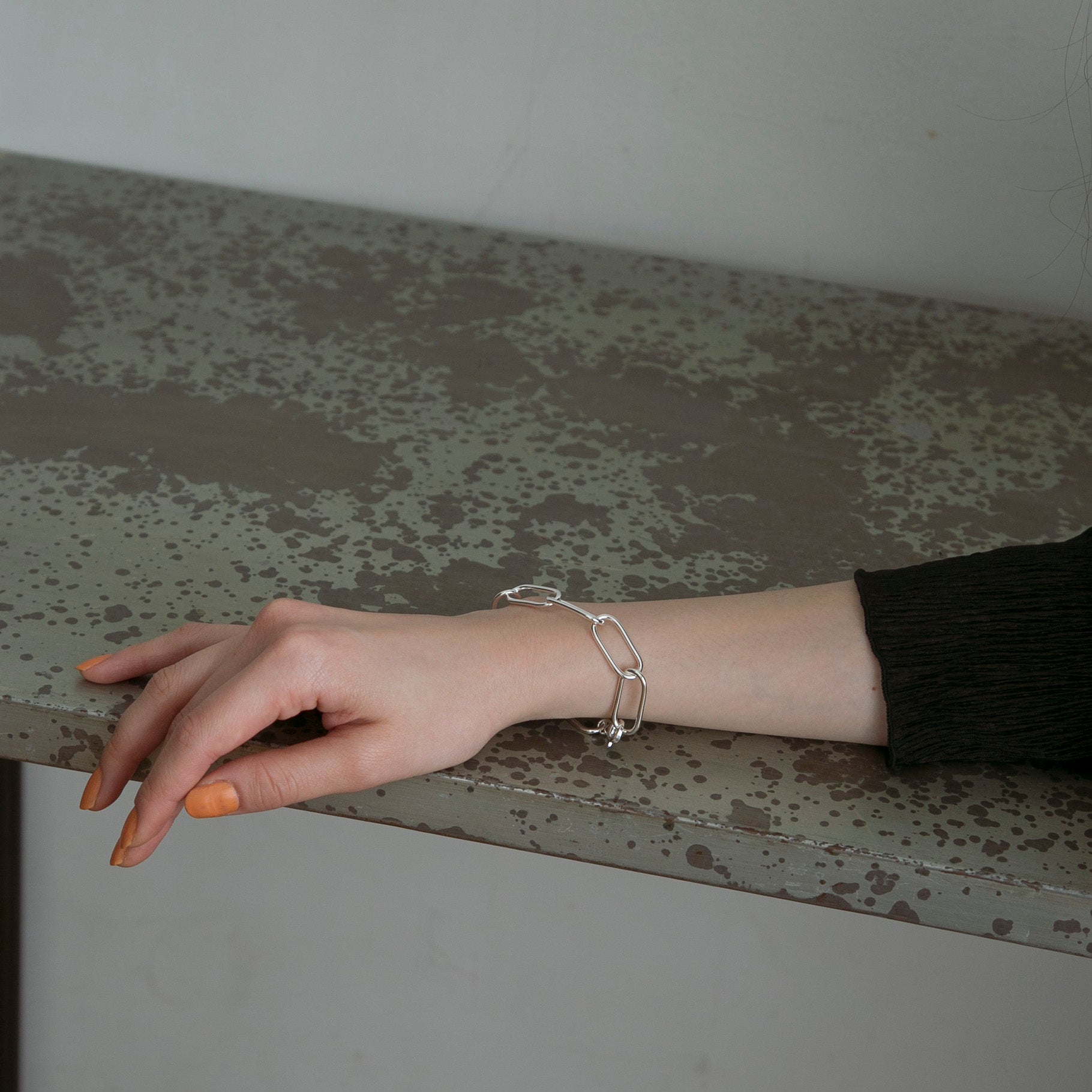抜け感たっぷりで明る目のお色味が手元をすっきり綺麗に見せてくれ、シンプルなコーディネートのアクセントにとてもおすすめのブレスレットです!