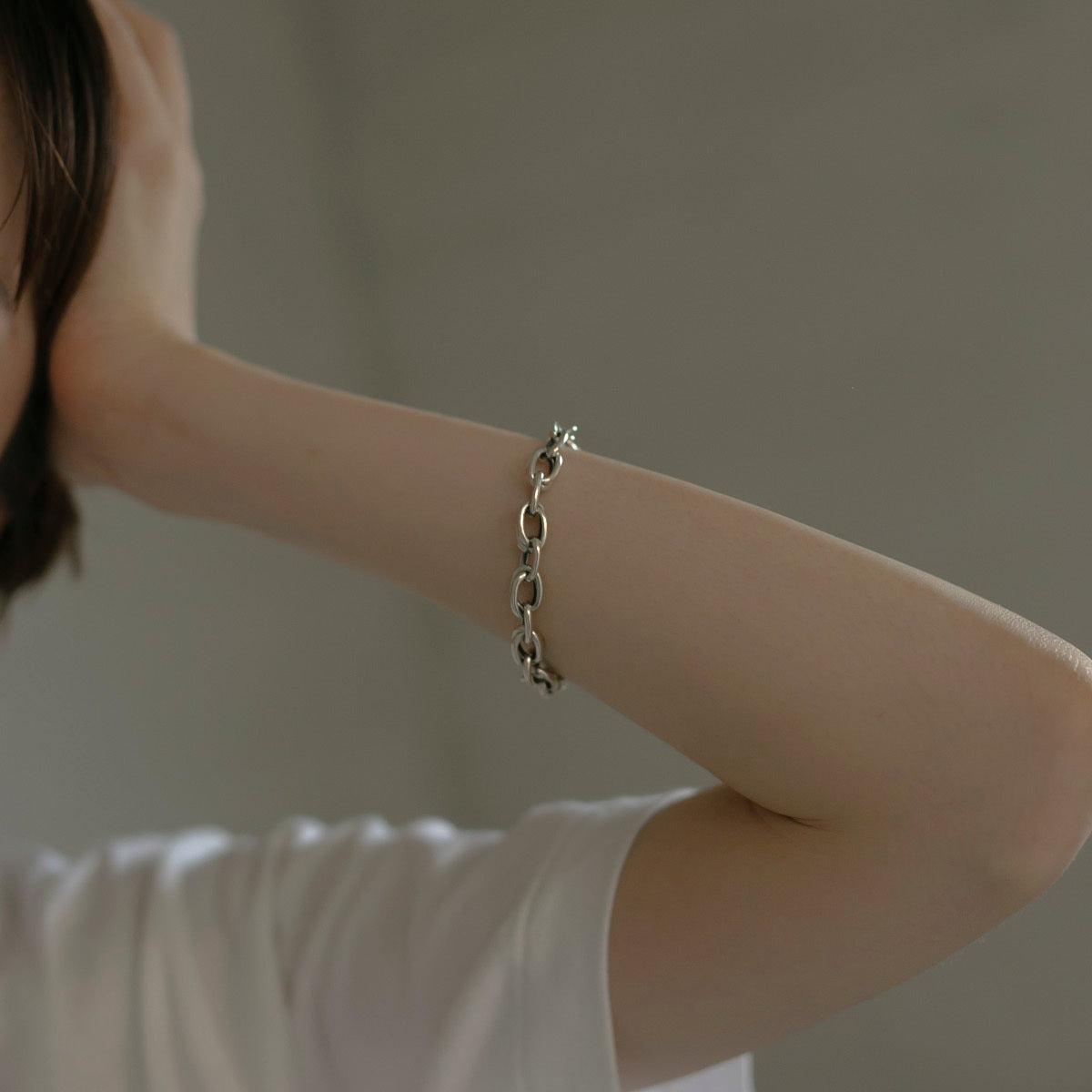 絶妙なボリュームでいかつくなり過ぎず、手首に存在感を与えてくれるブレスレットになります!