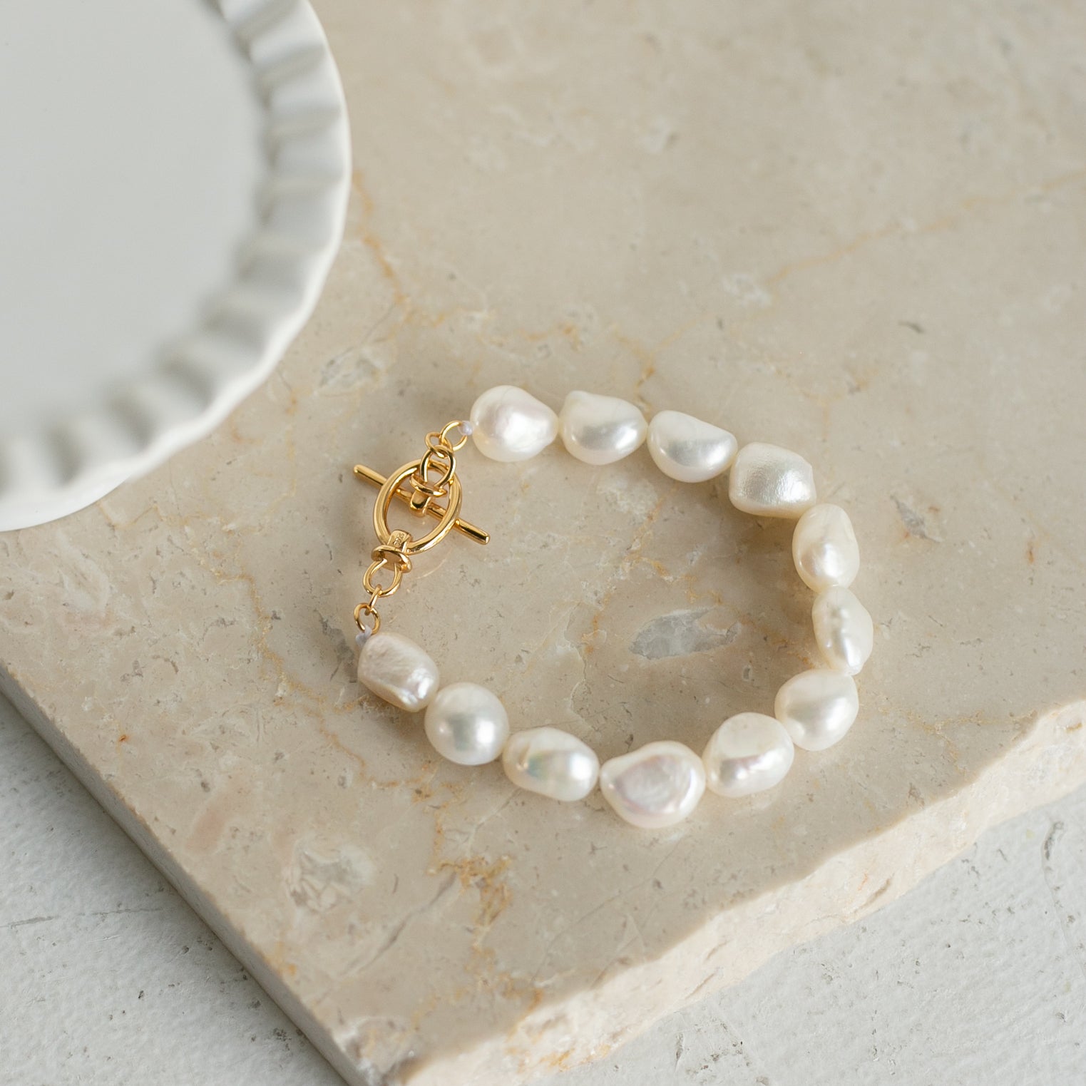 大きめで不揃いのパールが目を惹き、タイトめのサイズ感がとても可愛いブレスレットです!