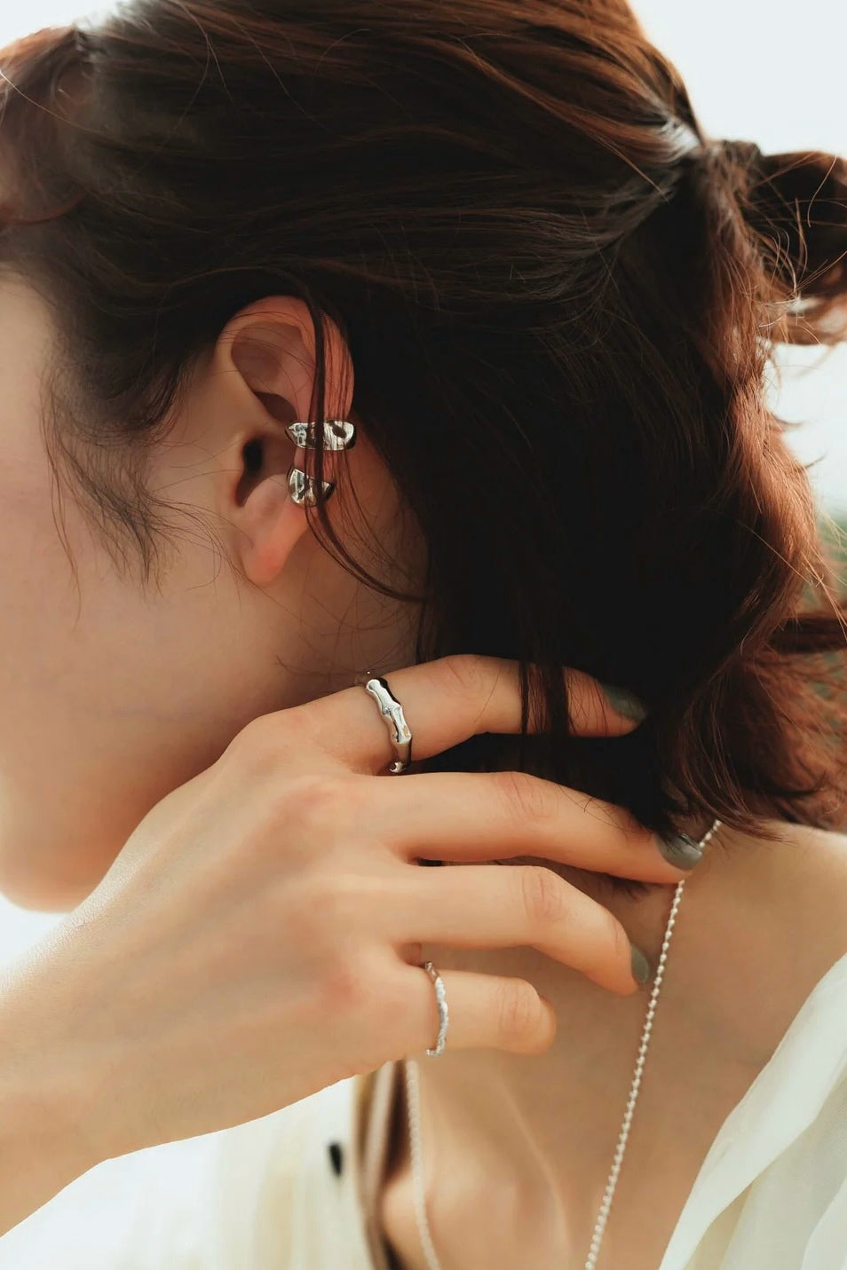 オーバルバブルライン シルバーイヤーカフ Silver925