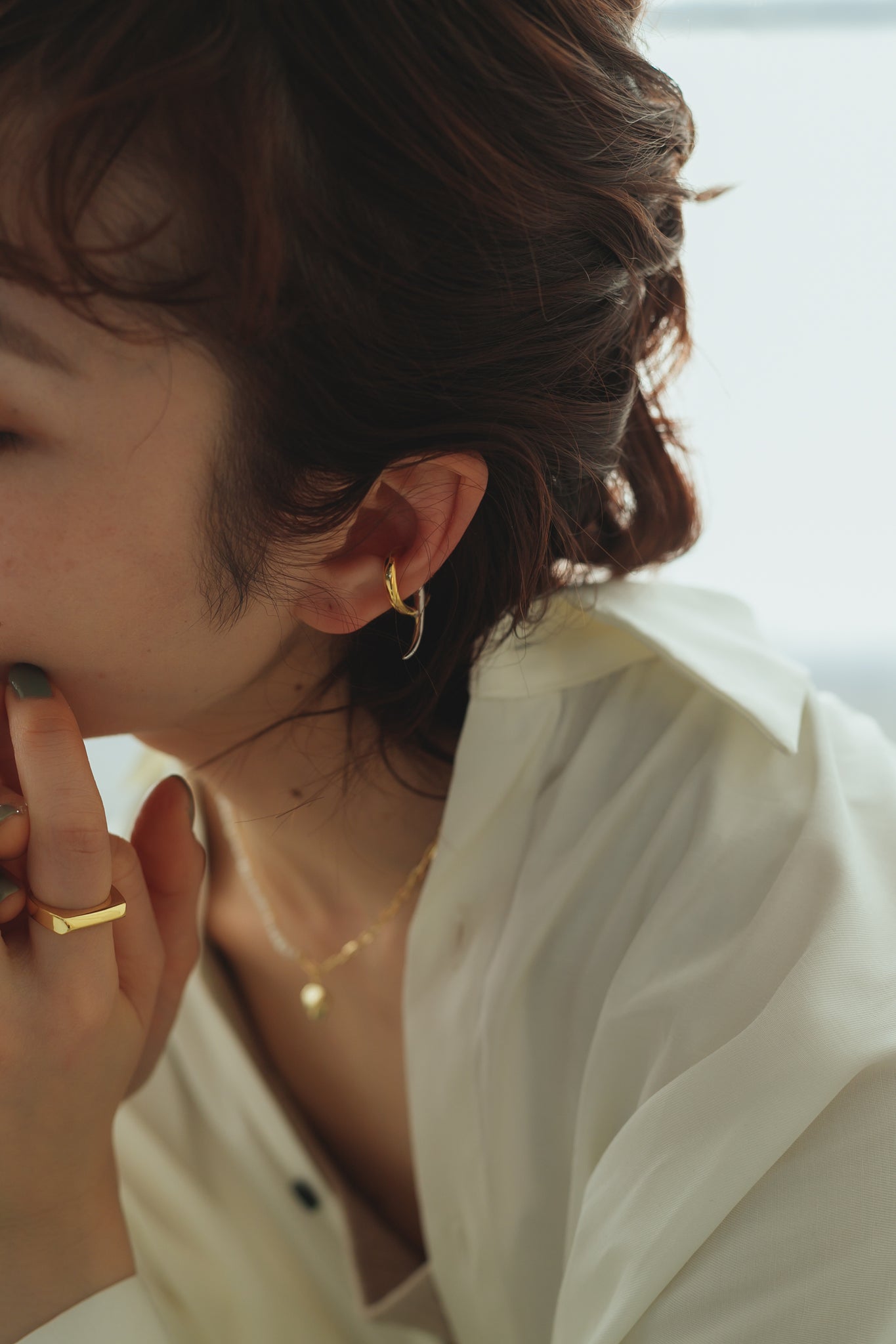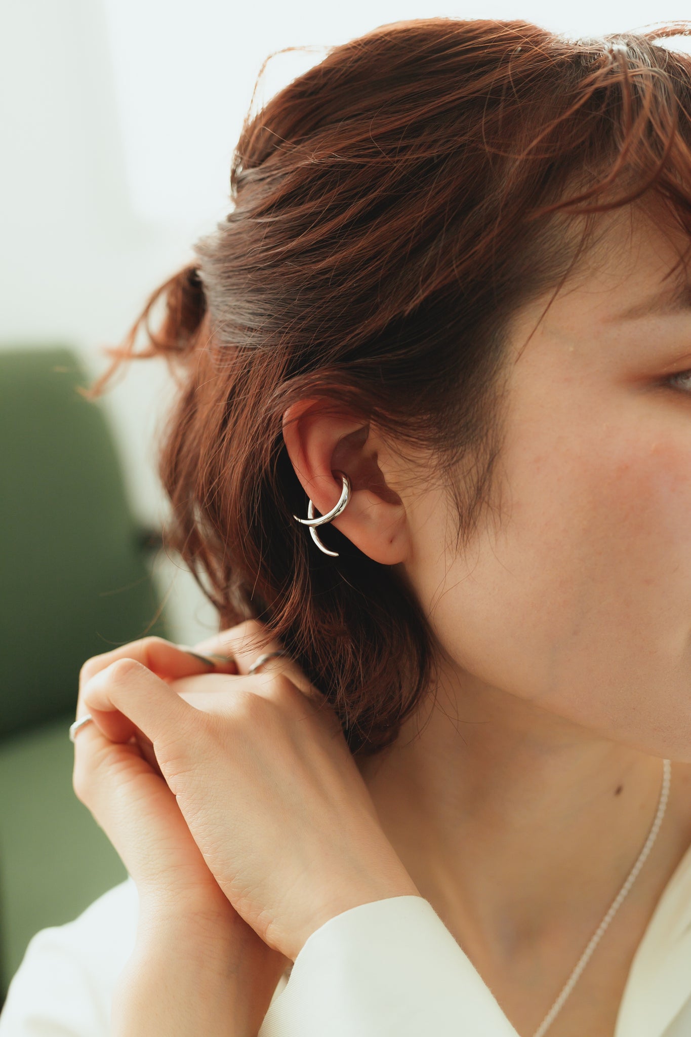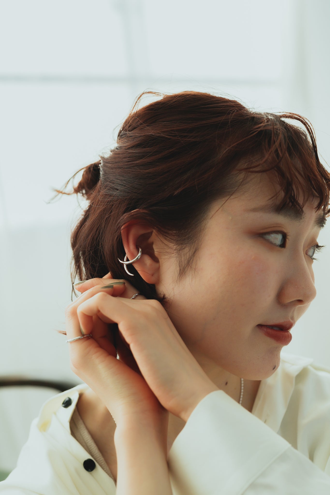 耳を貫通しているように見えるスタイリッシュなデザインが人気のイヤーカフです!