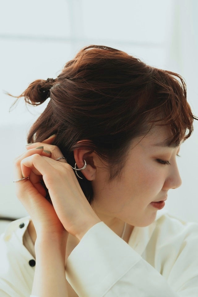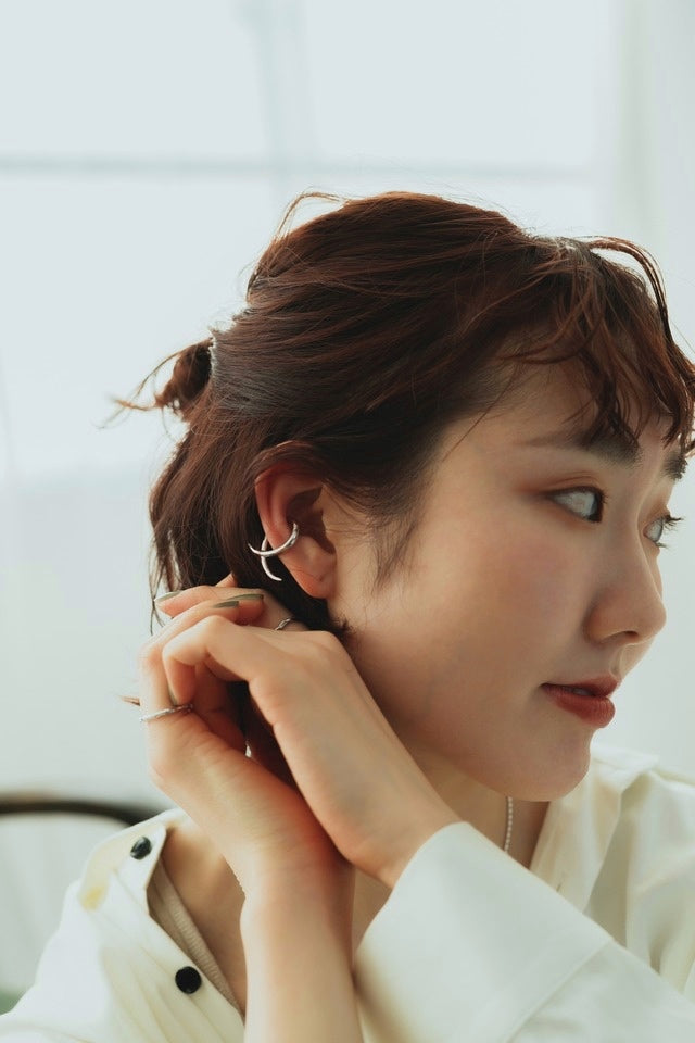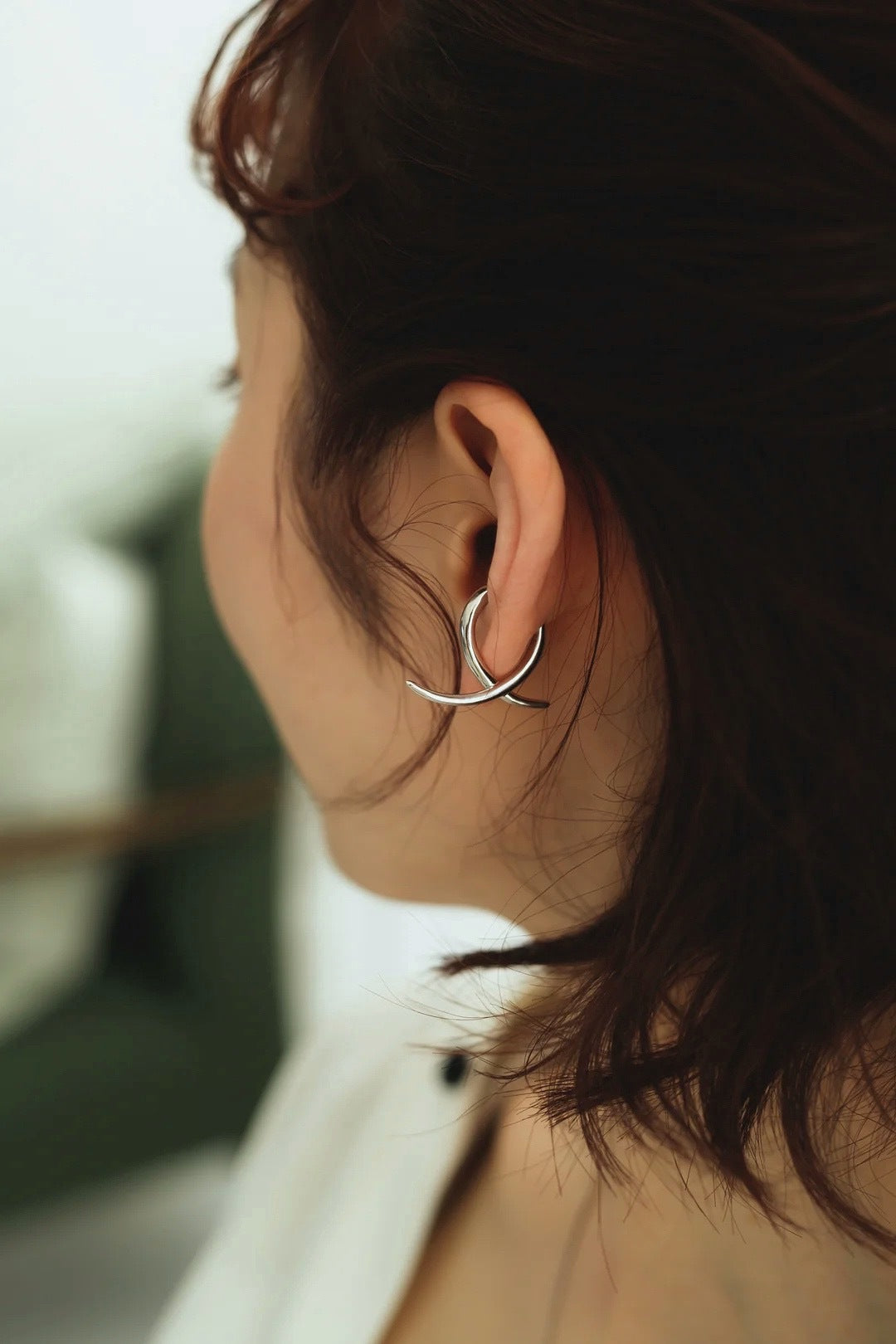 耳を貫通しているように見えるスタイリッシュなデザインがユニセックスに人気のイヤーカフです!