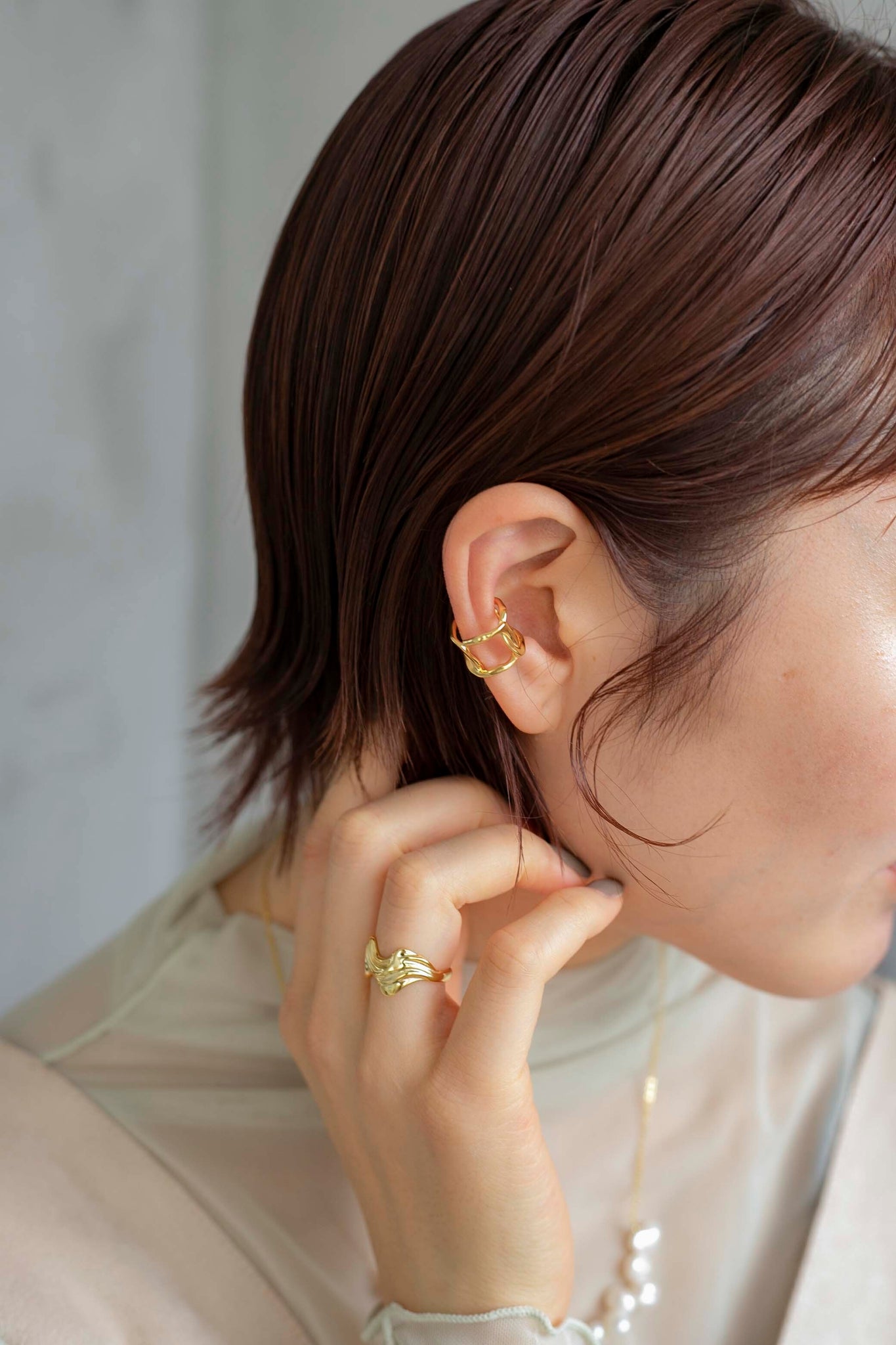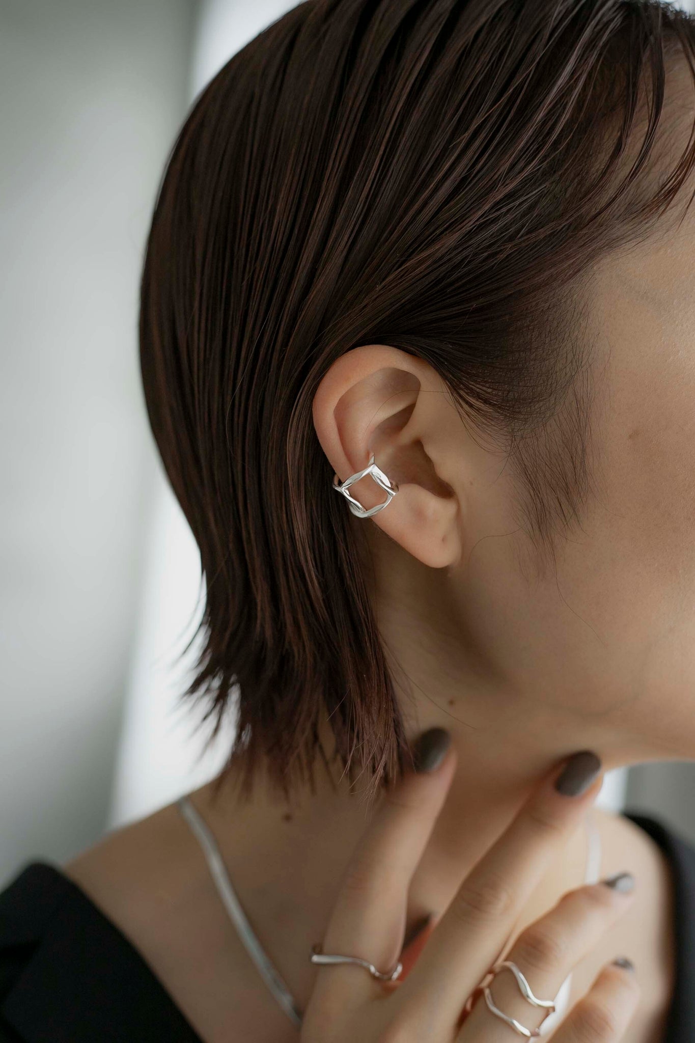 抜け感のある立体的なスクエアデザインがとても可愛いイヤーカフです!