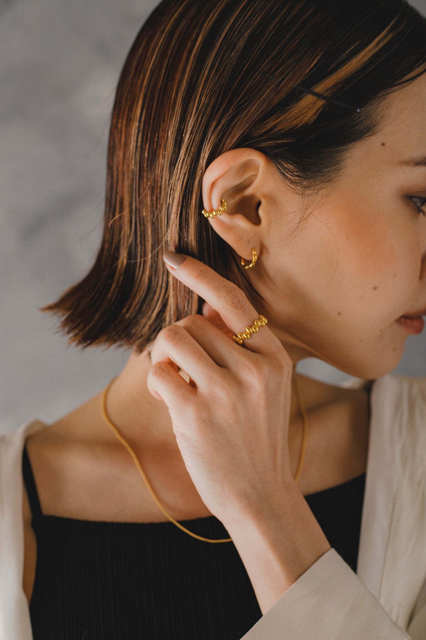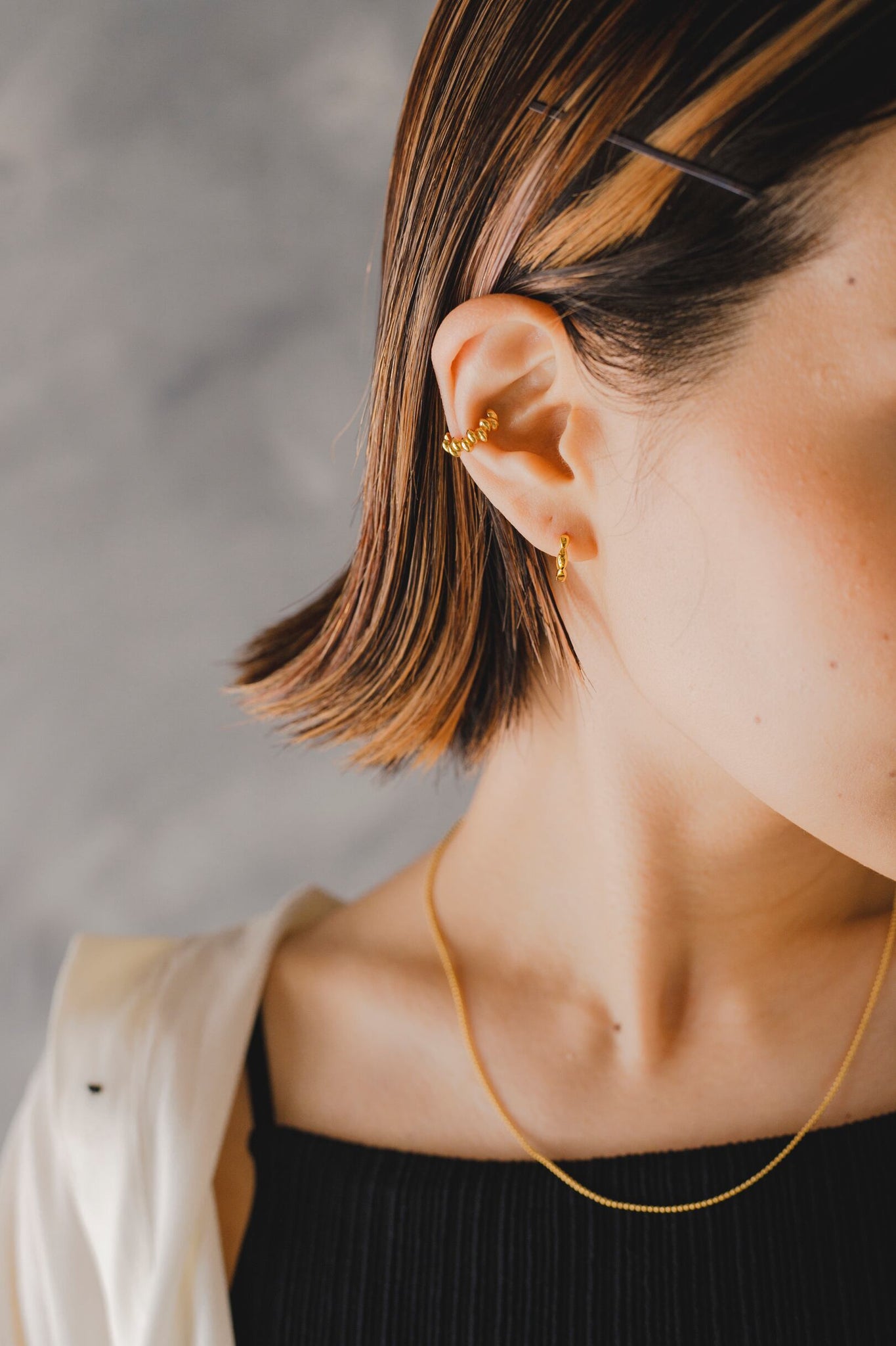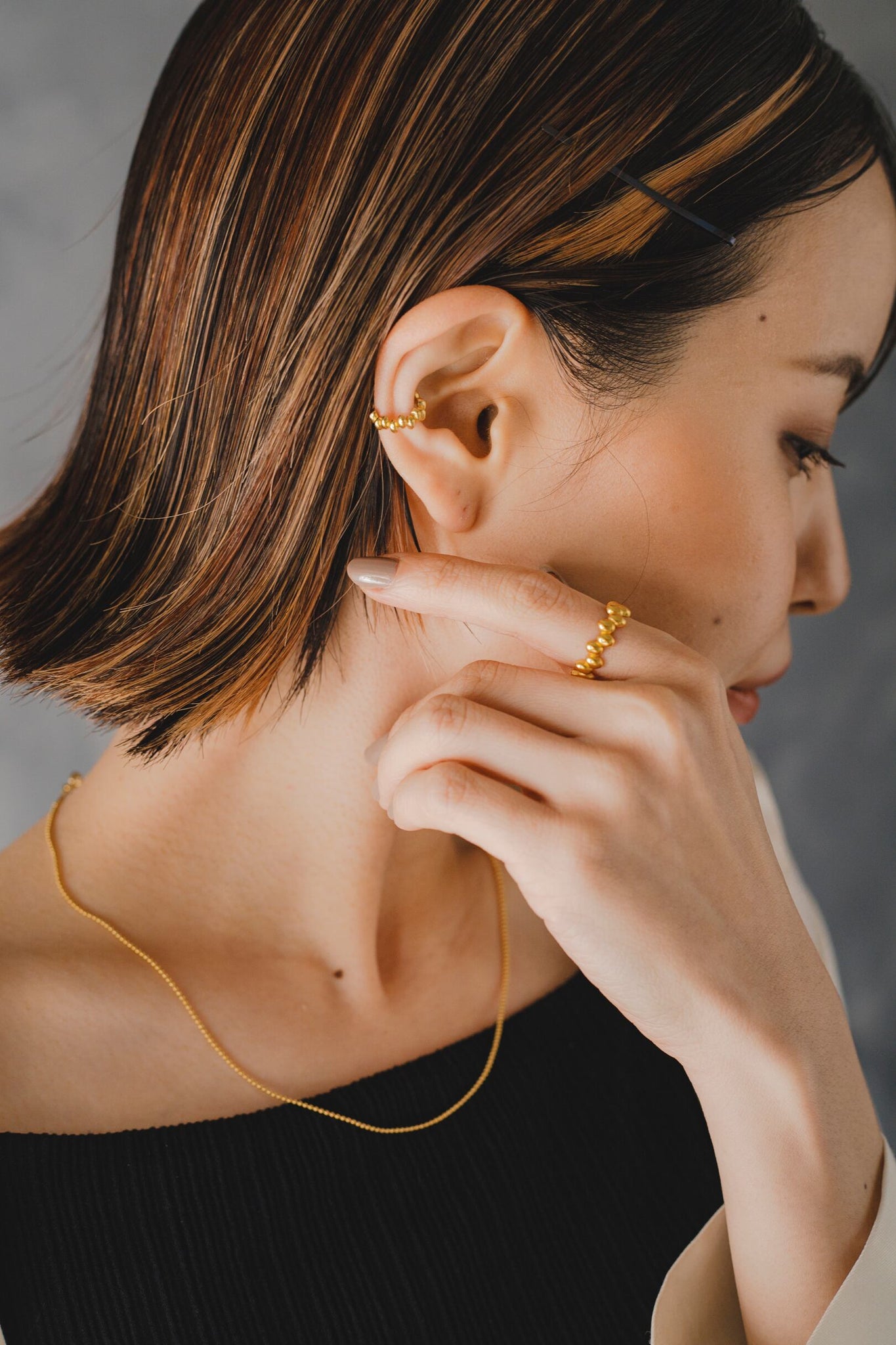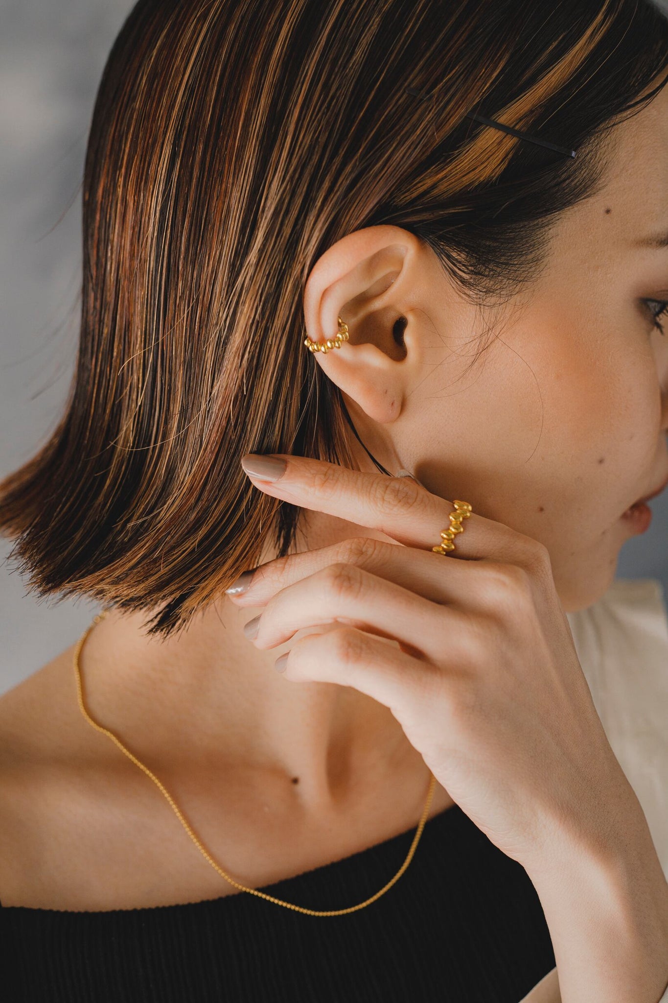ぷっくりした楕円をウェーブ状に並べたデザインがとても可愛いイヤーカフです!