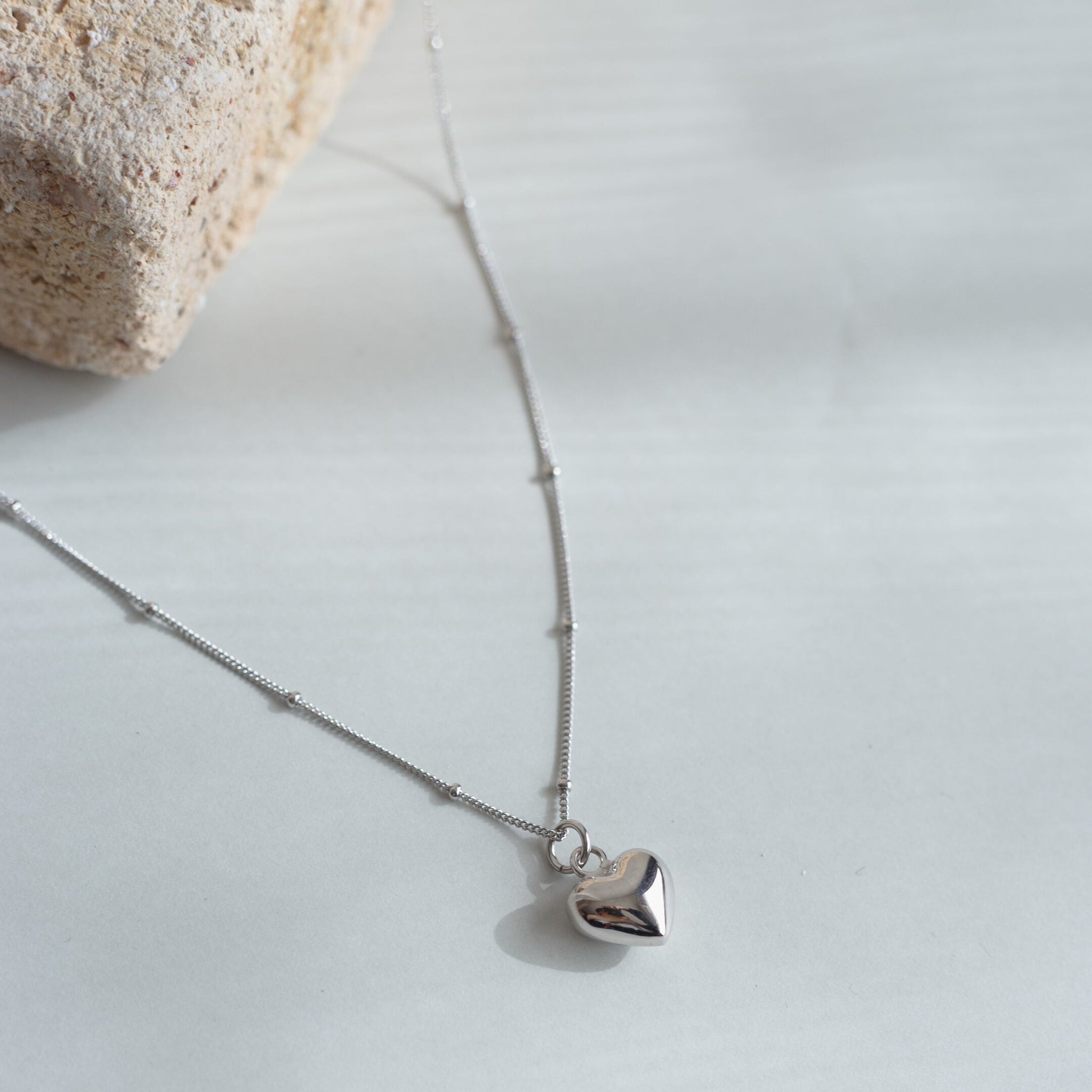 ぷっくりとしたハートモチーフとチェーンのアクセントの組み合わせが大人かわいくお使いいただけるネックレスです!