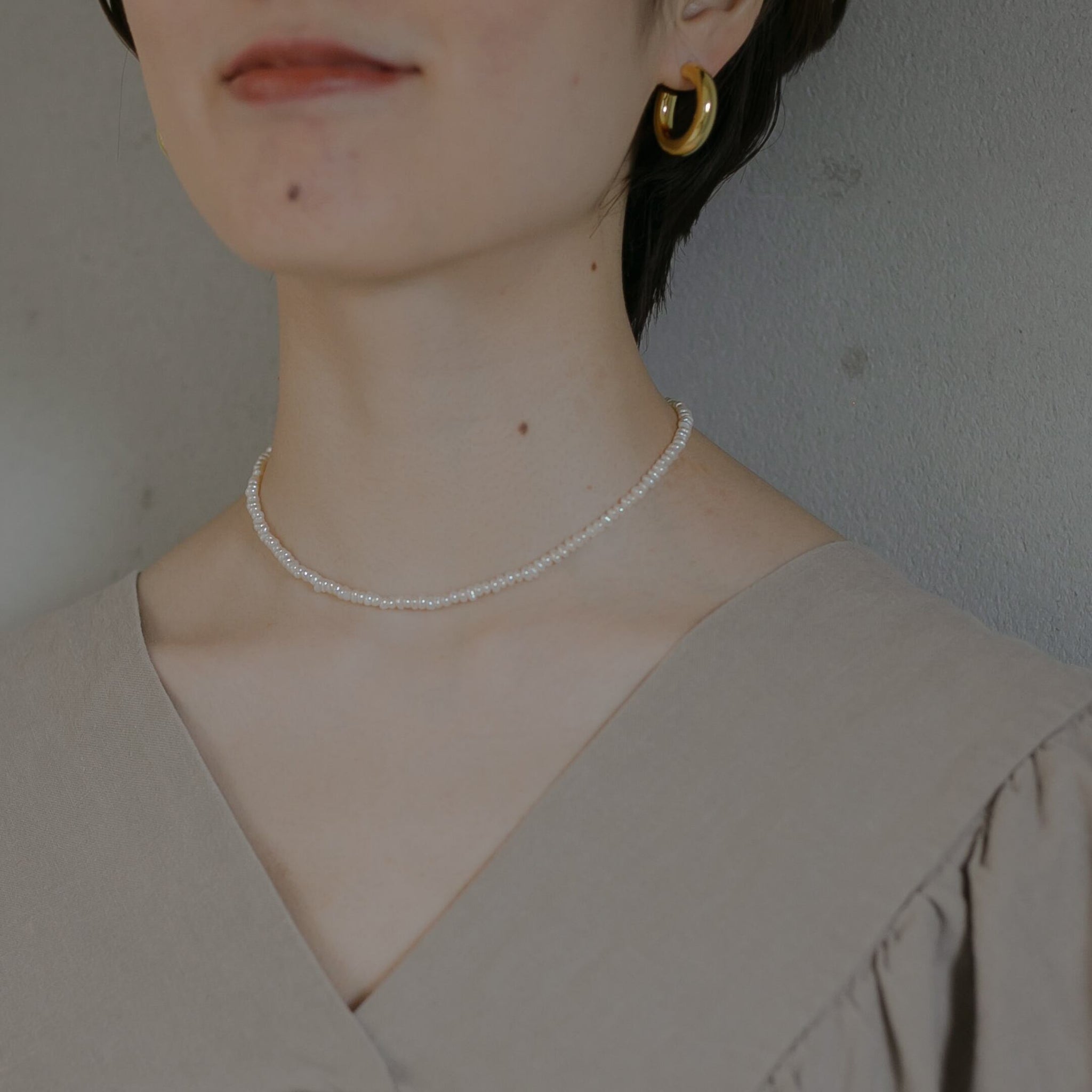 肌なじみの良い細かいパールが普段のコーディネートに取り入れやすく、人気のチョーカーです!
