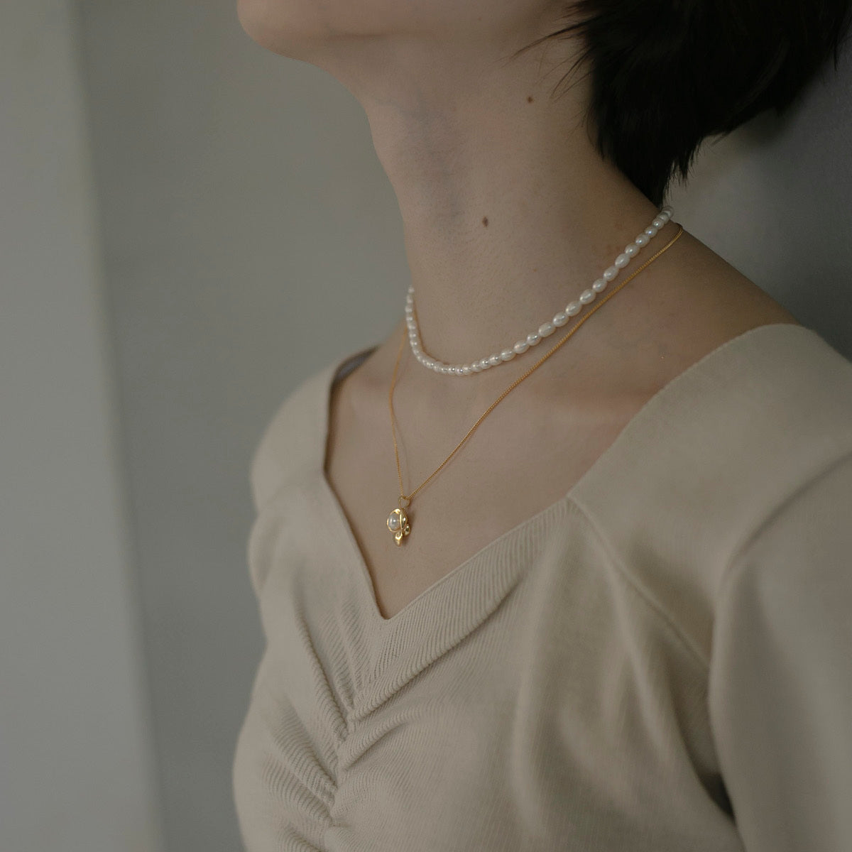 シンプル淡水パール シルバーチョーカー Silver925