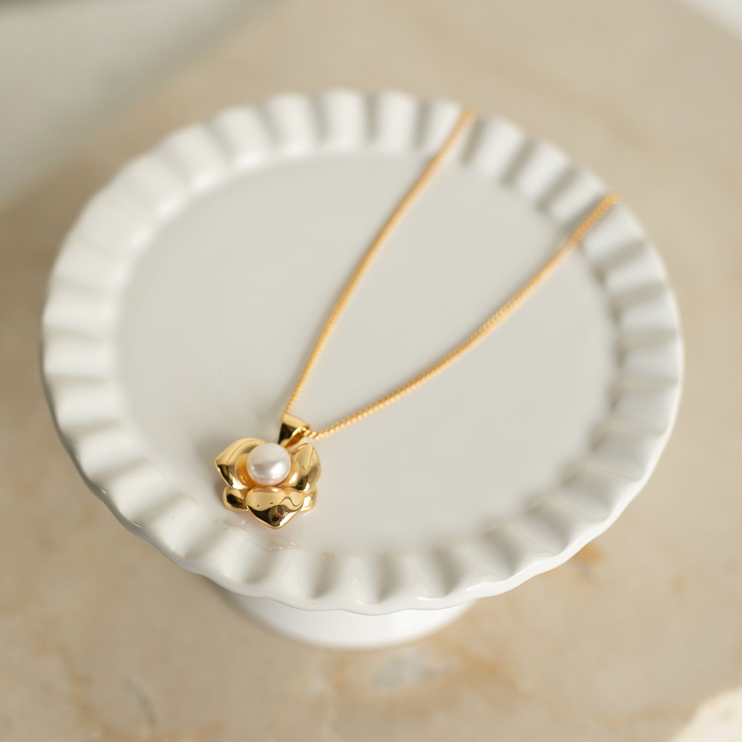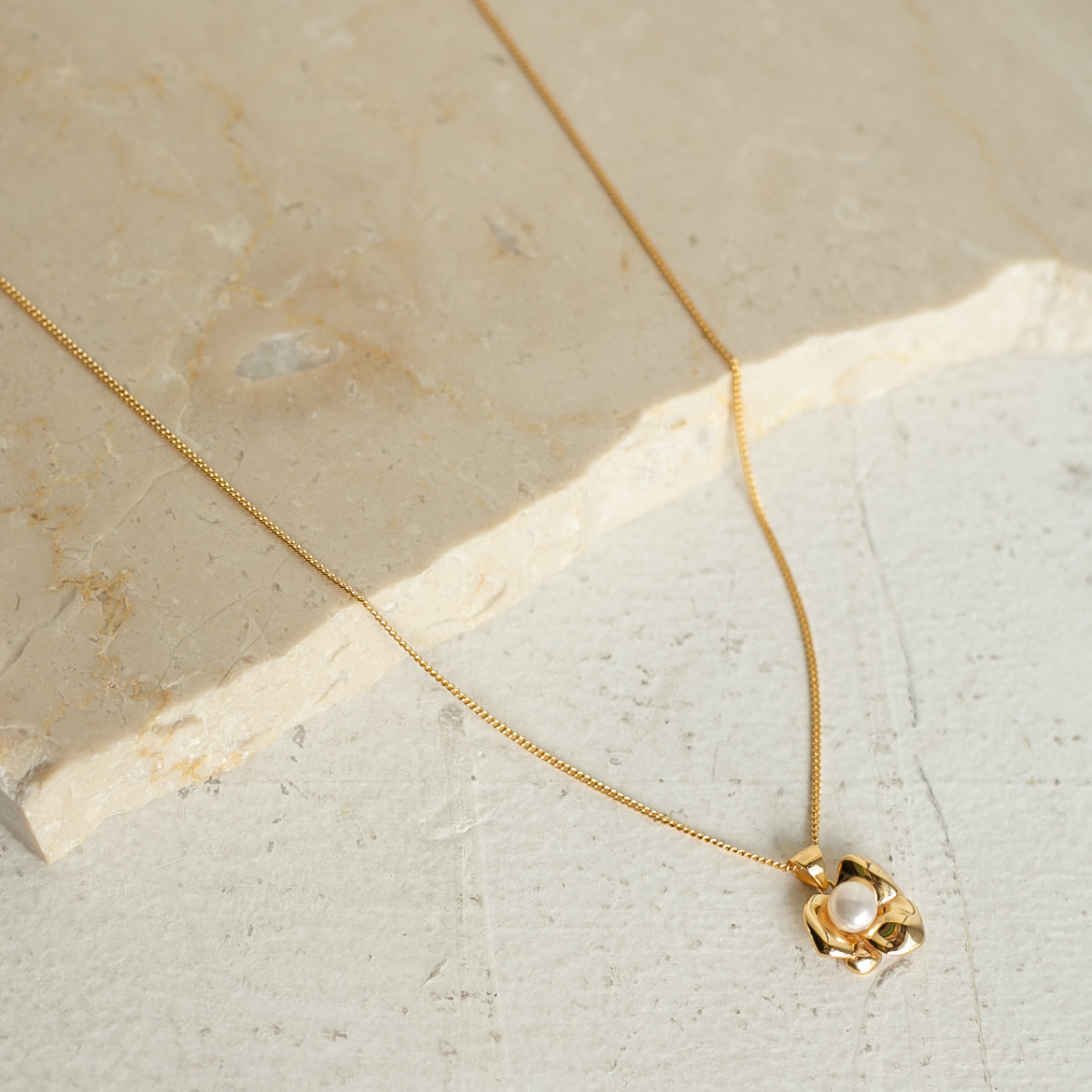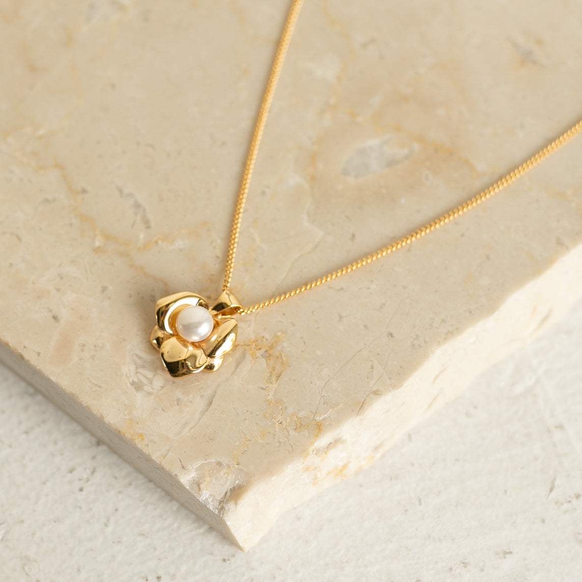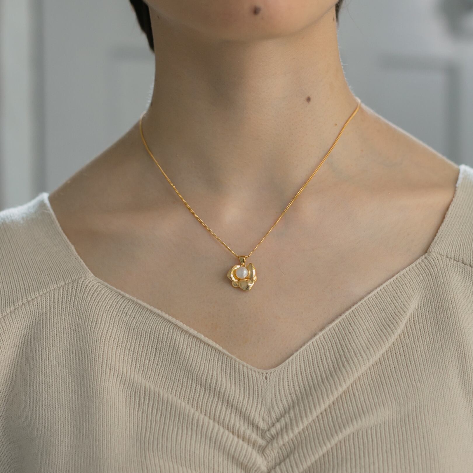 使いやすいサイズ感のフラワーモチーフにトレンドのパールをあしらったデザインがとても可愛いネックレスです!
