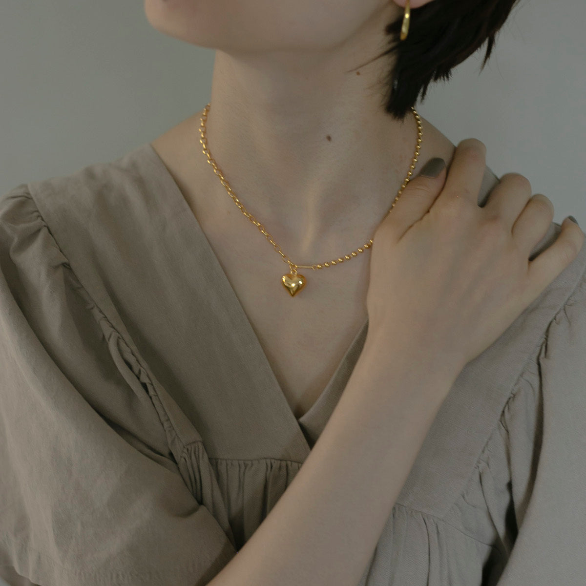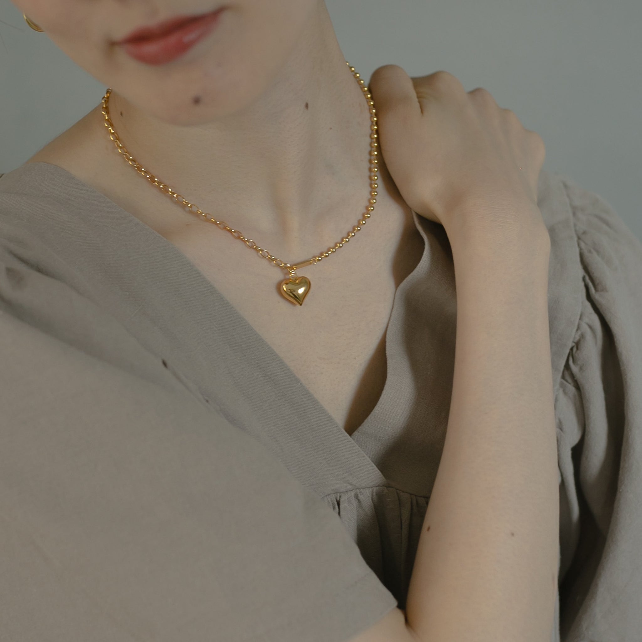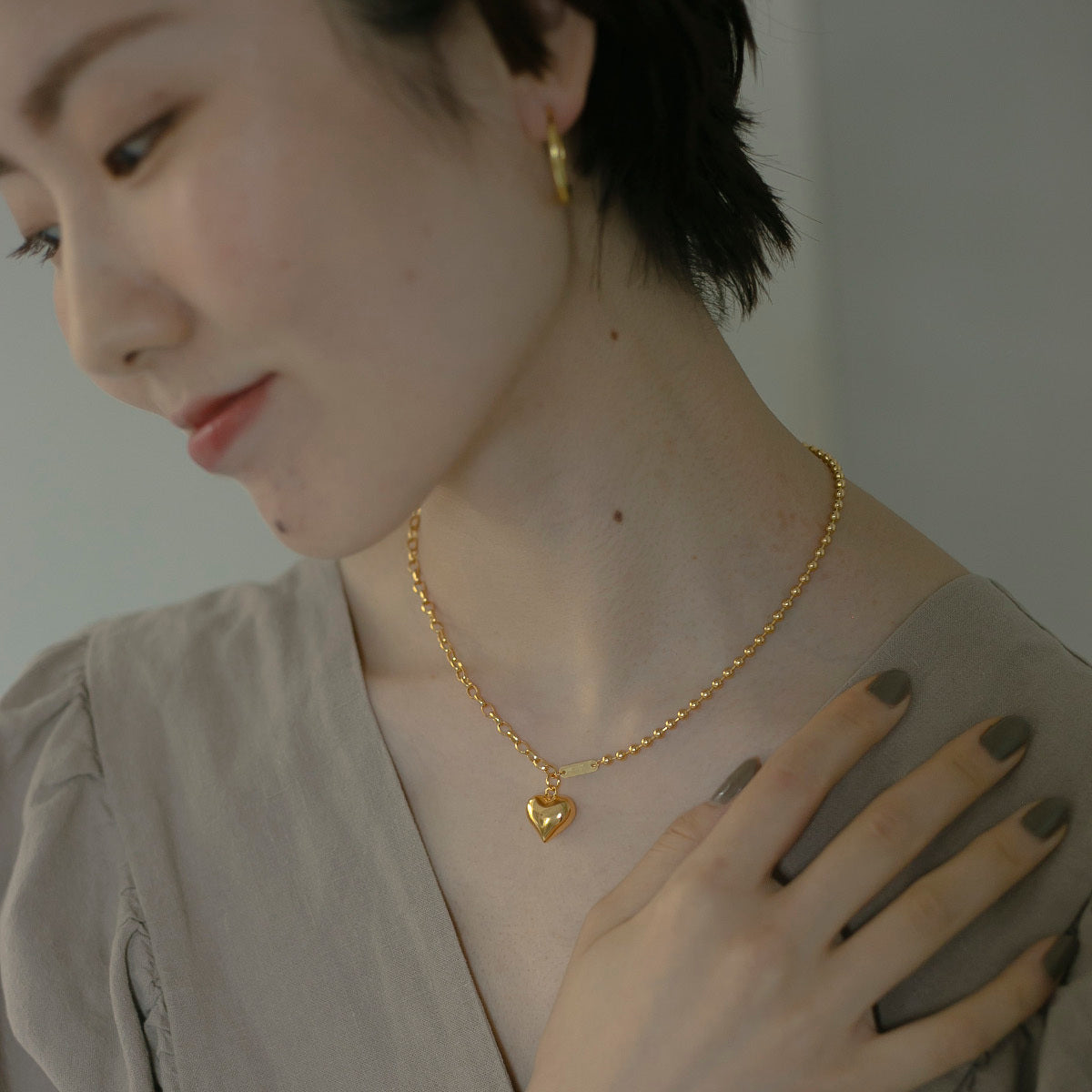 艶やかでぷっくりとしたハートモチーフとプレートのアクセントがとても可愛いチェーンネックレスです!