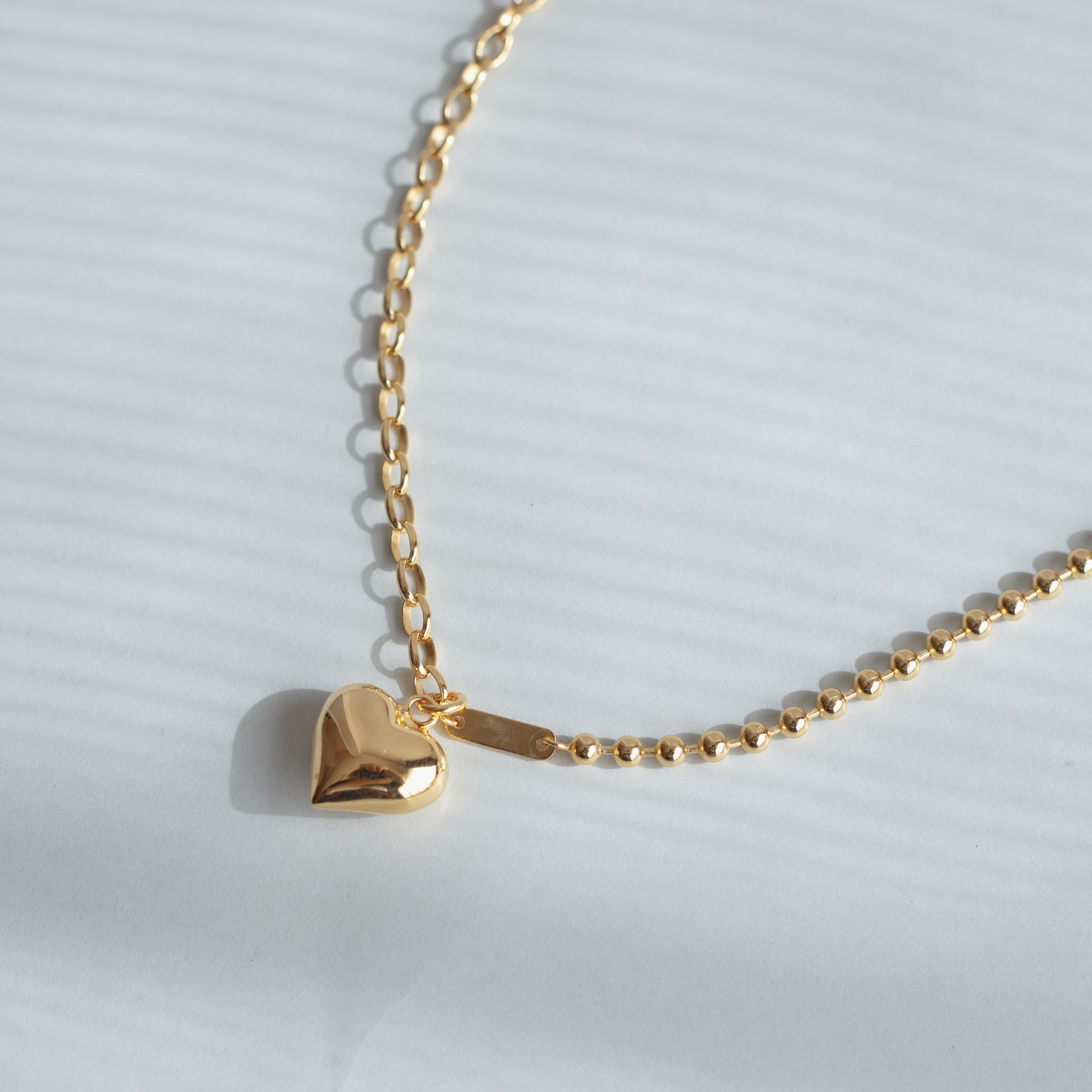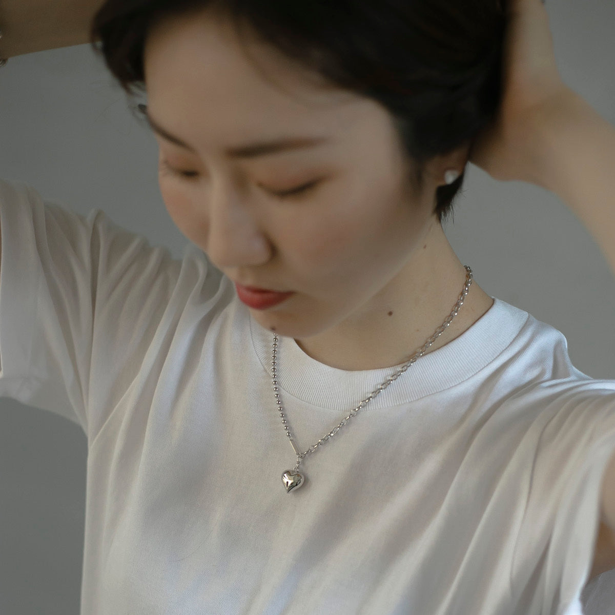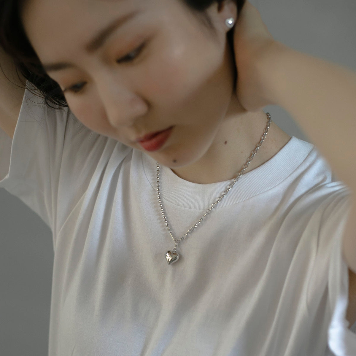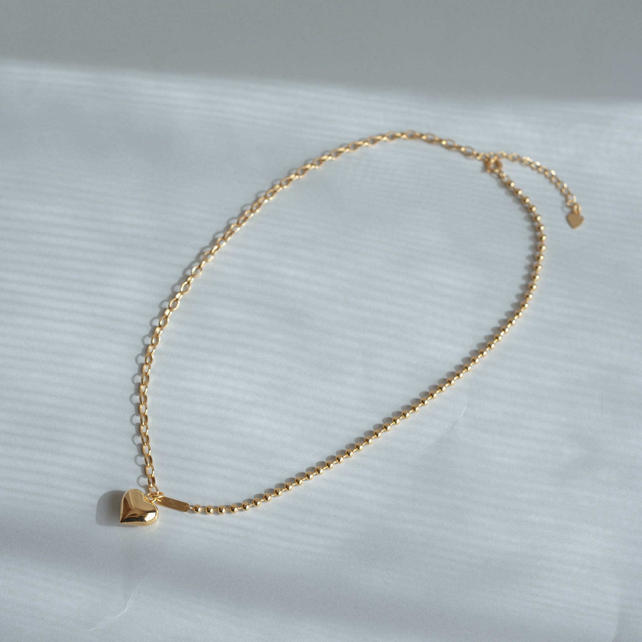 艶やかでぷっくりとしたハートモチーフとプレートのアクセントがとても可愛いチェーンネックレスです!