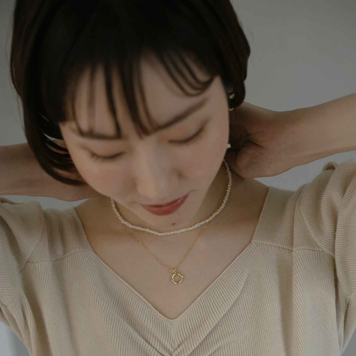 絶妙なサイズ感のツイストになったサークルモチーフがとても可愛いネックレスです!