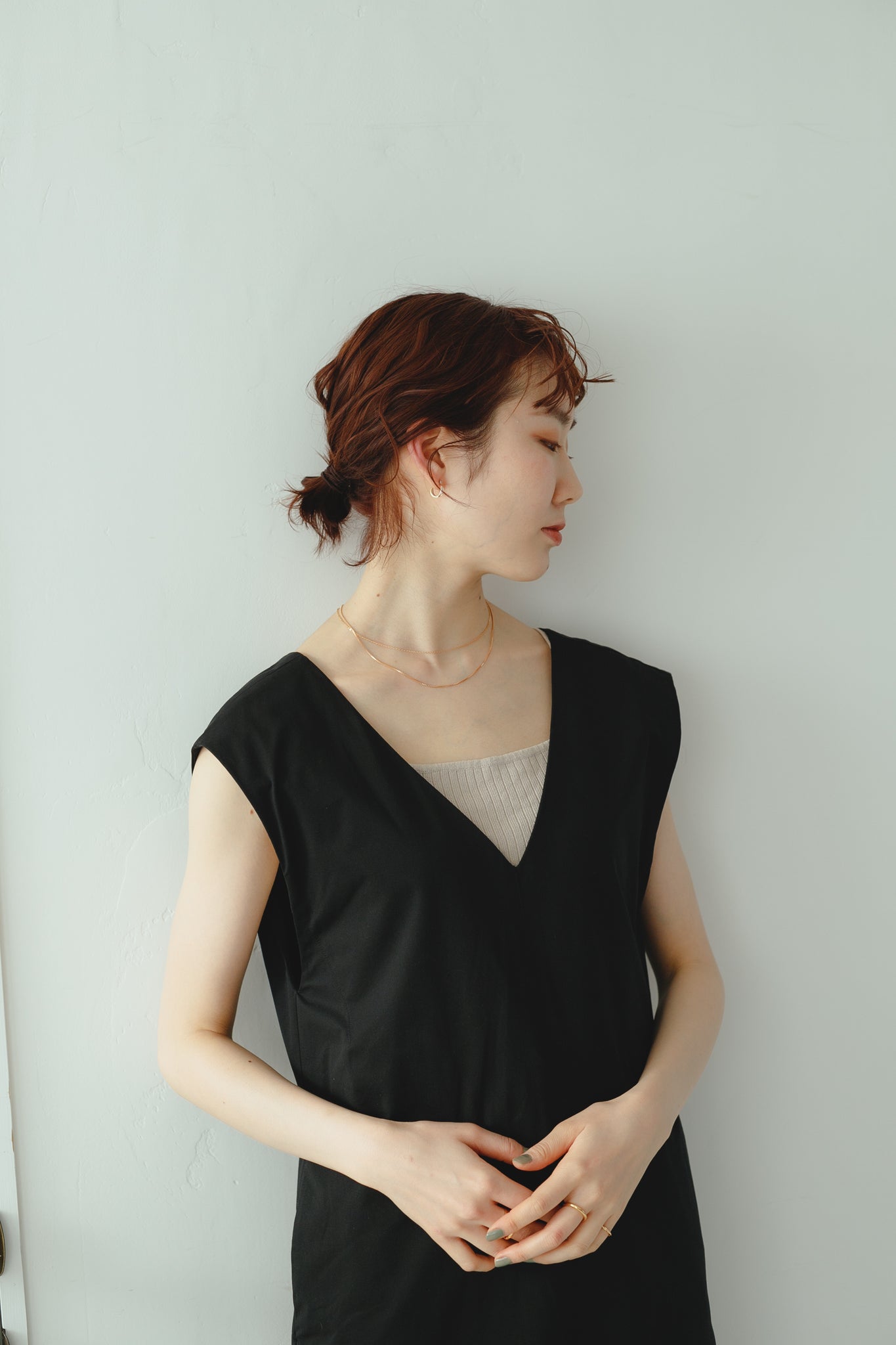 肌なじみの良いオレンジゴールドが大人カジュアルな雰囲気にもぴったりで、首元に抜け感を与えてくれます◎