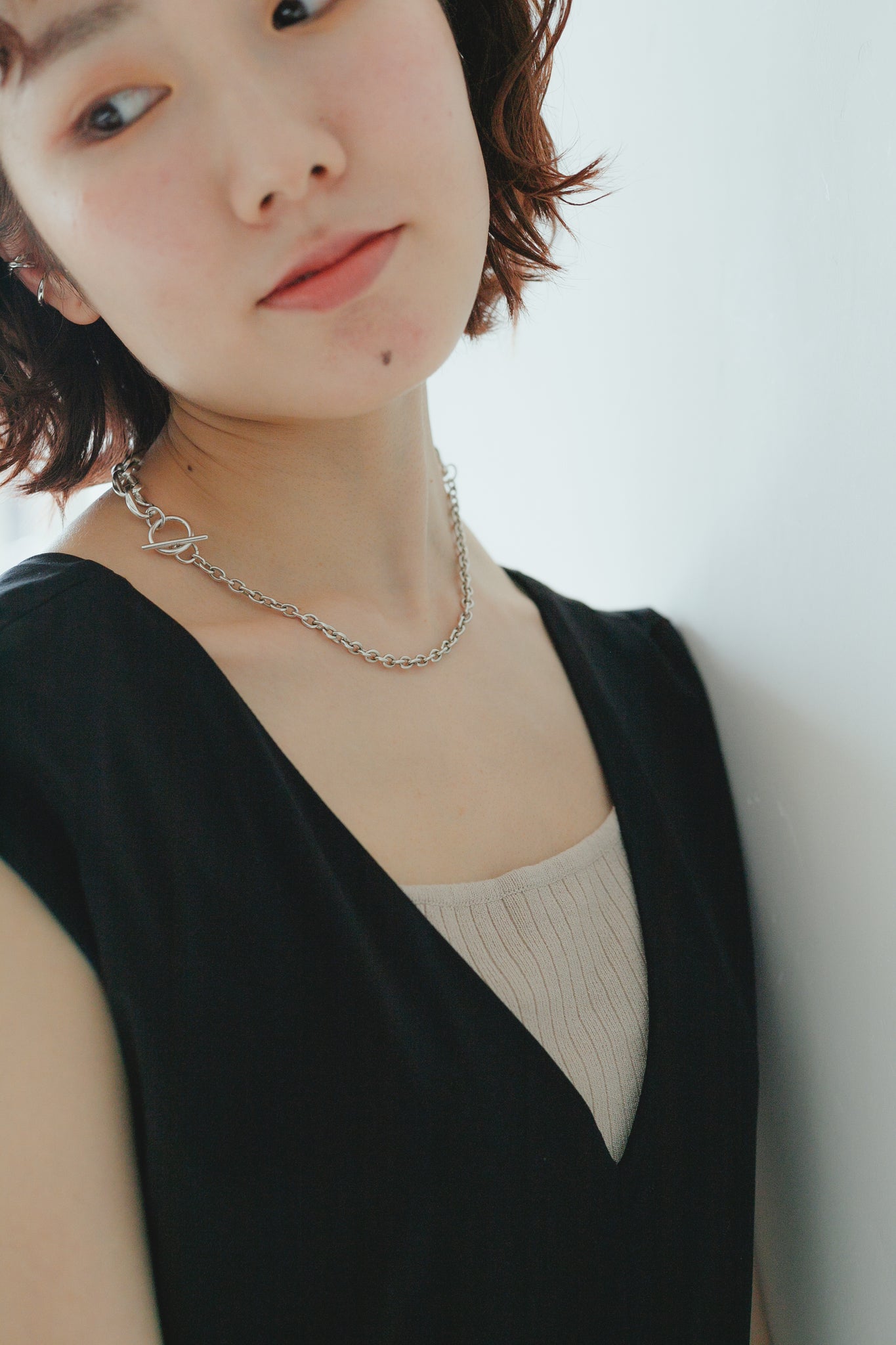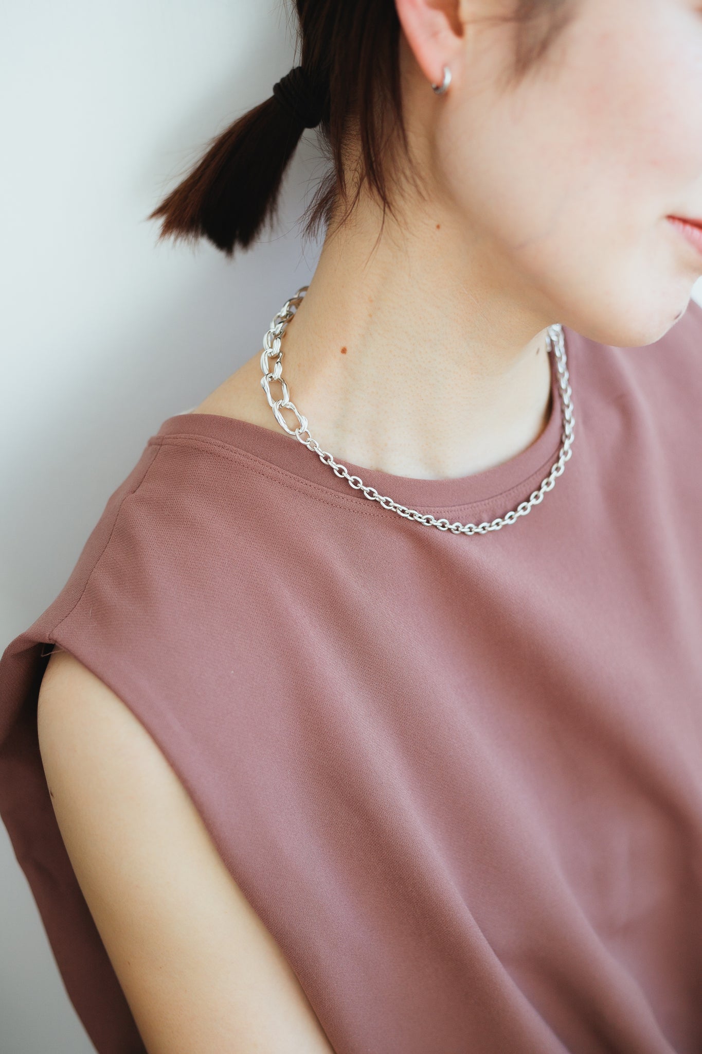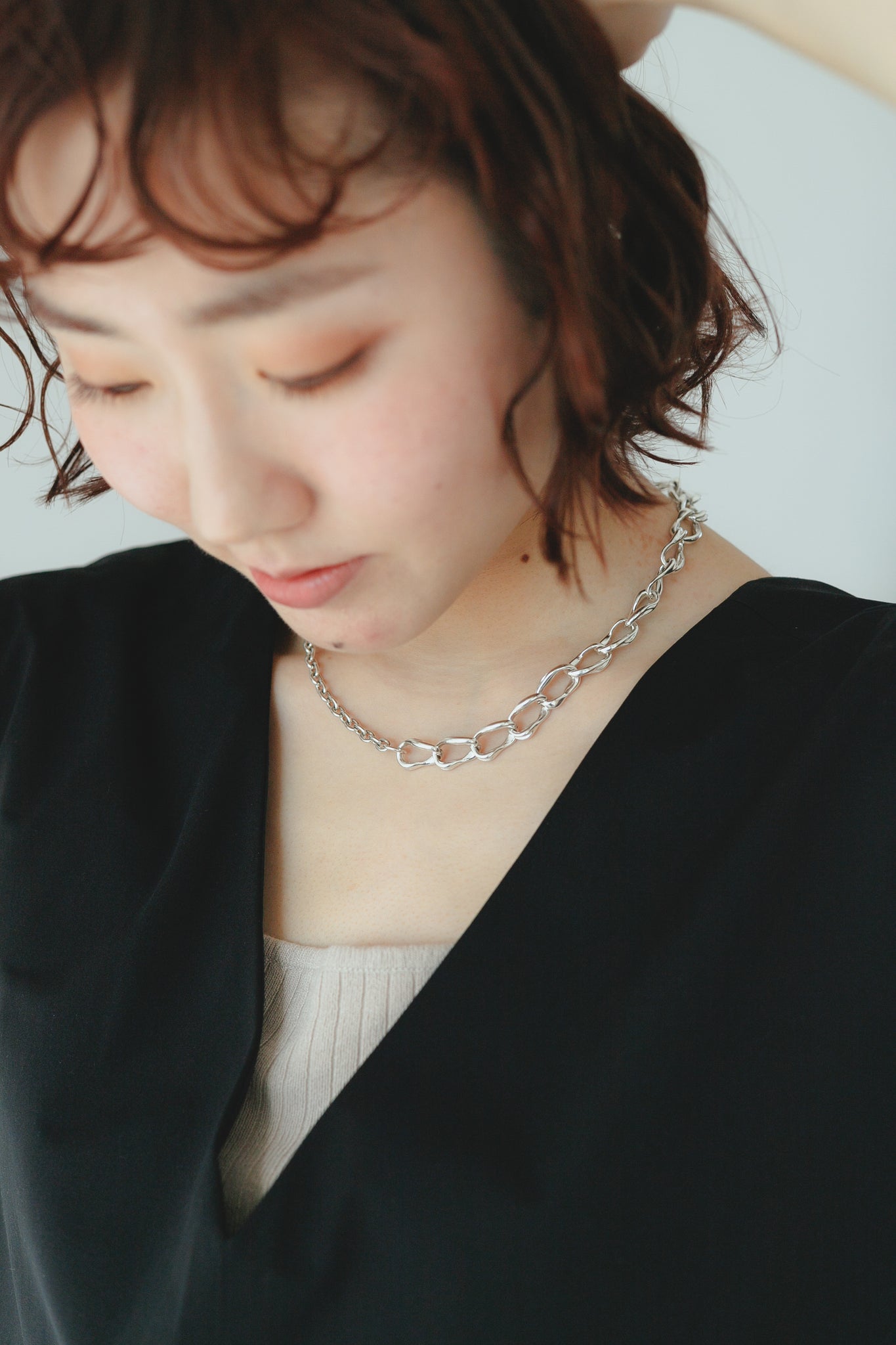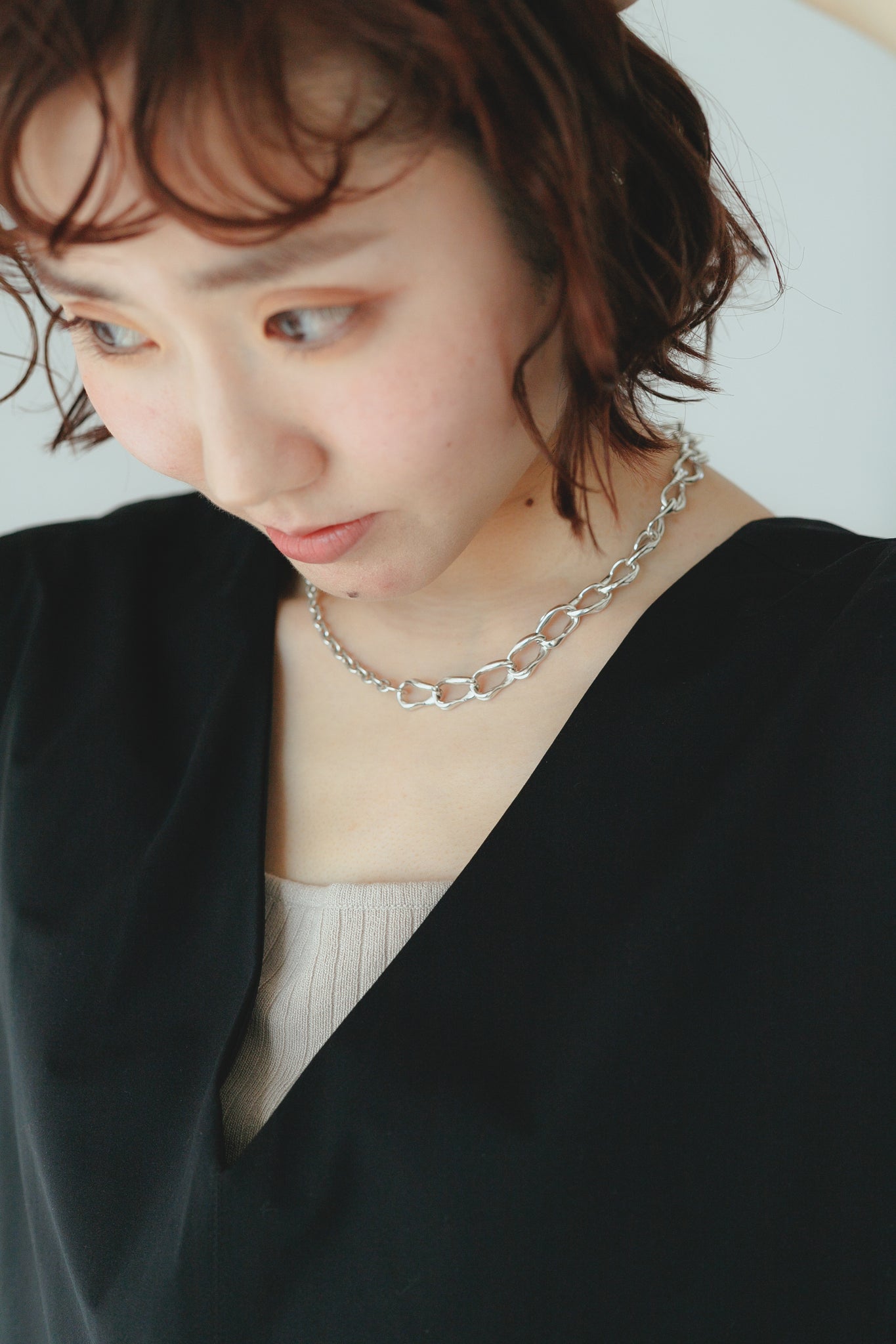 どの部分を正面にもってくるかで印象が変わる上質なチェーンネックレスです!