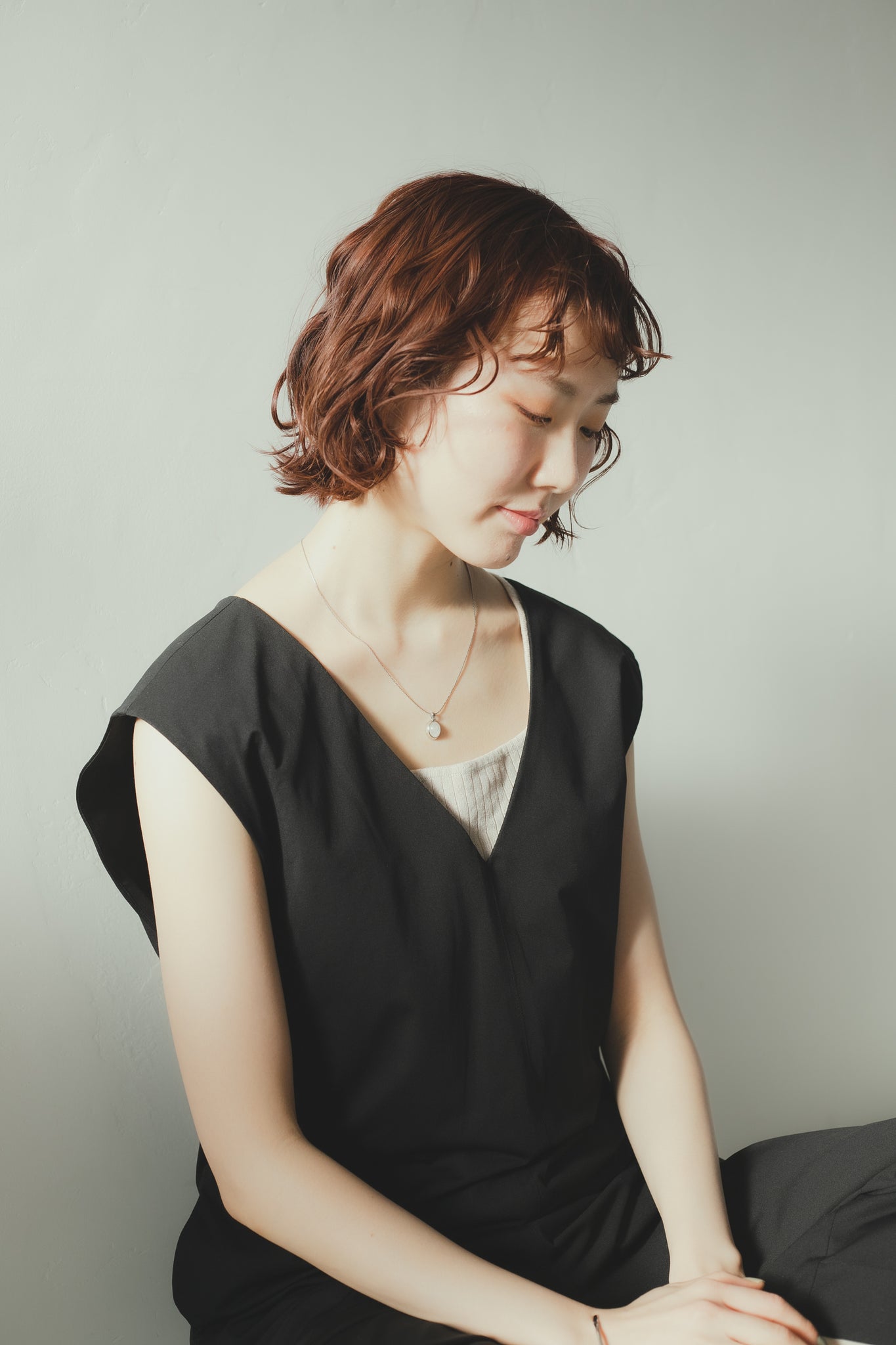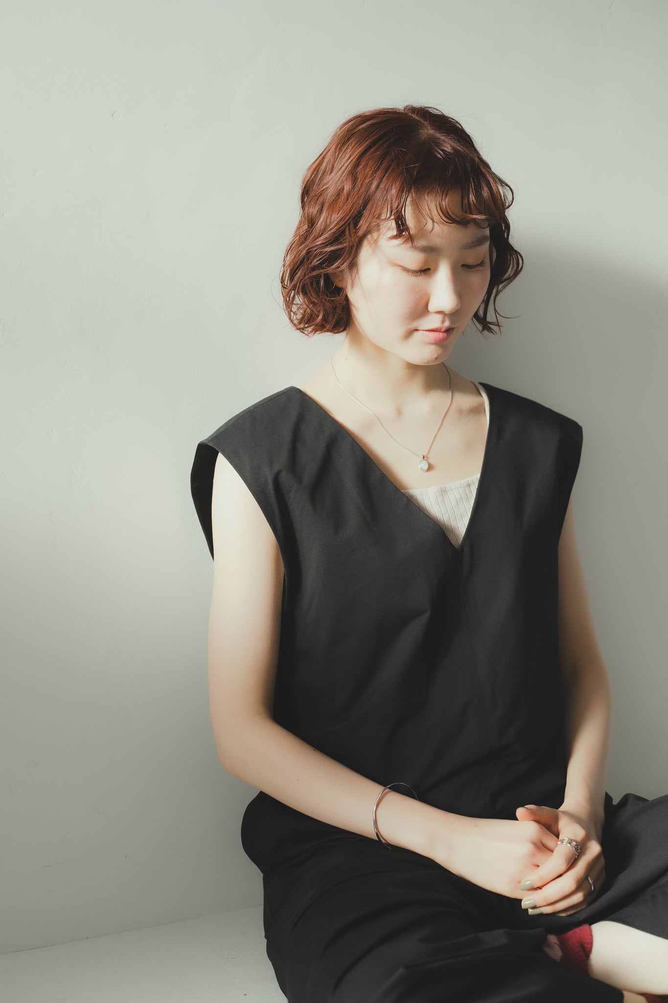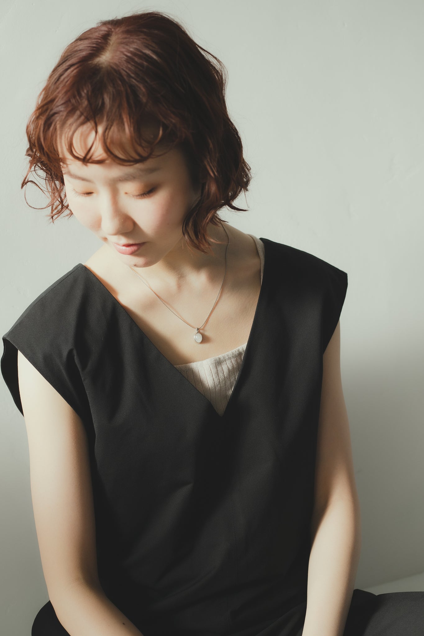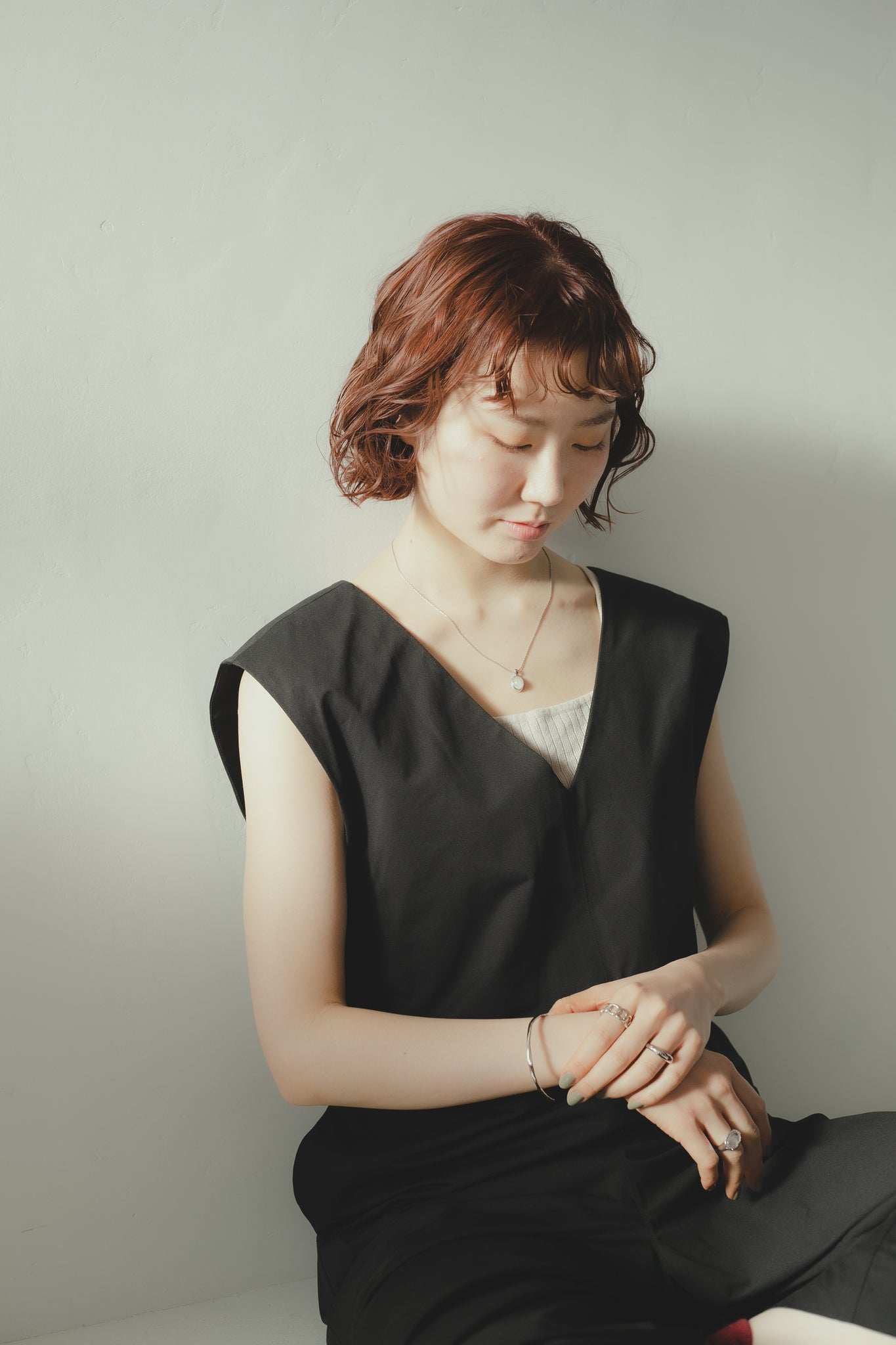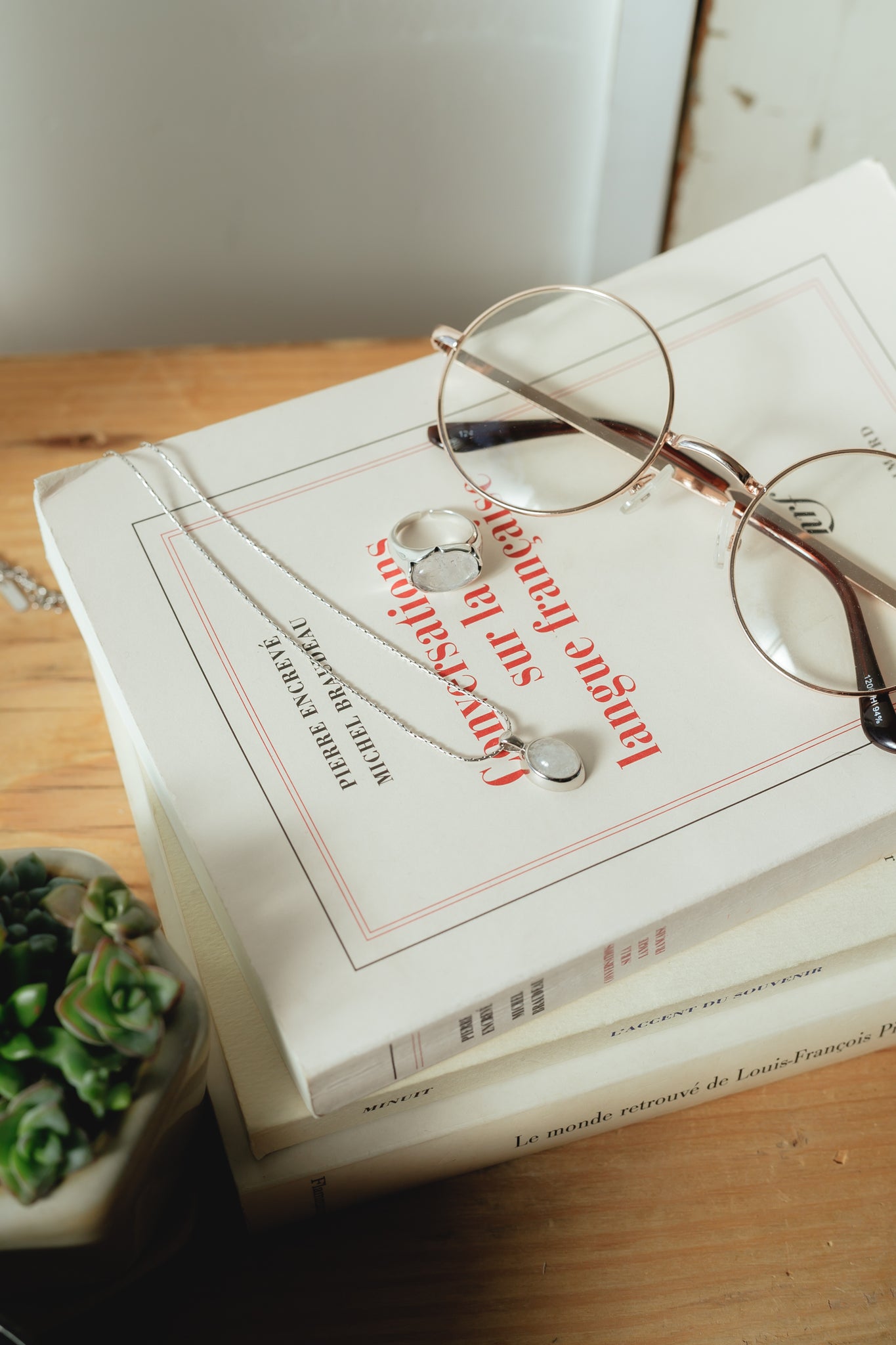 同じくホワイトクォーツを用いたリングと合わせてもお洒落で、首元を明るく綺麗に見せてくれ、大人カジュアルな雰囲気にもぴったりです◎