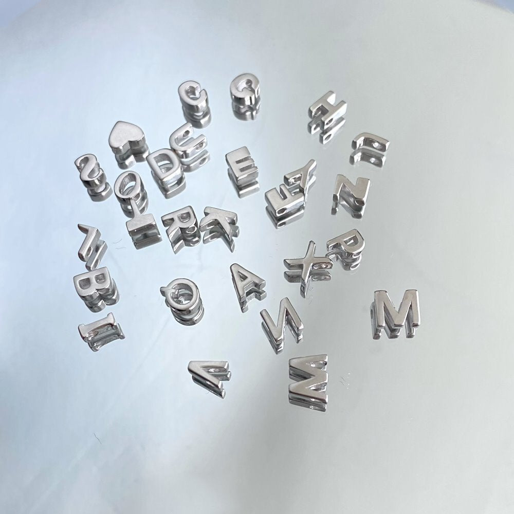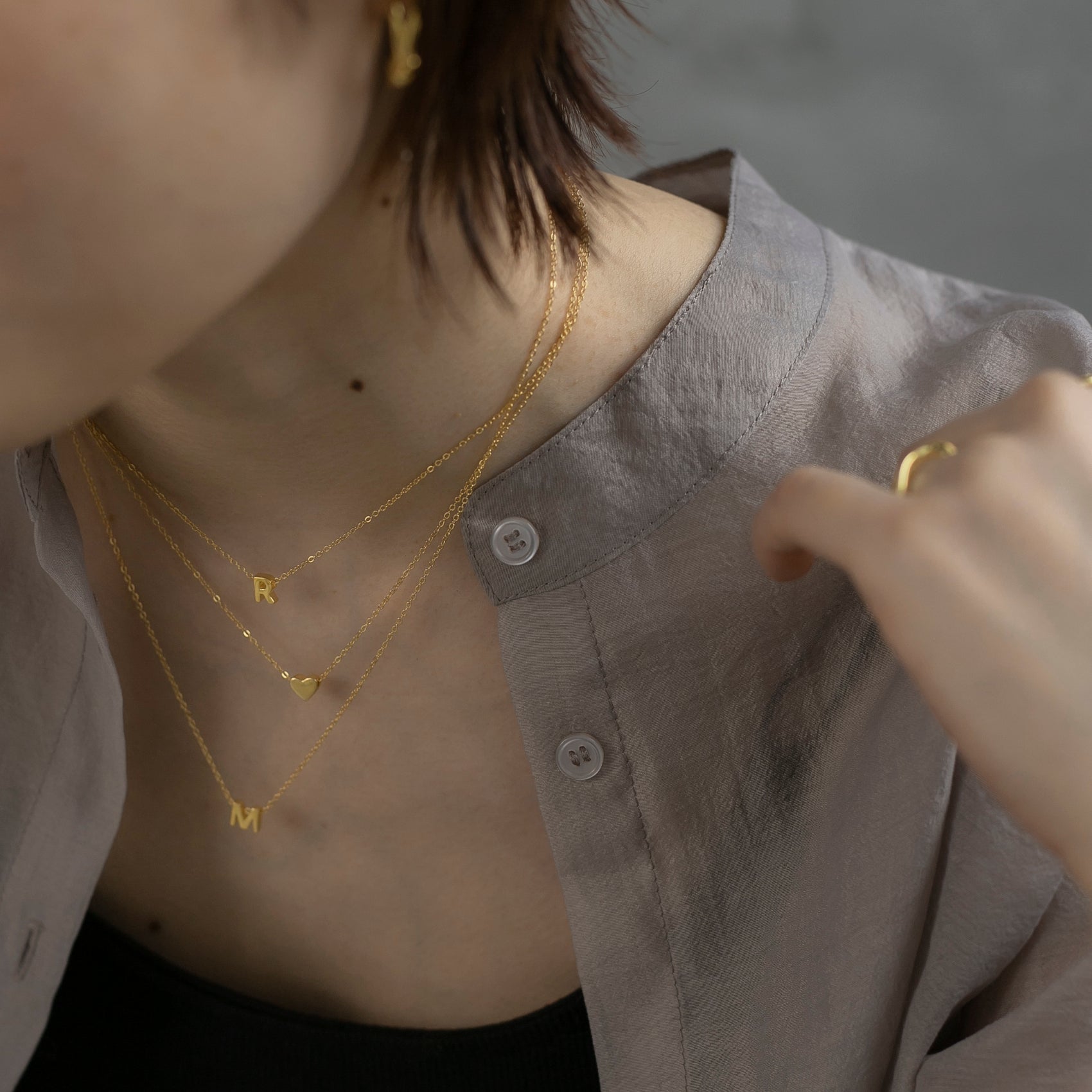 立体的で丸みのあるイニシャルパーツがとても可愛く、単体ではもちろん写真のように重ねづけしたり一つのチェーンに複数のイニシャルパーツを通してもお使いいただけ、推し活にも是非◎