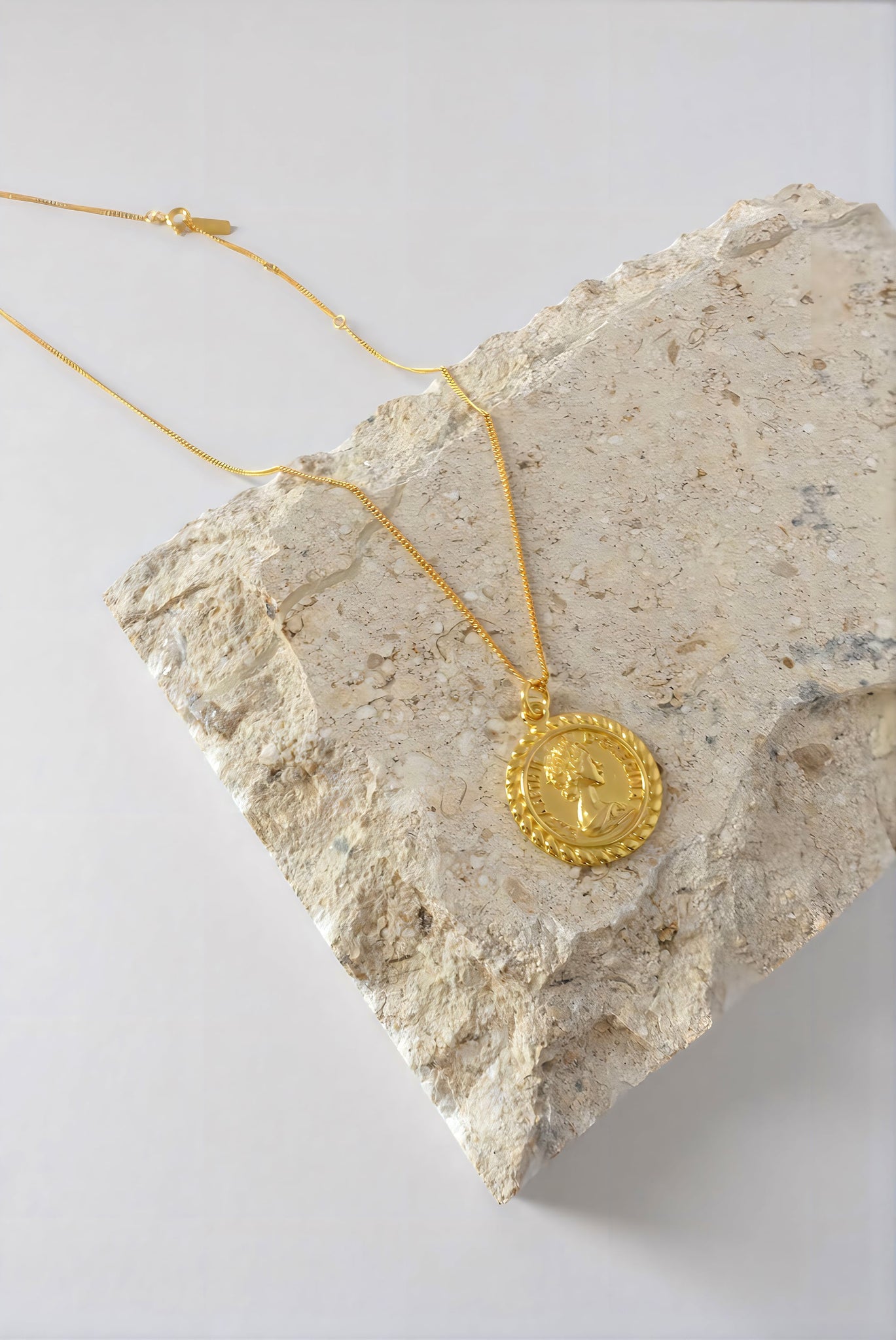 存在感のあるゴールドのコインモチーフが目を惹くネックレスです!!