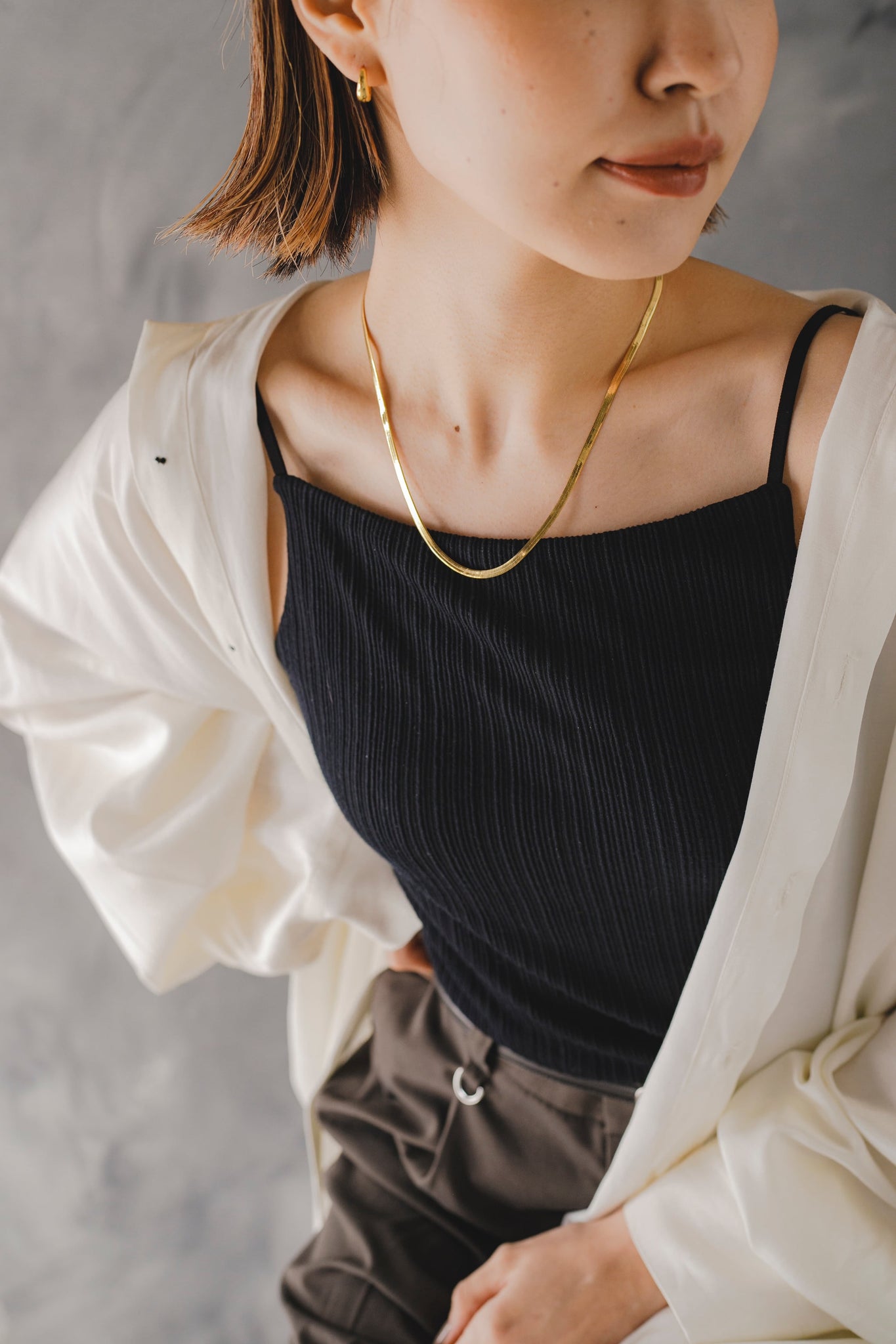 チェーンの幅を2パターンからお選びいただけ、幅広いコーディネートに合わせて大人かわいく使えます◎