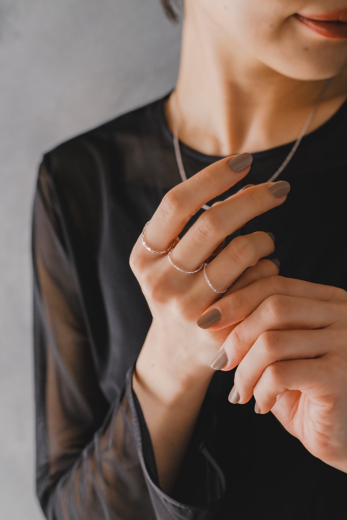 光の反射が綺麗で、単体ではもちろんデザイン違いや他のリングと組み合わせてもお使いいただけます◎