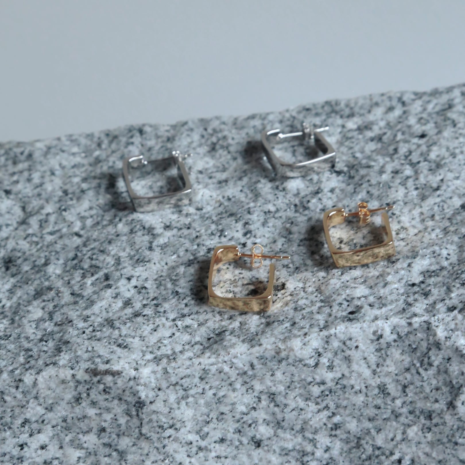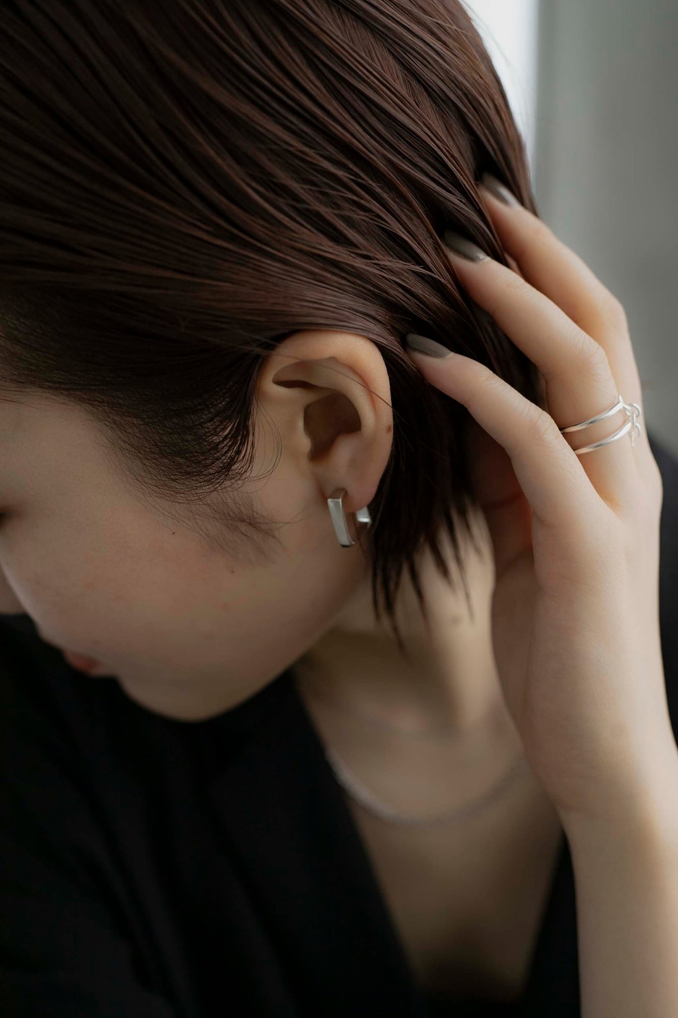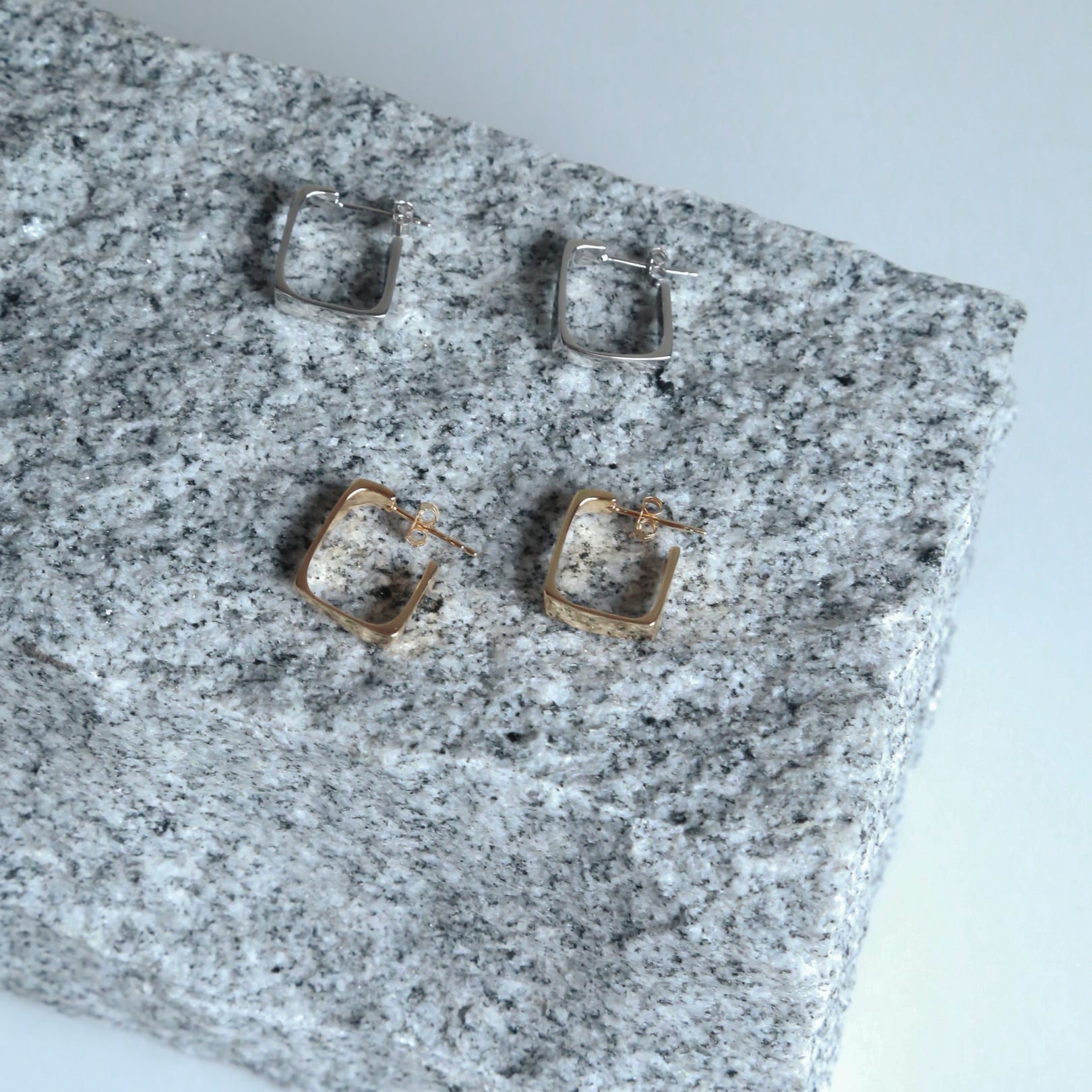 耳になじむシンプルなスクエア型がとてもお洒落で、お顔周りをすっきり明るく見せてくれるピアスになります!