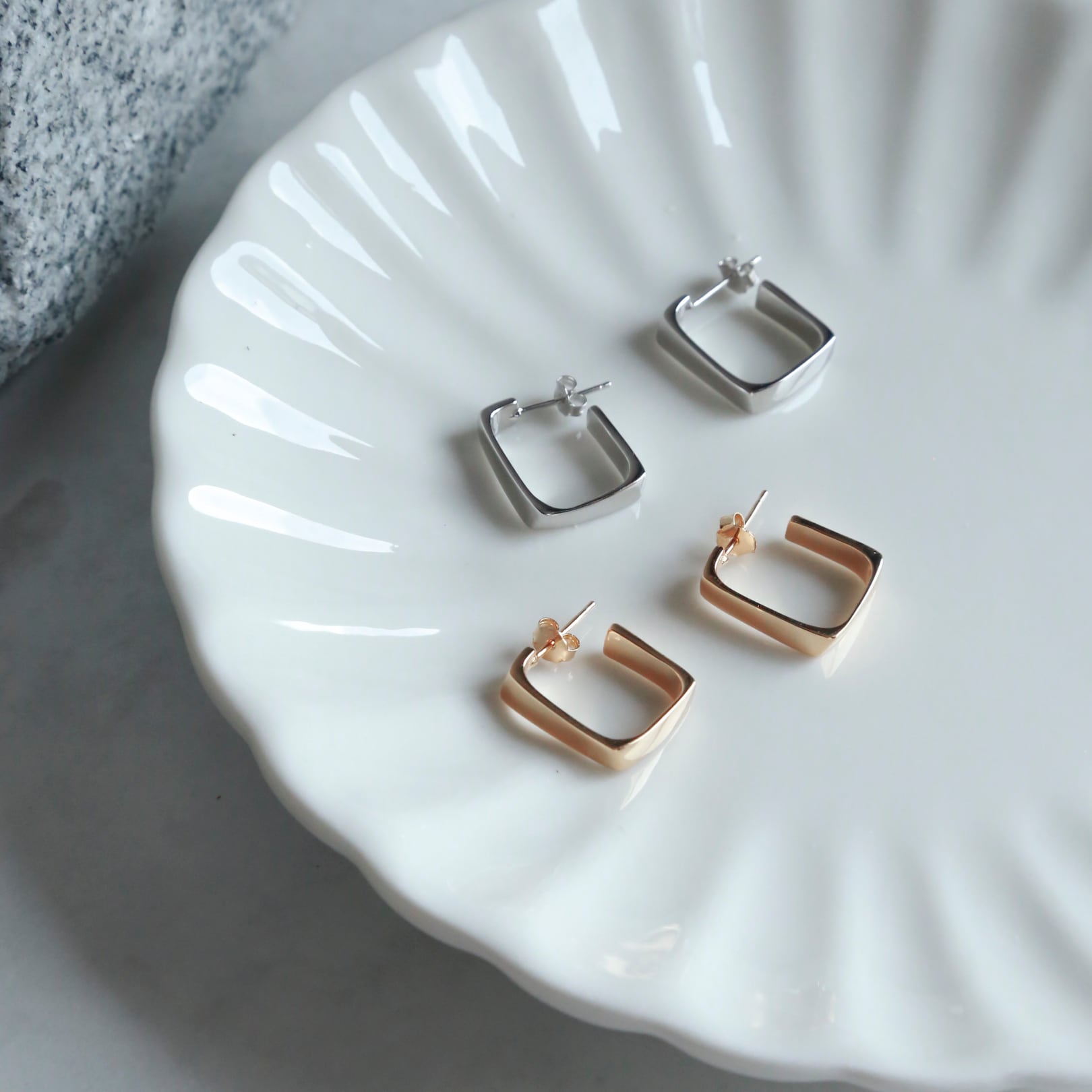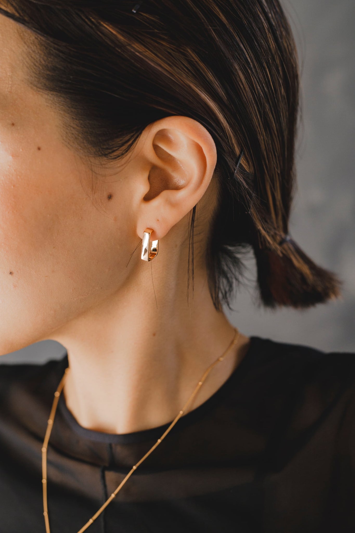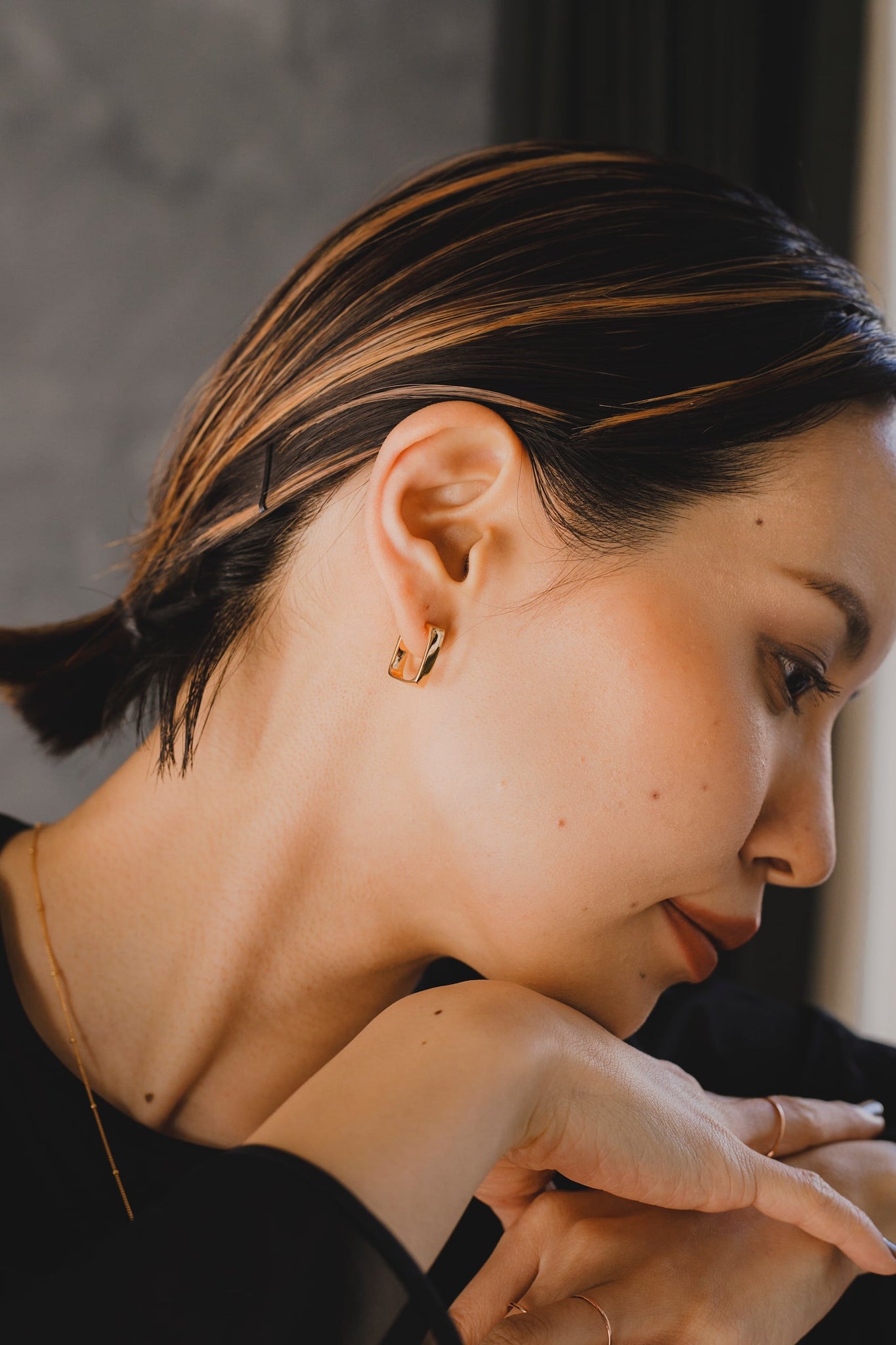 耳になじむシンプルなスクエア型がとてもお洒落で、お顔周りをすっきり明るく見せてくれるピアスになります!