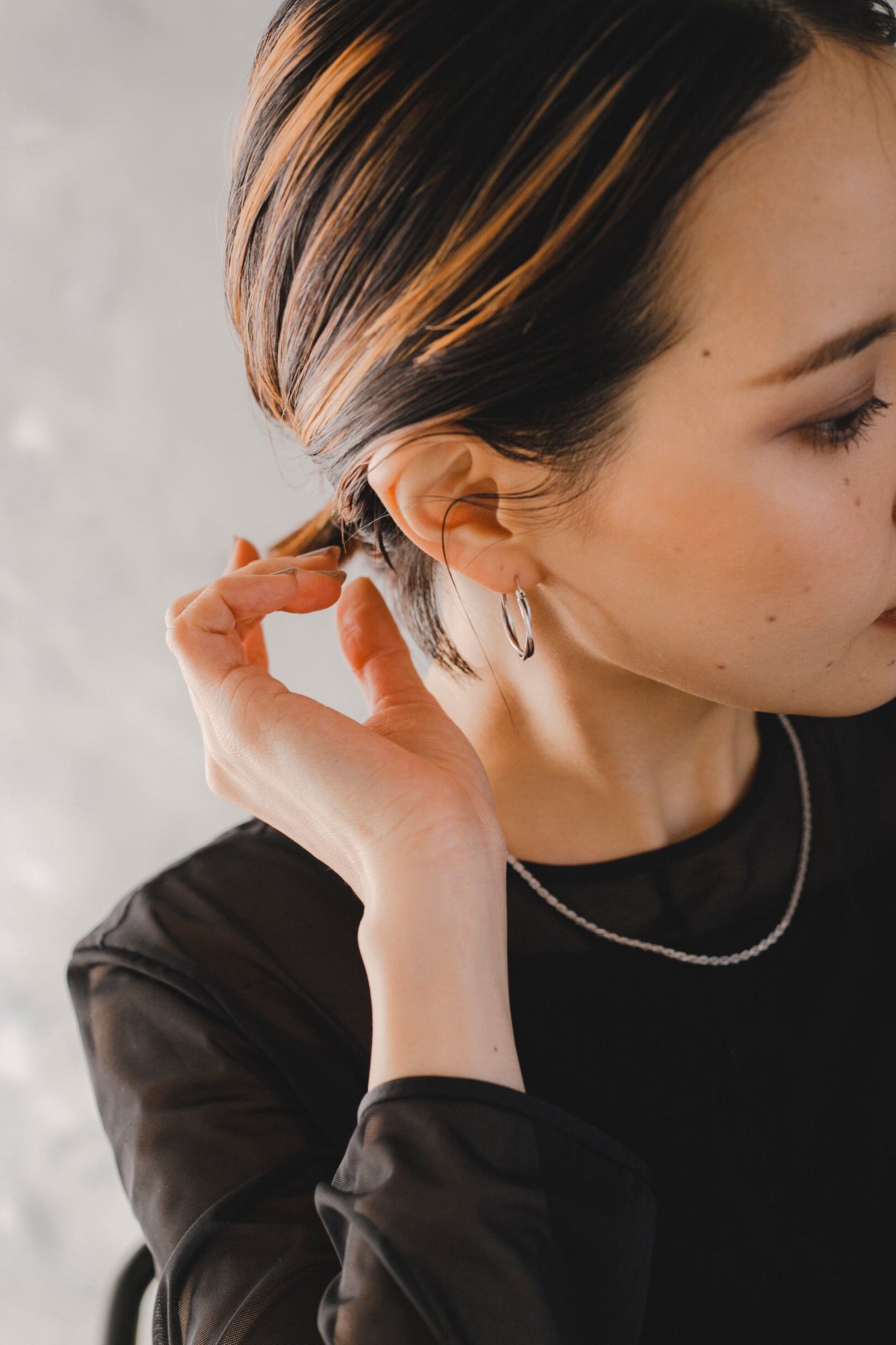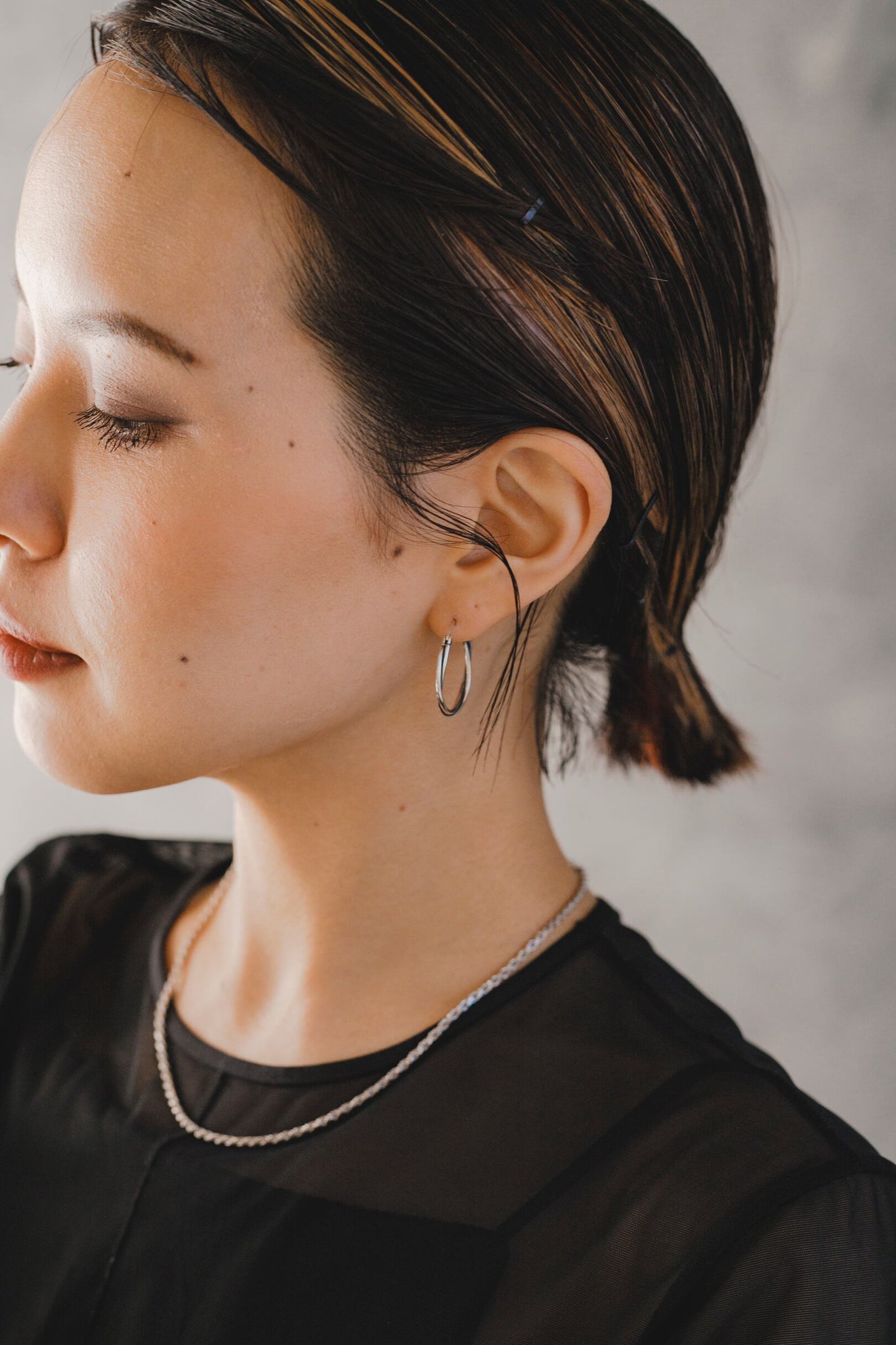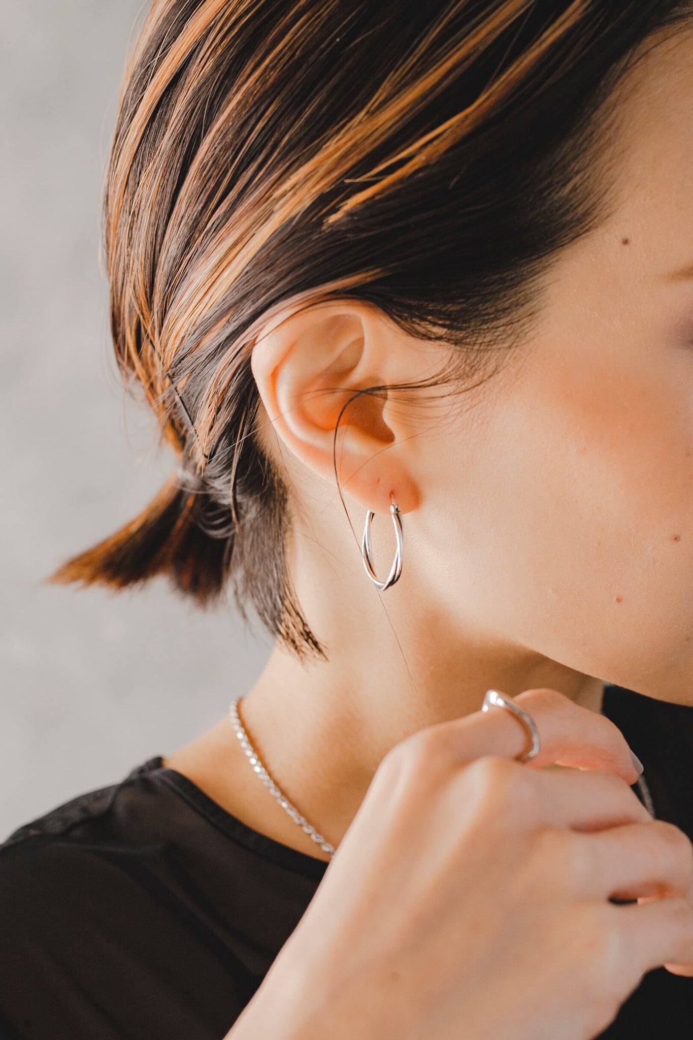 使いやすいサイズのフープで、シルバーとブラックのお色味が引き締まった雰囲気を演出してくれます◎