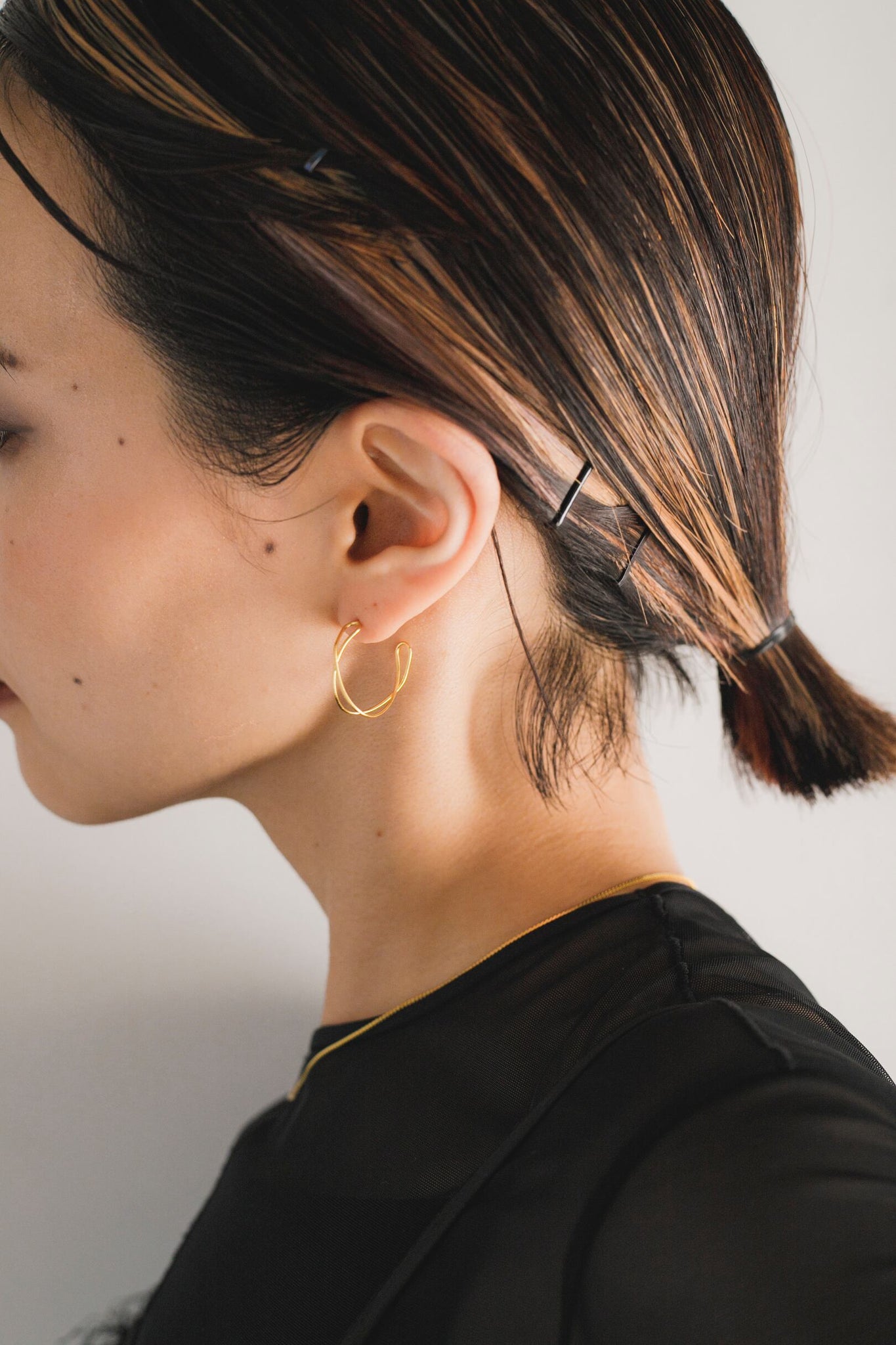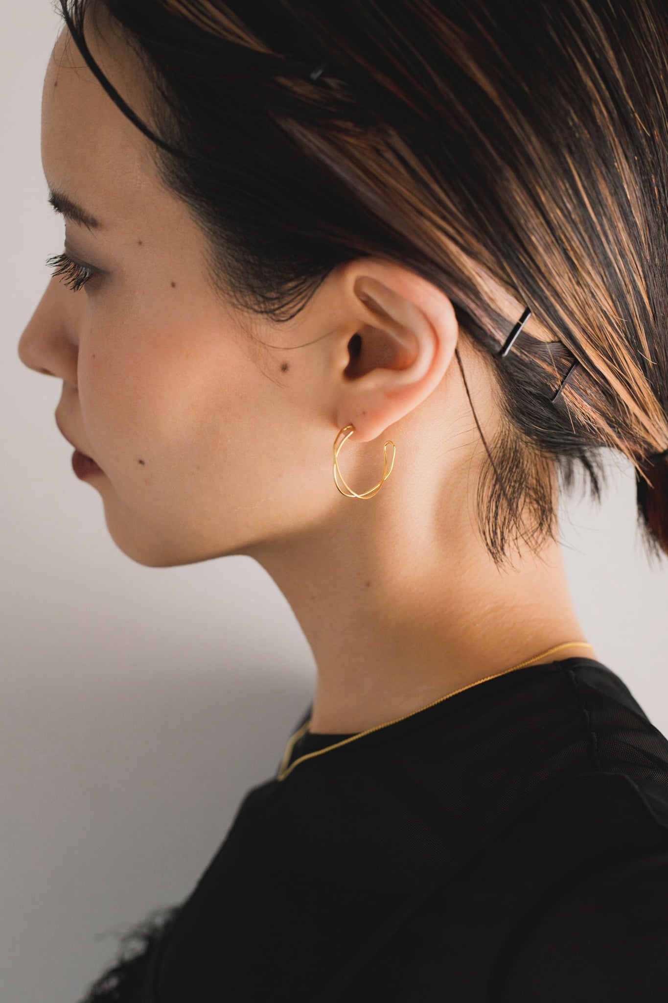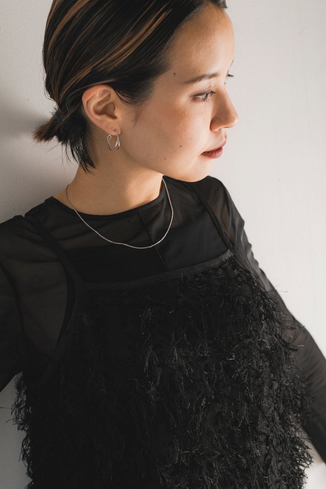 コーディネートになじむ絶妙な大きさが使いやすく、お顔周りをすっきり明るく見せてくれます◎