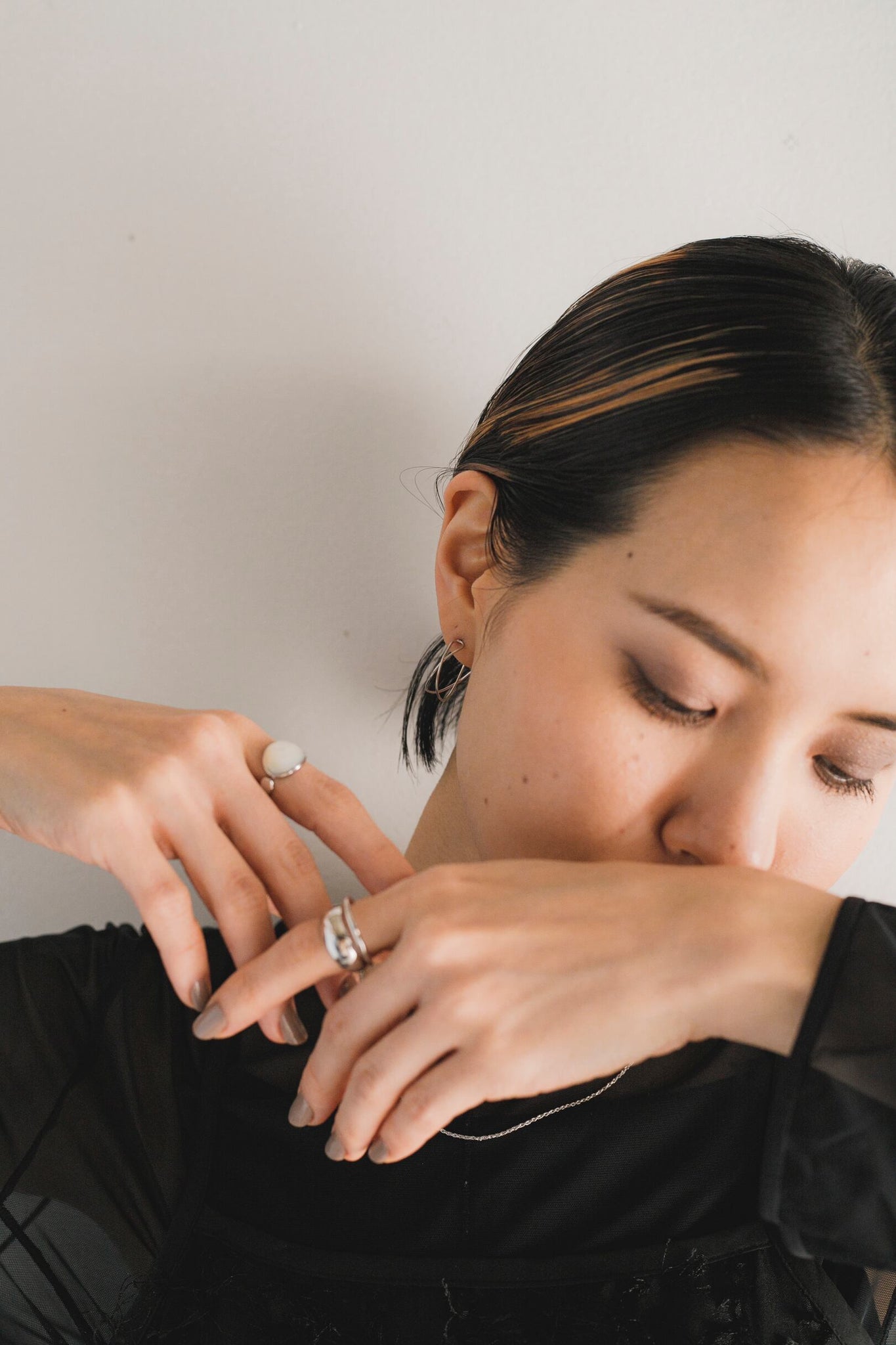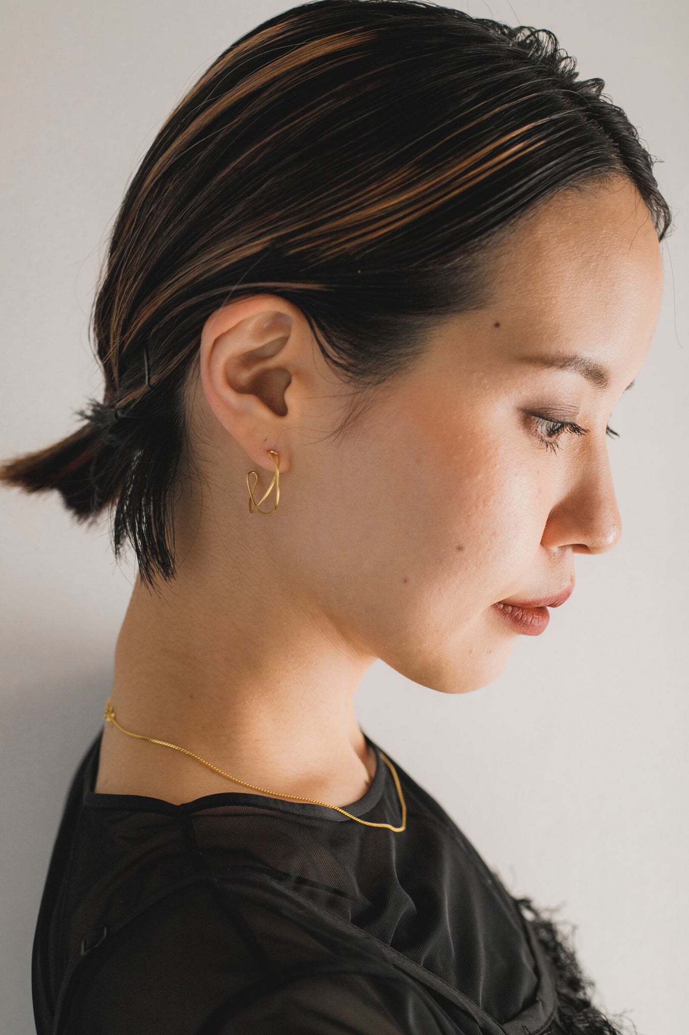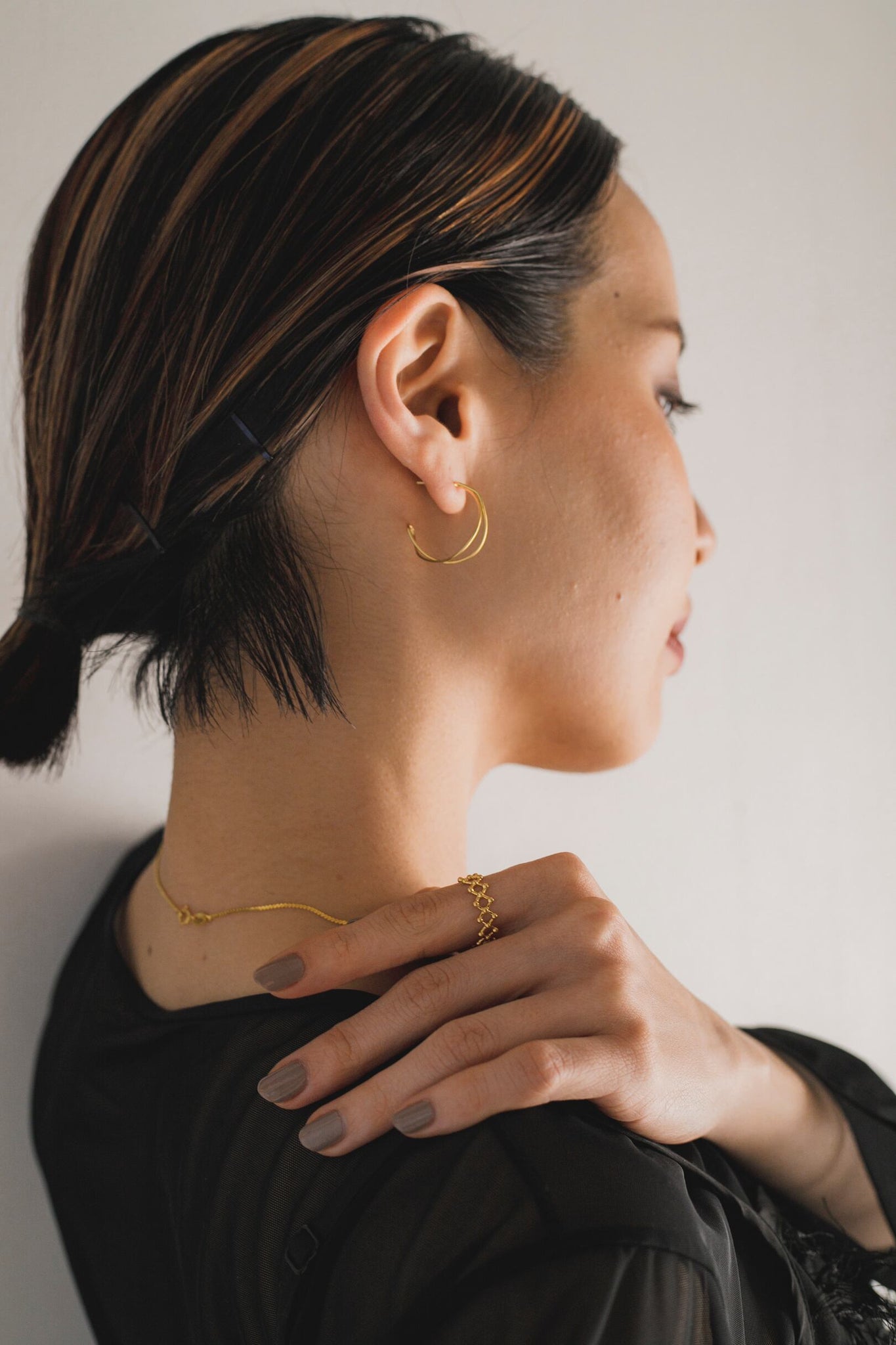 コーディネートになじむ絶妙な大きさが使いやすく、お顔周りをすっきり明るく見せてくれます◎