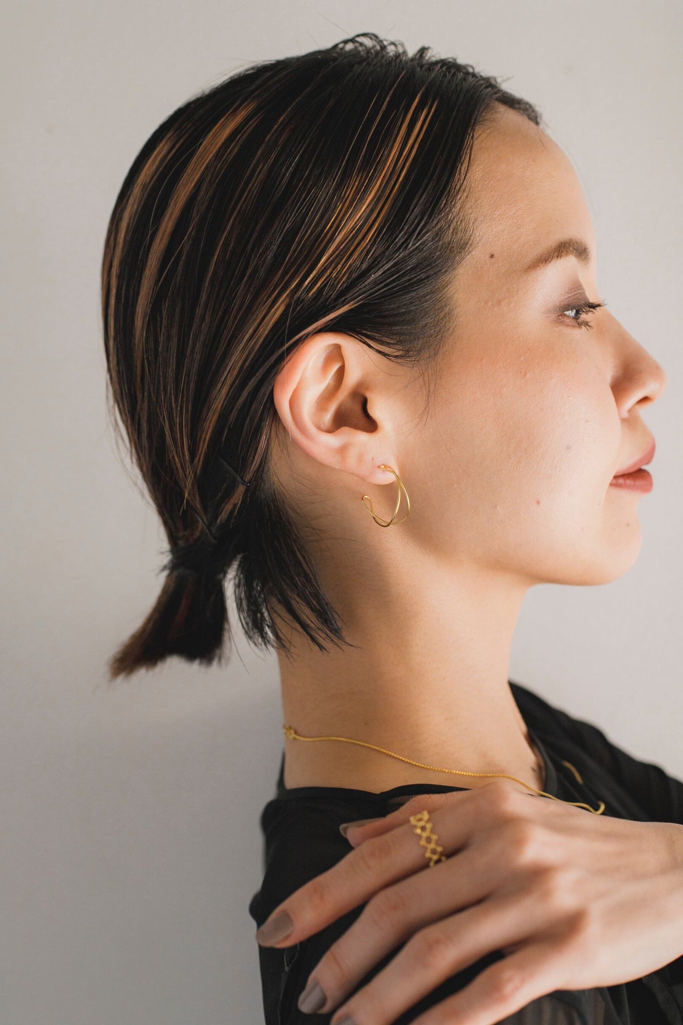 ワイヤー状で抜け感のあるフープがとても可愛いピアスです!