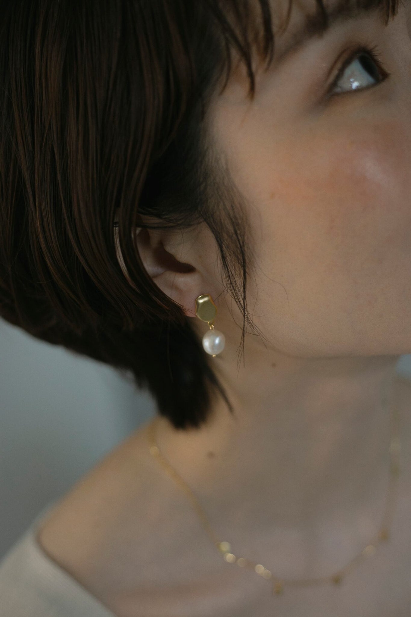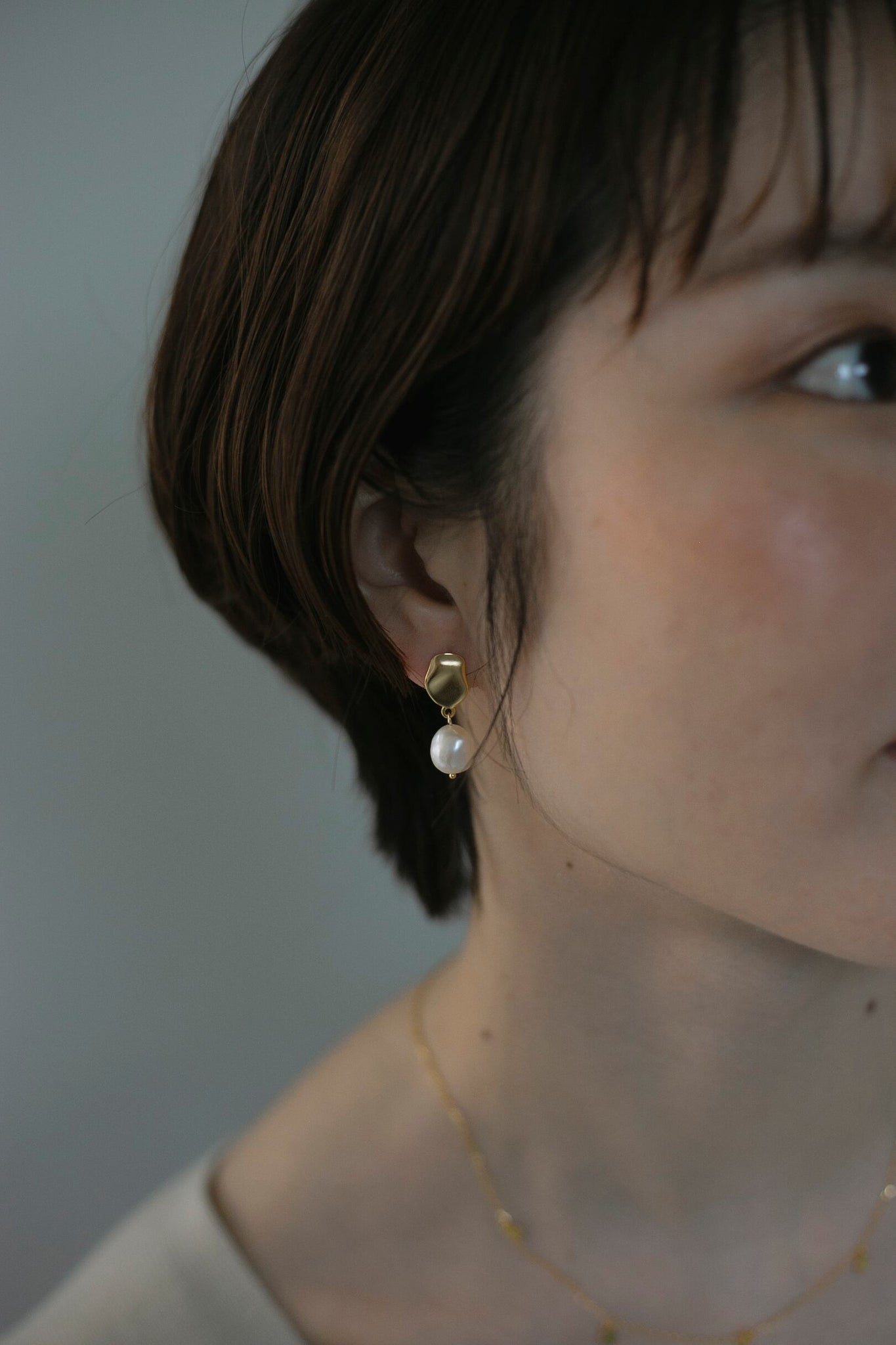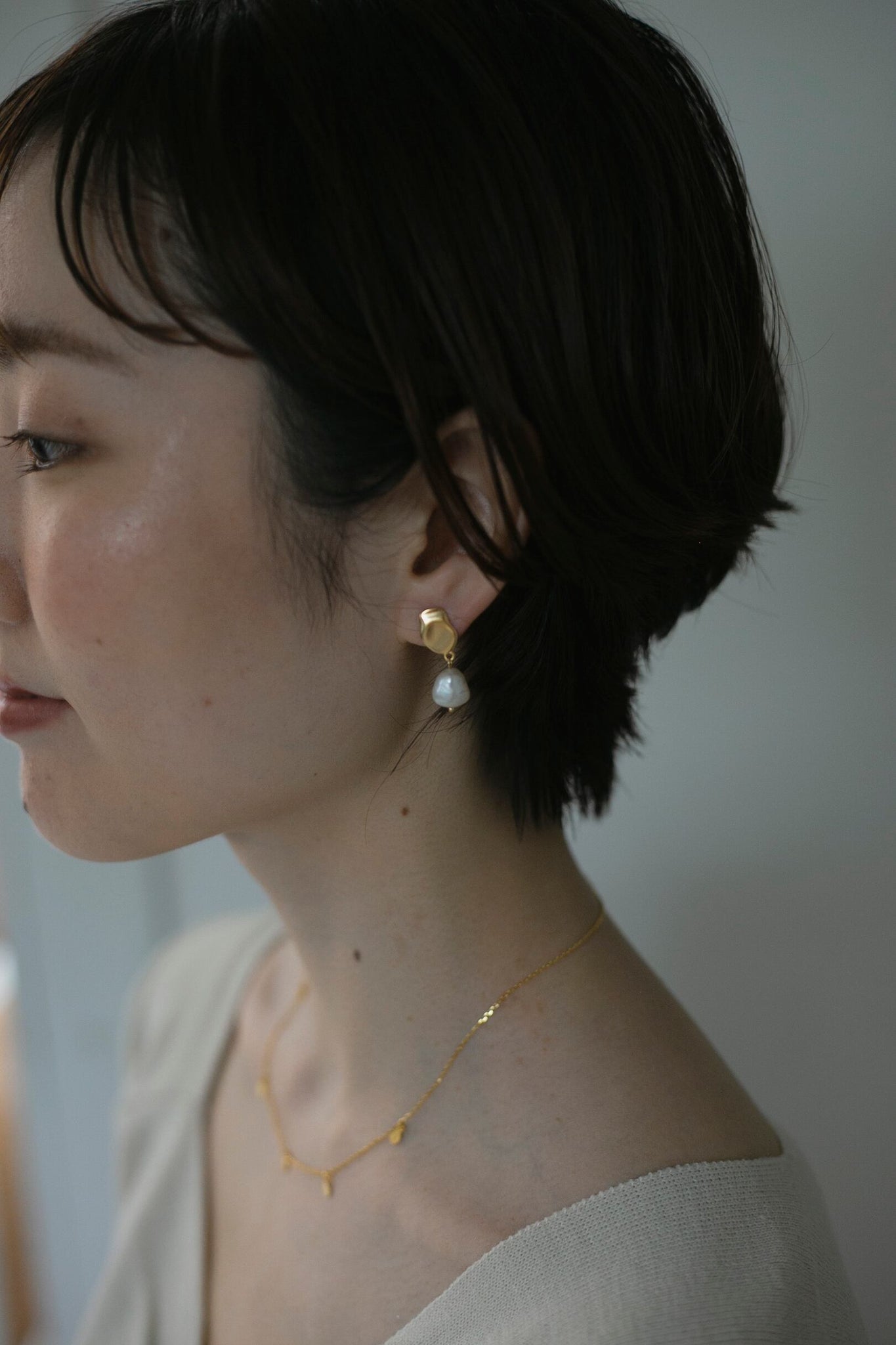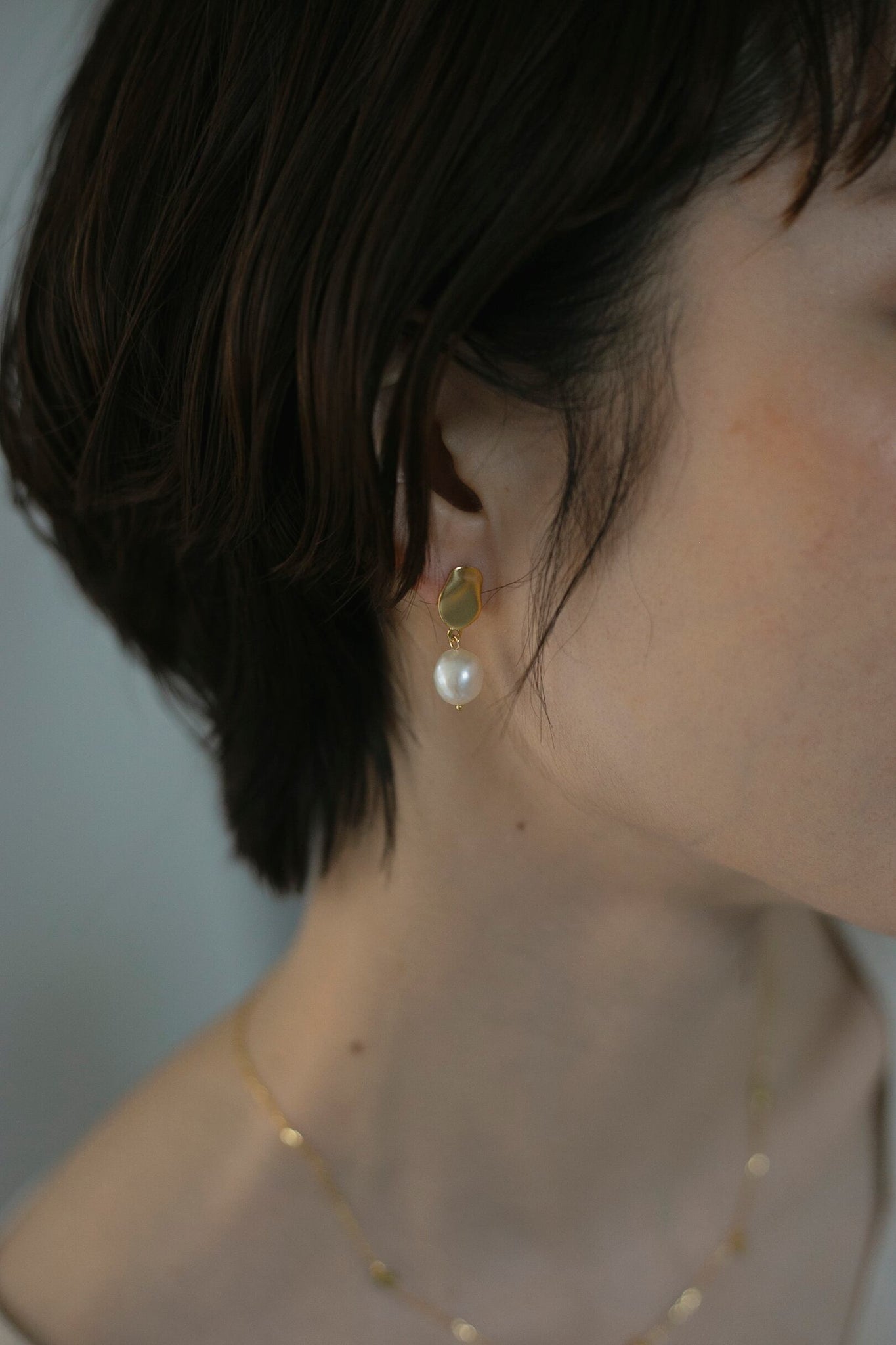 絶妙なサイズ感のぽってりとしたパールと金具のマットな質感の組み合わせがとても可愛く、顔周りを自然と華やかに見せてくれるピアスです!