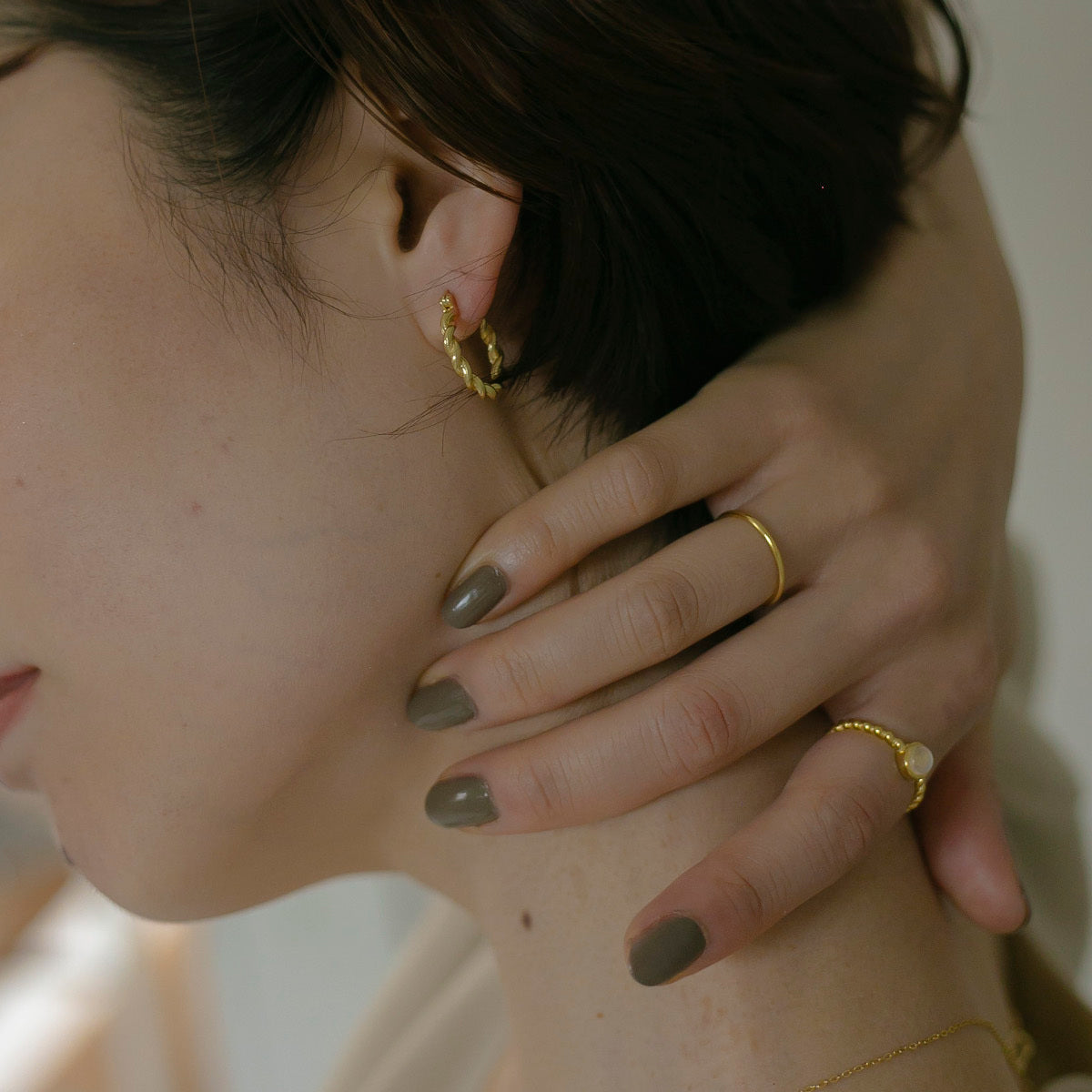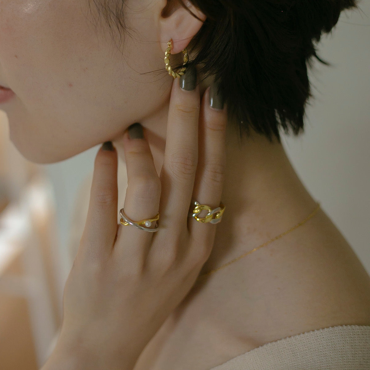 ピアスバックが不要で他のアクセサリーとも合わせやすく、絶妙なサイズ感のフープが顔周りになじんでくれ、デイリーユースに沢山活躍してくれると思います◎