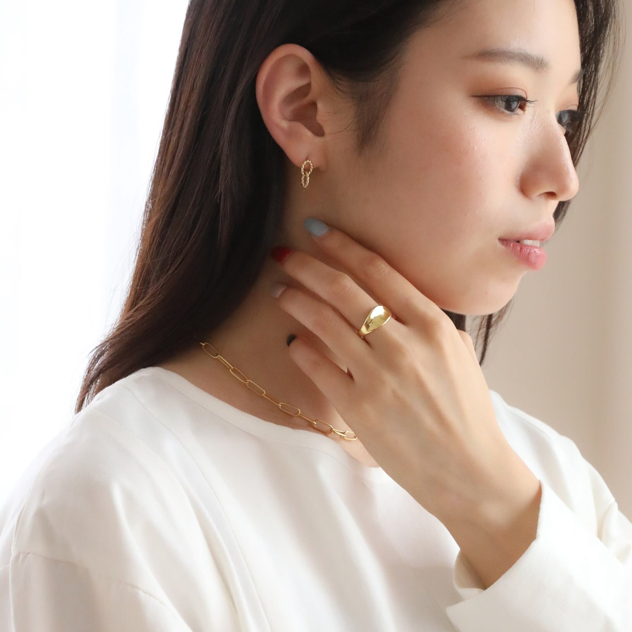 楕円形なので抜け感もあり、ゴールドのお色味も合わせやすく、シンプルなコーディネートのアクセントにも是非◎