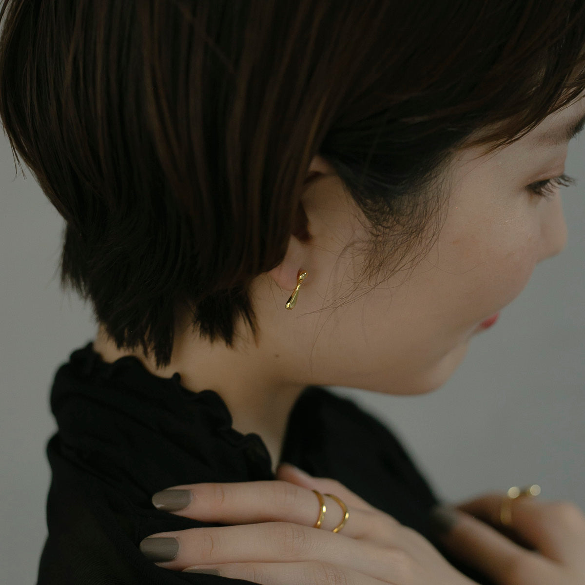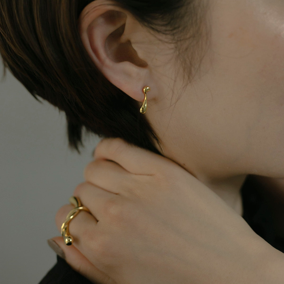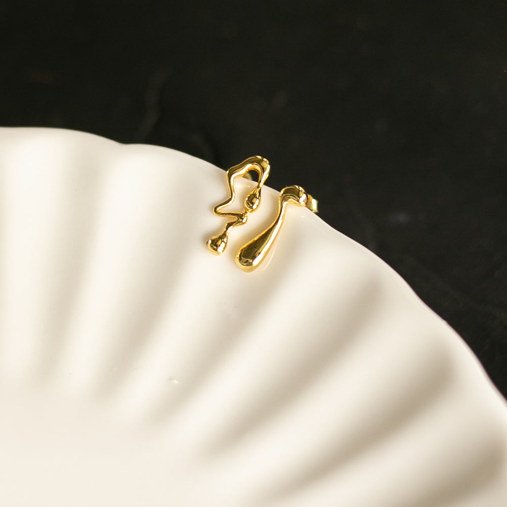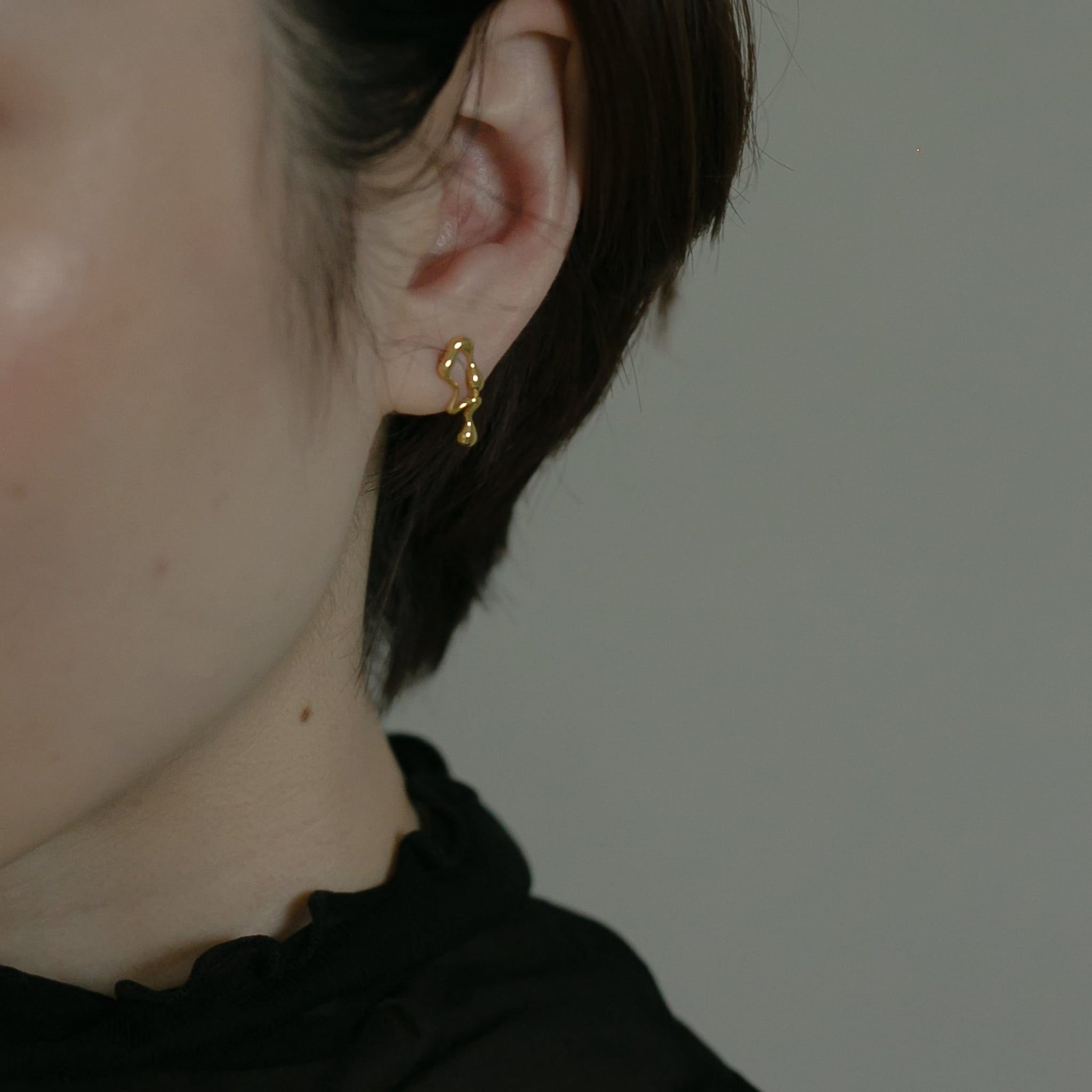 左右でデザインの異なるすっきりとしたドロップモチーフがとても可愛いピアスです!