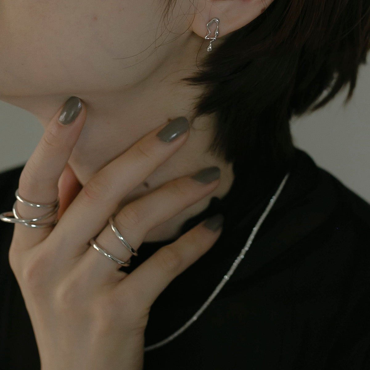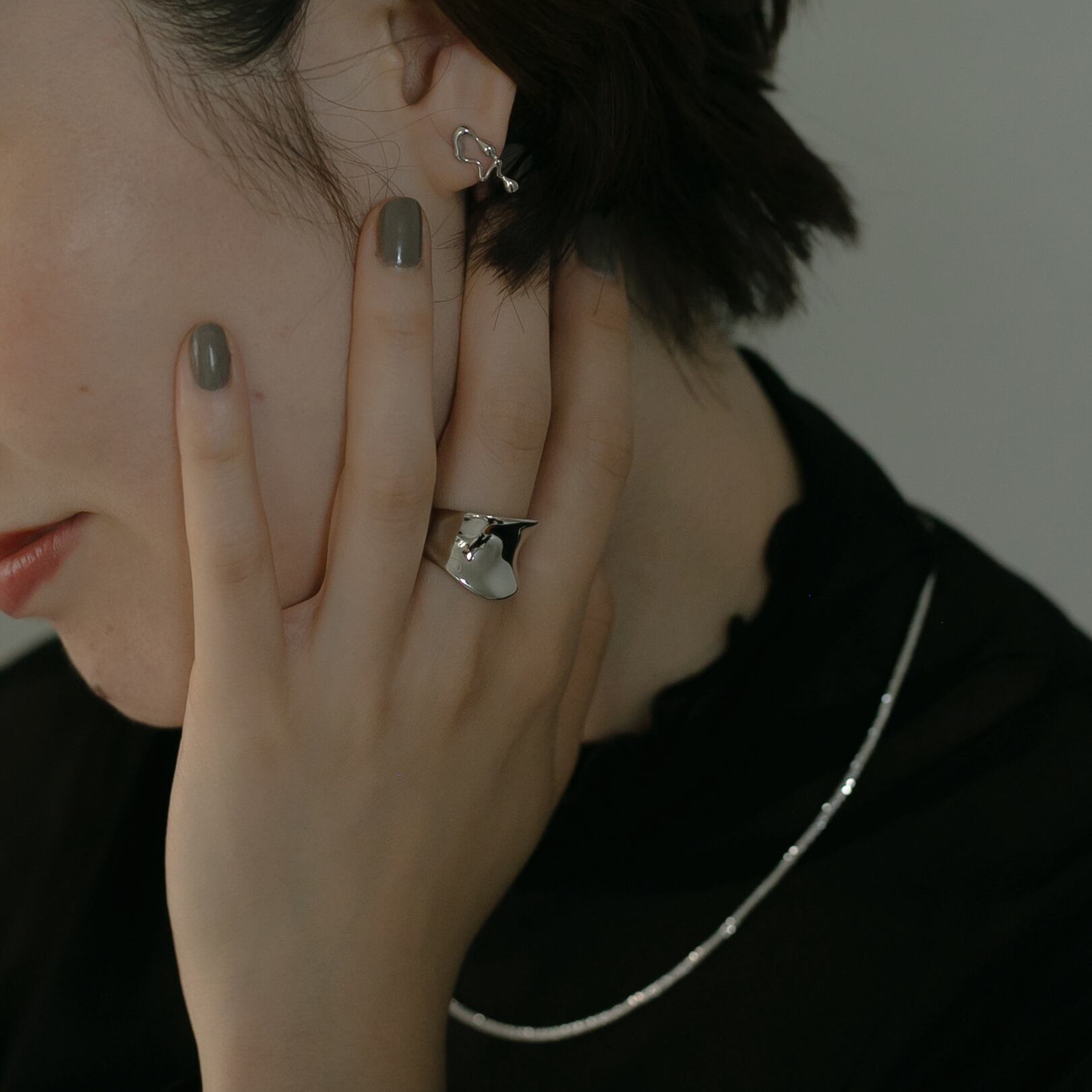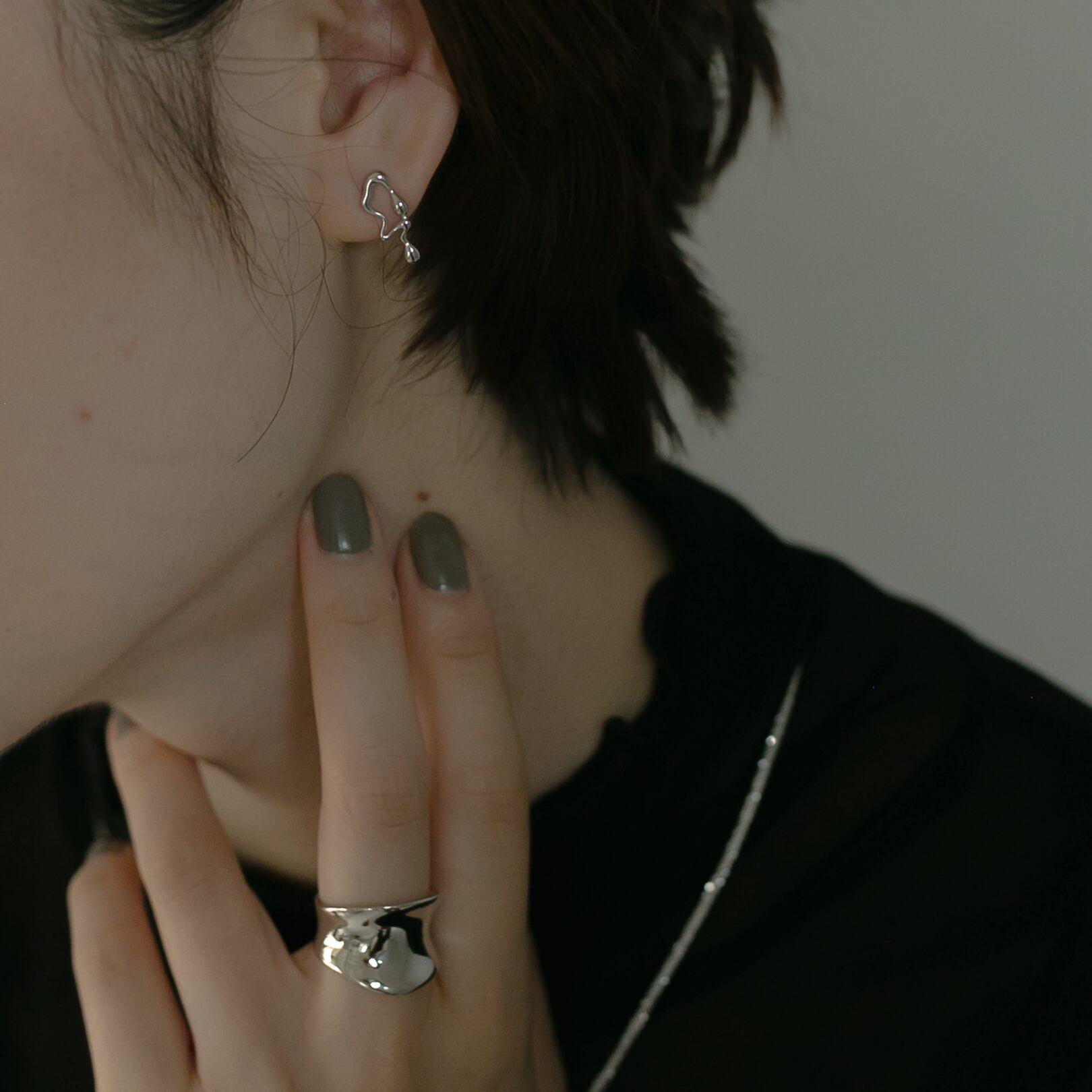 アシンメトリーリキッド シルバーピアス Silver925