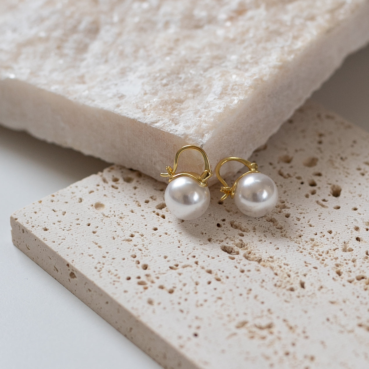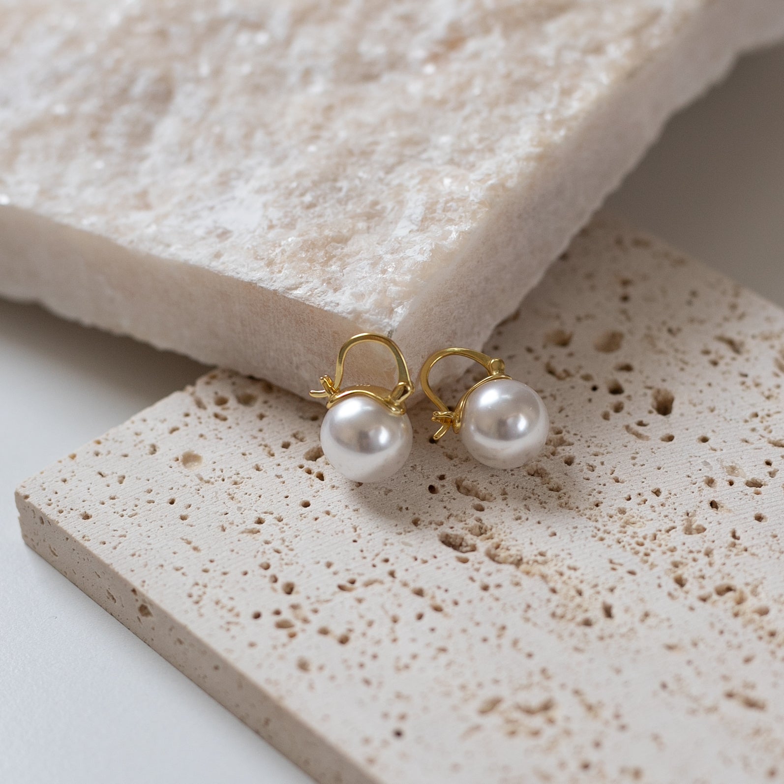 艶やかで大ぶりのパールに抜け感のある金具のデザインが目を惹くピアスです!