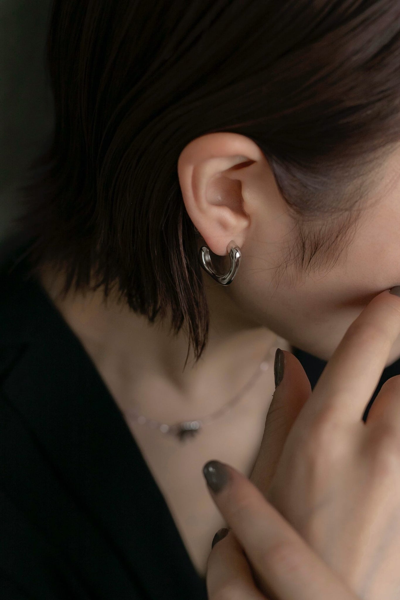 顔周りをすっきり明るく見せてくれ、同じような質感のアクセサリーと合わせたり、大人可愛いコーディネートのアクセントに是非◎
