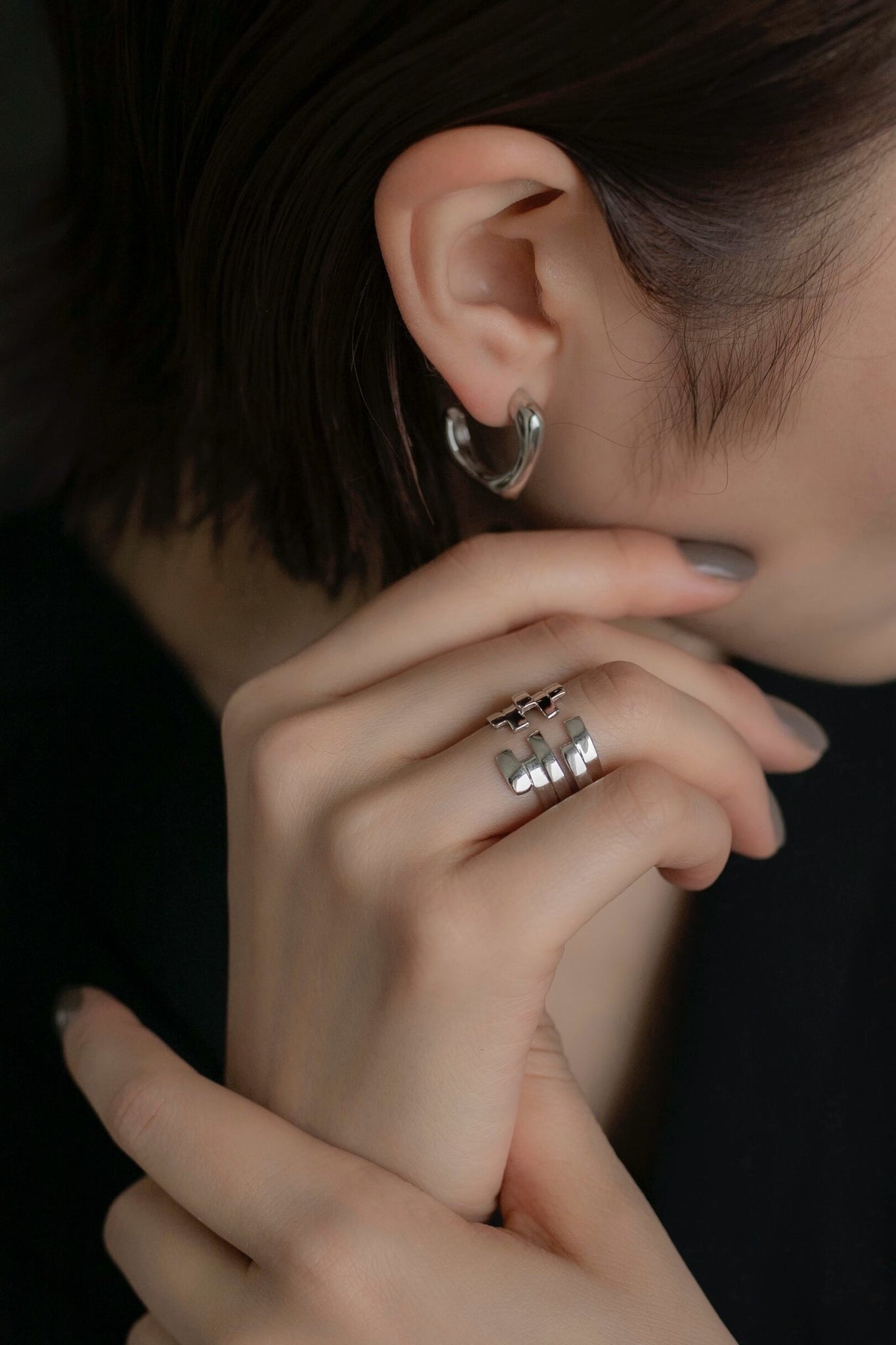 アシンメトリーリキッド シルバーピアス Silver925