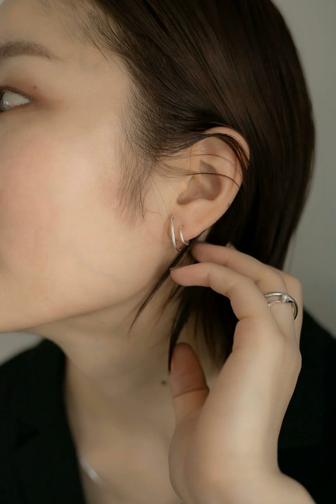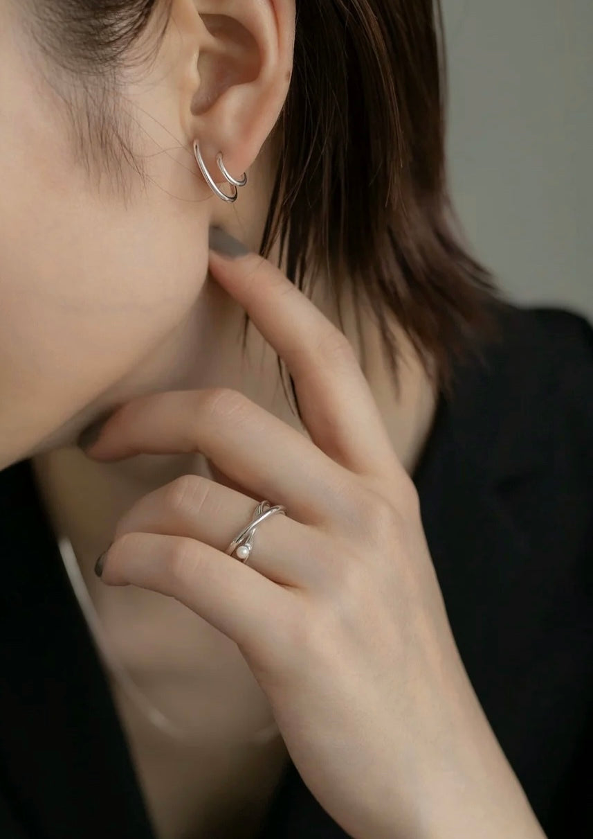 ツイストダブルサークル シルバーピアス Silver925
