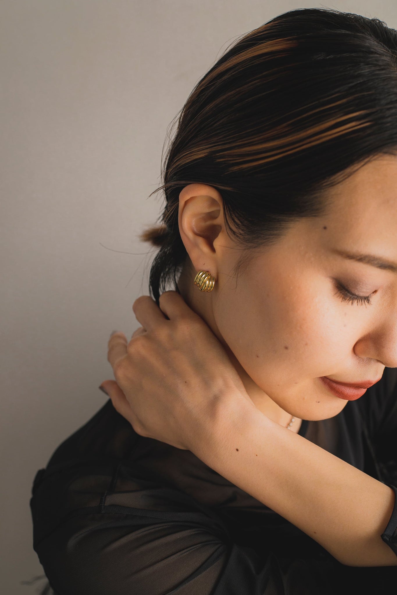 立体的でしっかりとした作りのレイヤーデザインがとてもお洒落なピアスです!