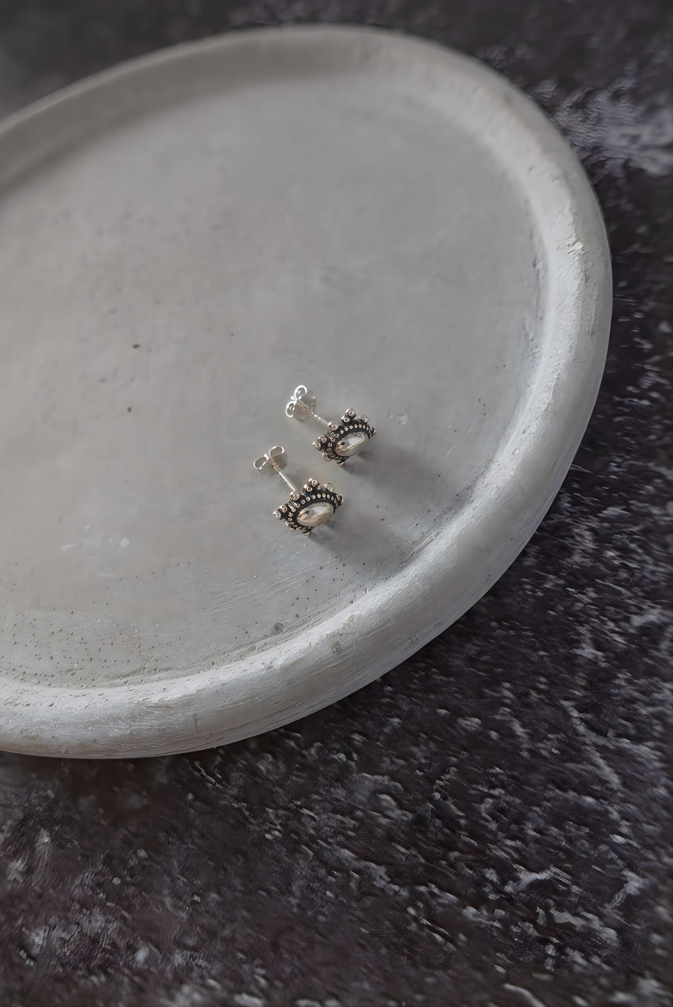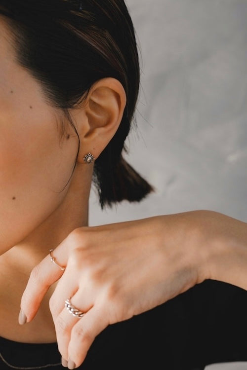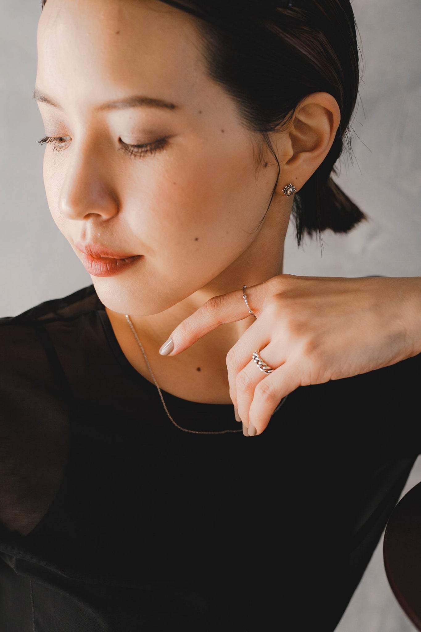 ヴィンテージ感のあるシルバーと顔周りになじむ絶妙なサイズがとてもお洒落で、単体ではもちろん、同じお色味のアクセサリーと合わせていただくのもおすすめです◎
