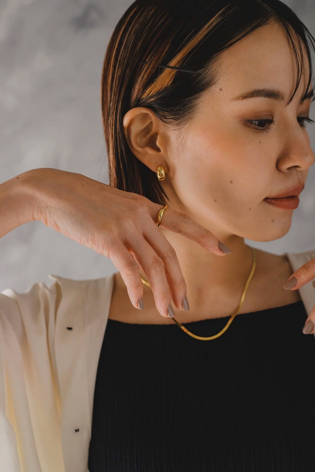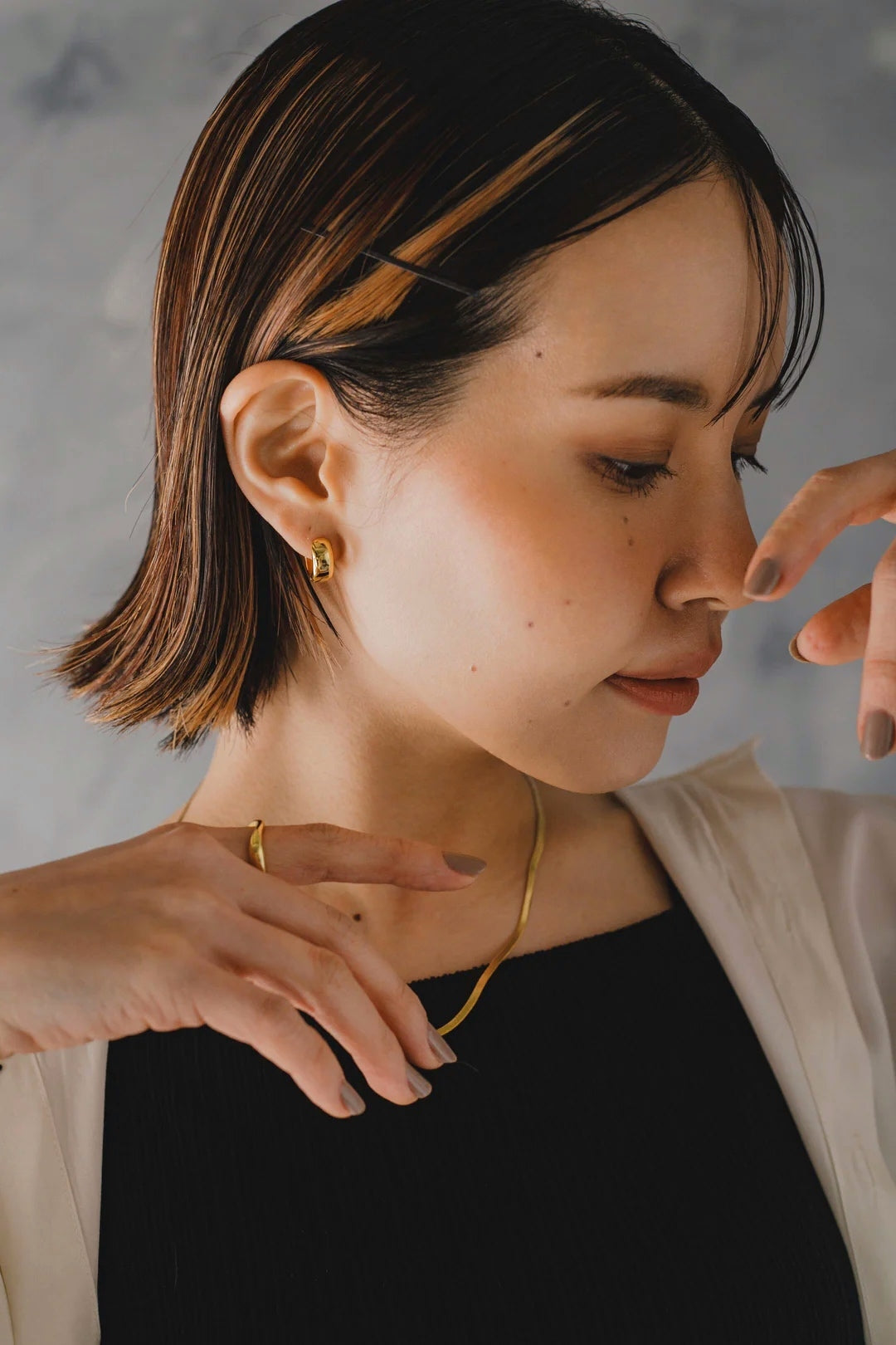 ピアスバック不要でコンパクトなデザインが使いやすく、お顔周りを明るく見せてくれます◎